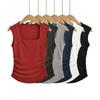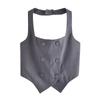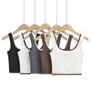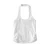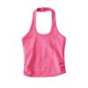 Nueva camiseta de verano de estilo europeo y americano con cuello halter, corta y ajustada, de color liso, para mujer C74366