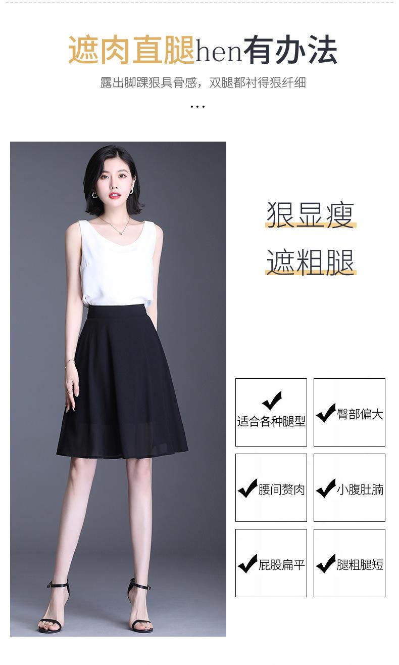 Falda elegante de chifón acampanada para mujer 2025 Verano Nuevo Estilo Coreano Cintura Alta Casual Falda Corta con Vuelo Amplio