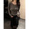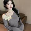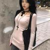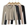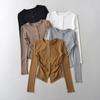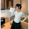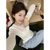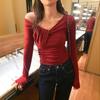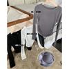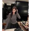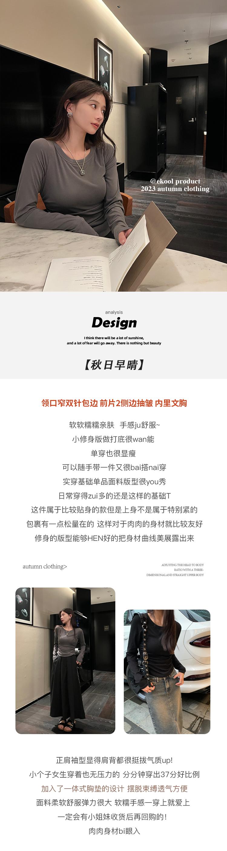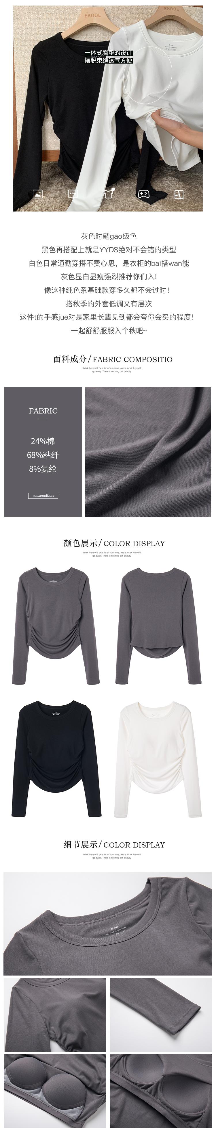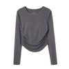 Playera de Manga Larga Plisada Baishuwang con Almohadilla en el Pecho para Mujer en Otoño, Top Corto Entallado, Versátil Estilo K