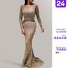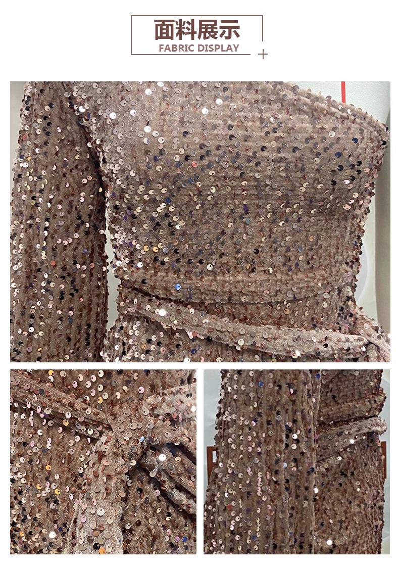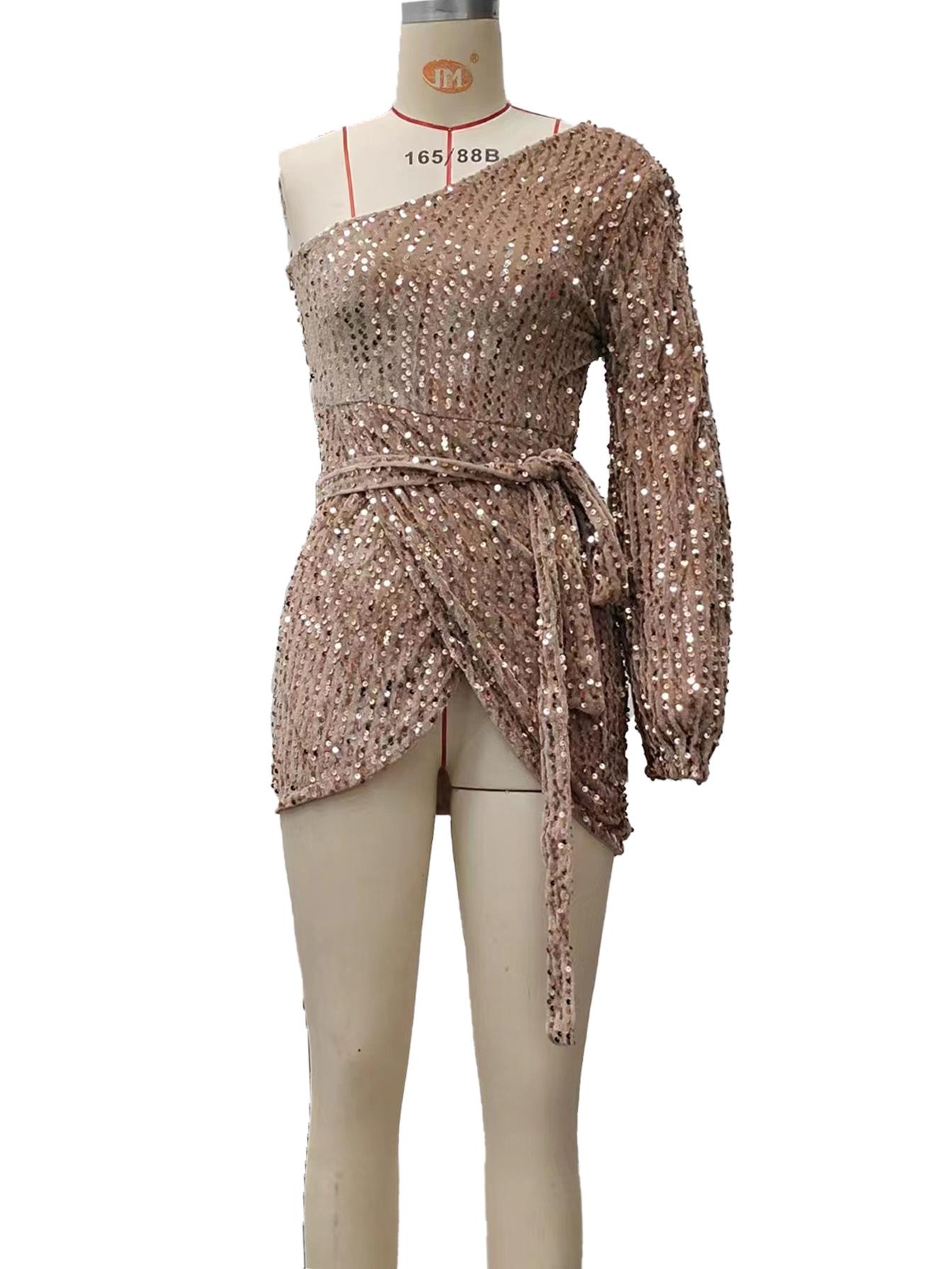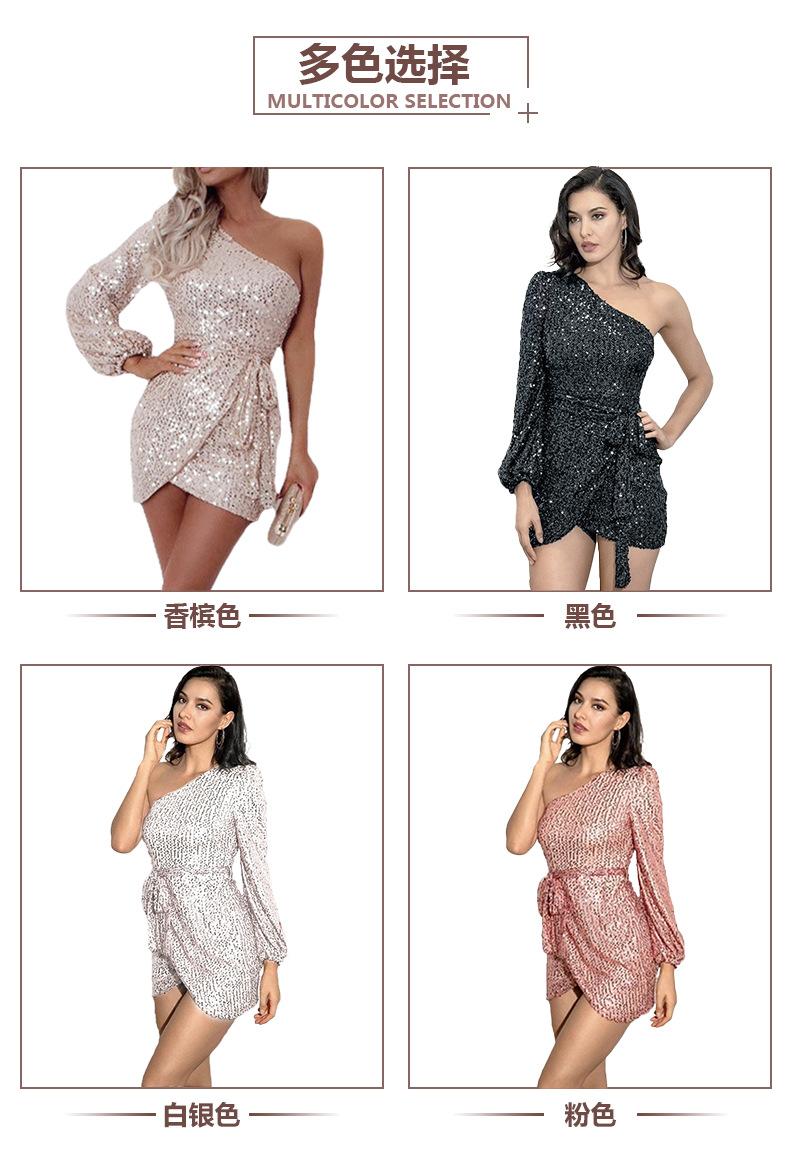 2025 Nuevo Vestido Europeo y Americano Transfronterizo de Amazon con Lentejuelas de Manga Larga con Un Hombro Descubierto y Falda Asimétrica con Lentejuelas