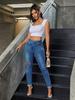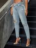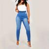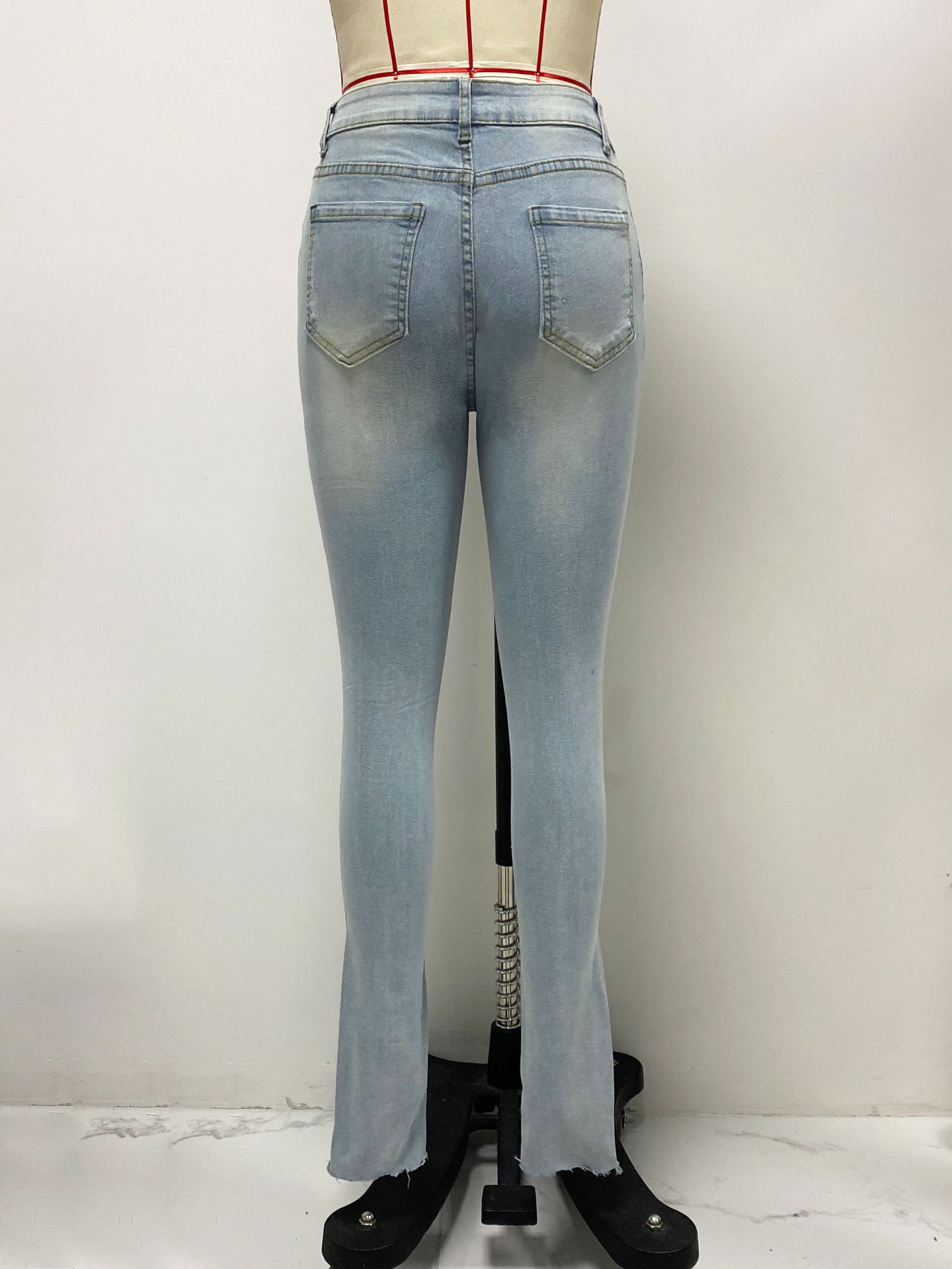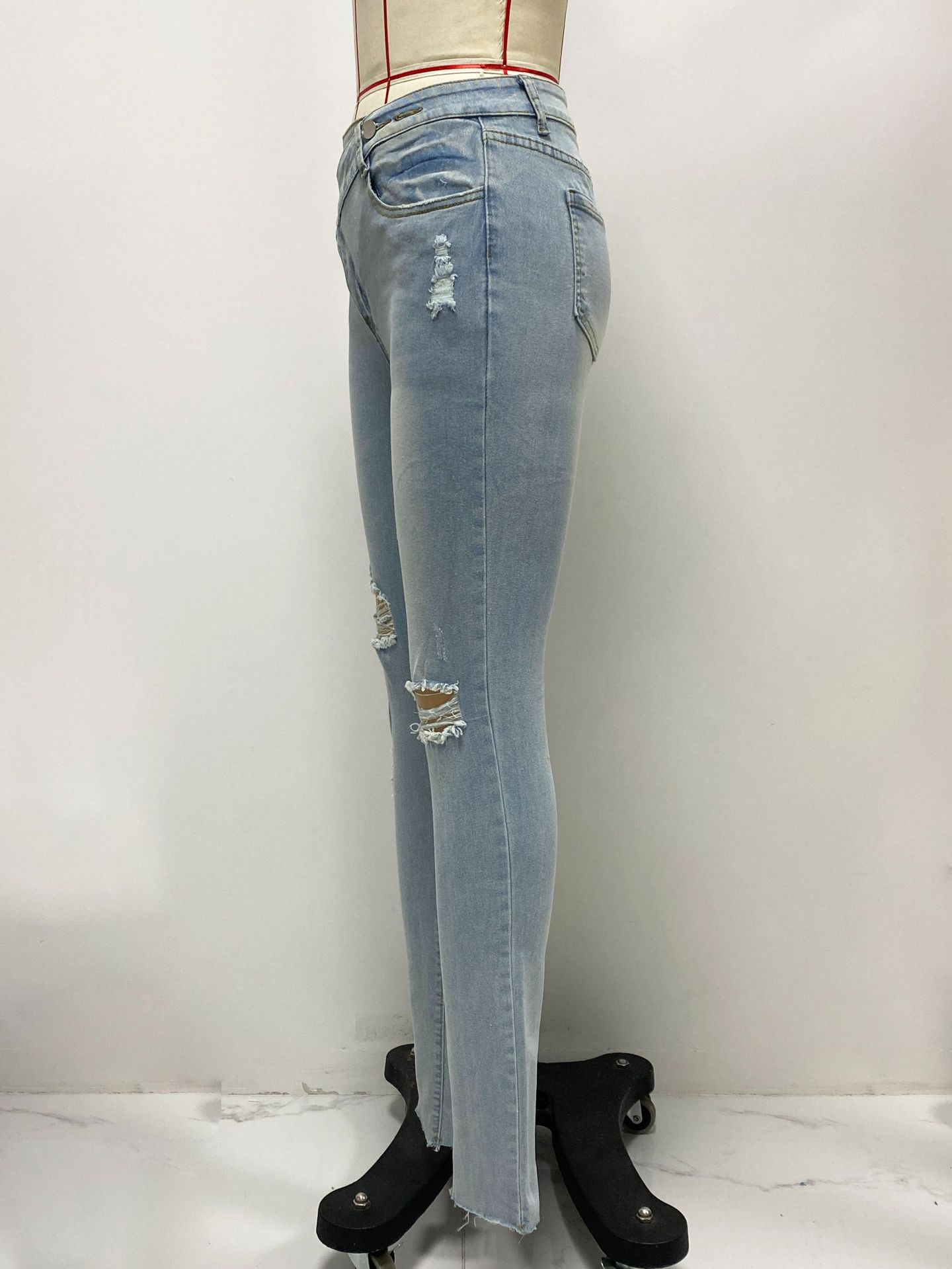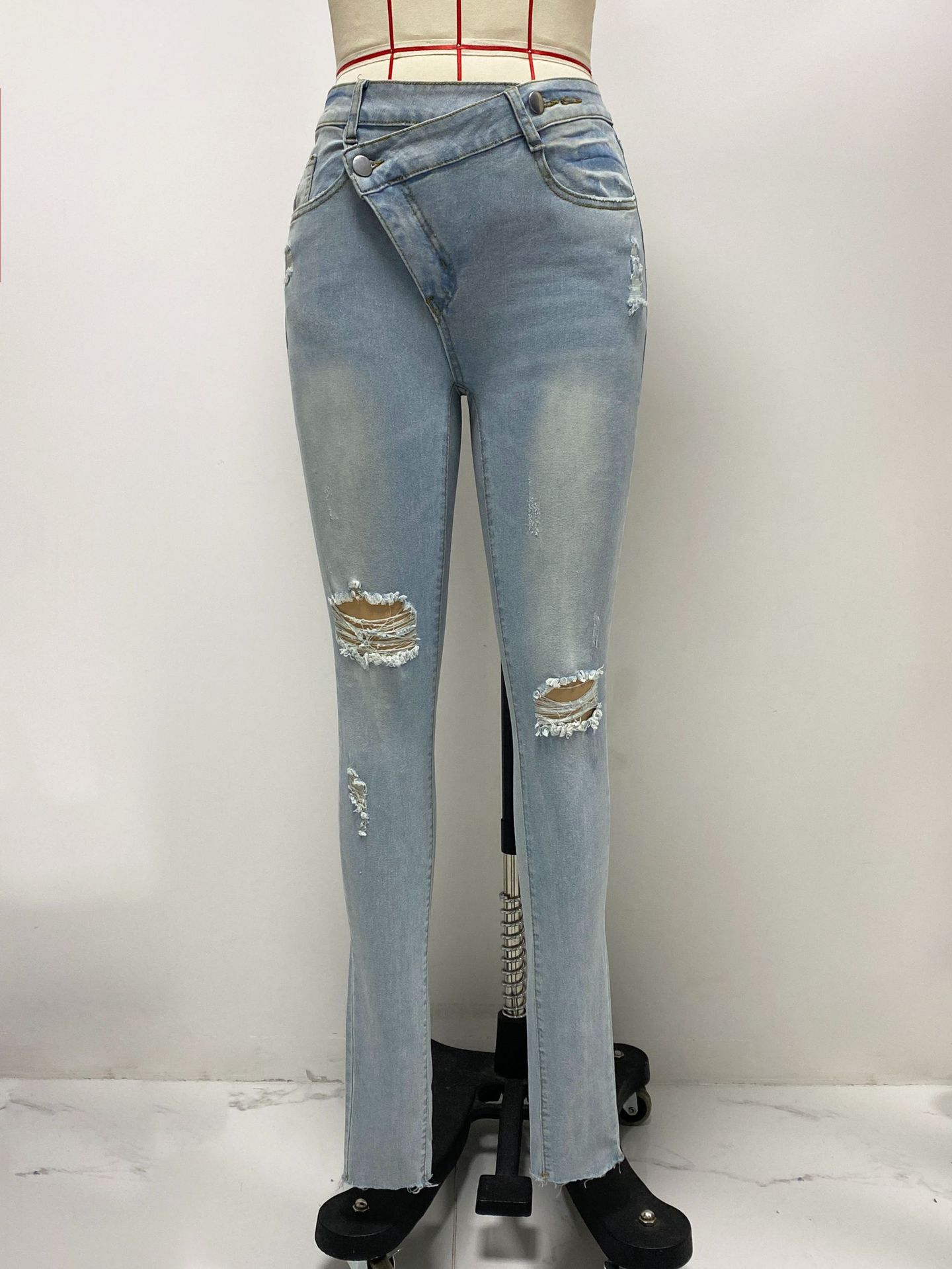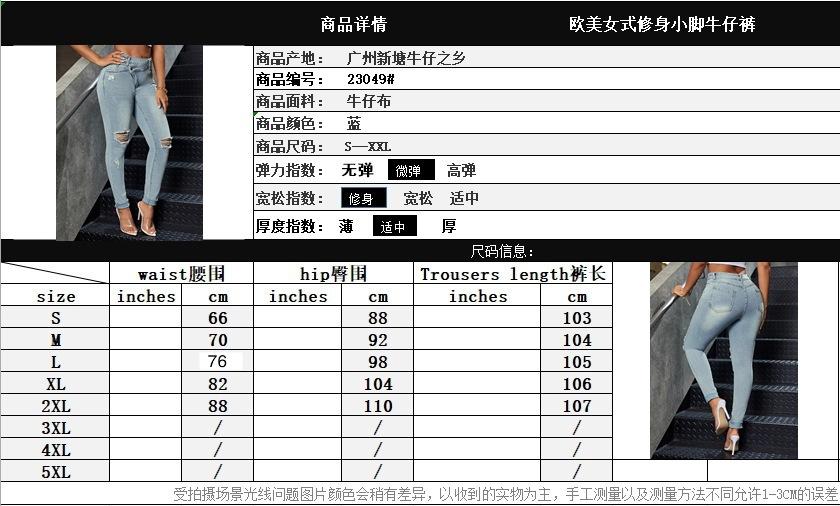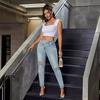Jeans de Cintura Alta de Color Claro para Mujer Europeo y Americano Transfronterizo Amazon 2025 Nuevo Look Adelgazante Elástico Pantalones Rotos de Pierna Pequeña