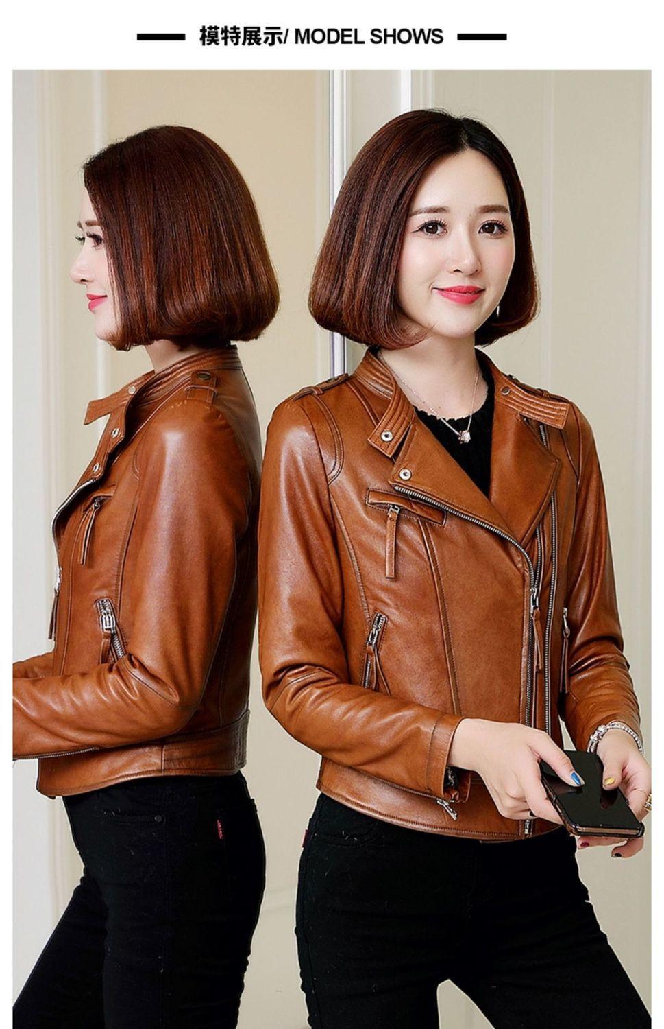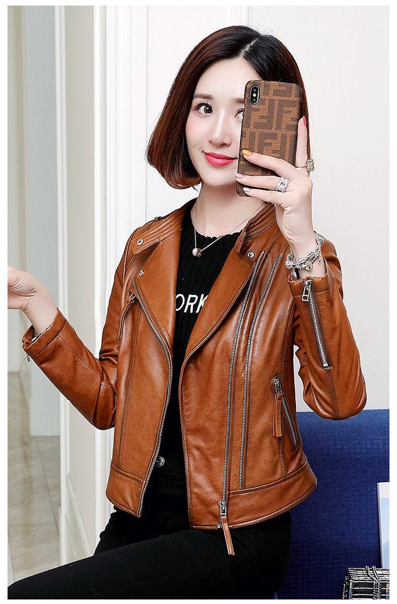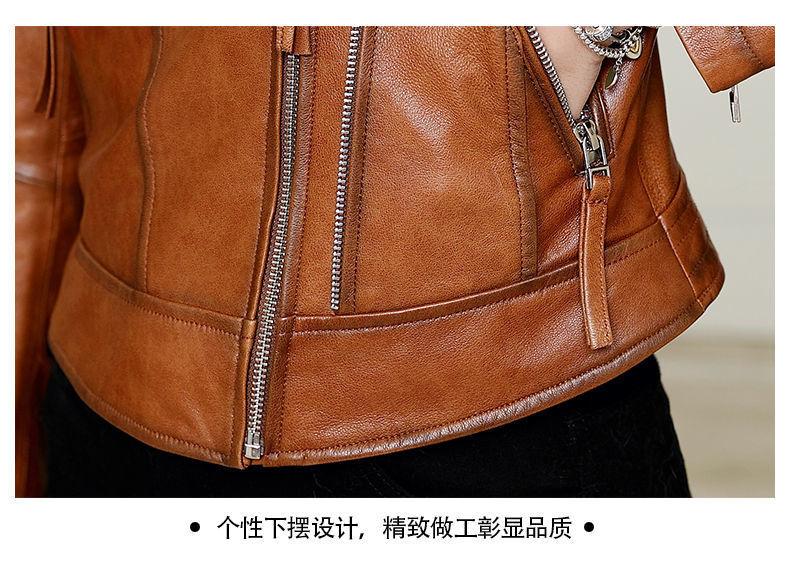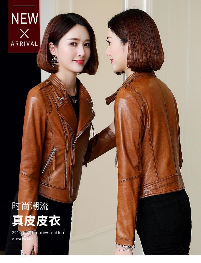 Chaqueta de Piel Genuina Nueva de Primavera y Otoño 2025 Haining para Mujer, Chaqueta Corta de Piel de Oveja, Estilo Coreano, Corte Ajustado, Chaqueta de Motociclista