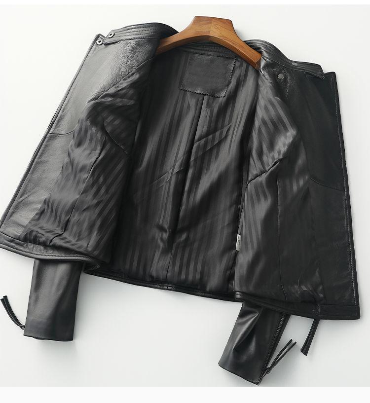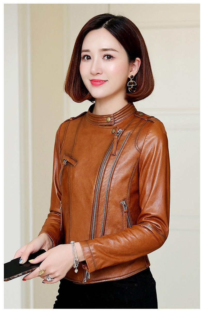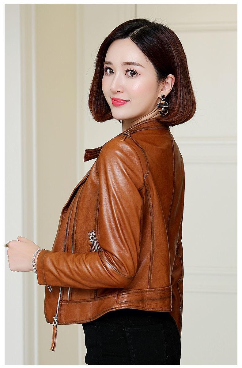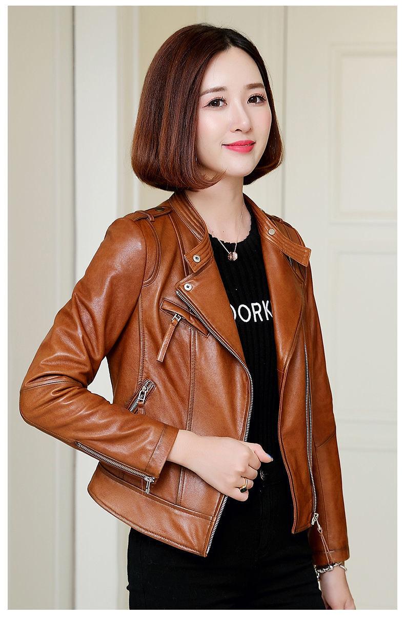 Chaqueta de Piel Genuina Nueva de Primavera y Otoño 2025 Haining para Mujer, Chaqueta Corta de Piel de Oveja, Estilo Coreano, Corte Ajustado, Chaqueta de Motociclista