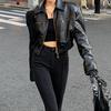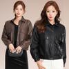 2036 Cuero Genuino Cuero Vacuno Ante Esmerilado Cuero de Primera Capa Cortavientos Clásico Largo Medio Ajustado Otoño e Invierno