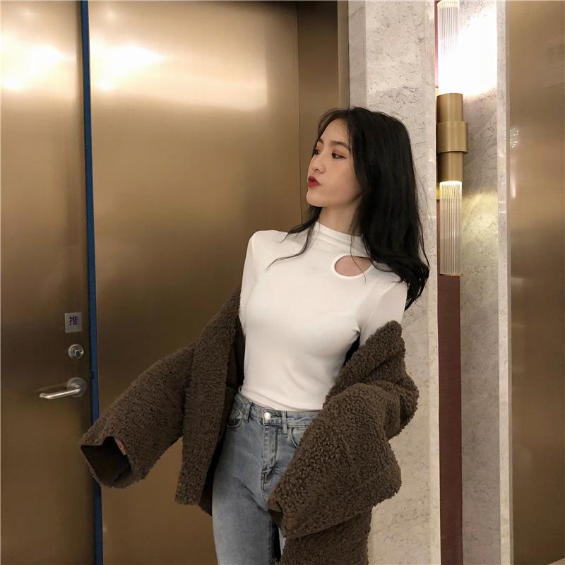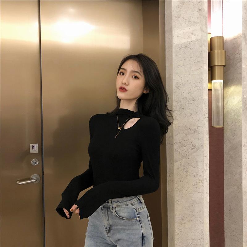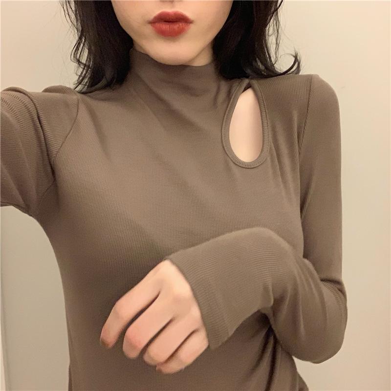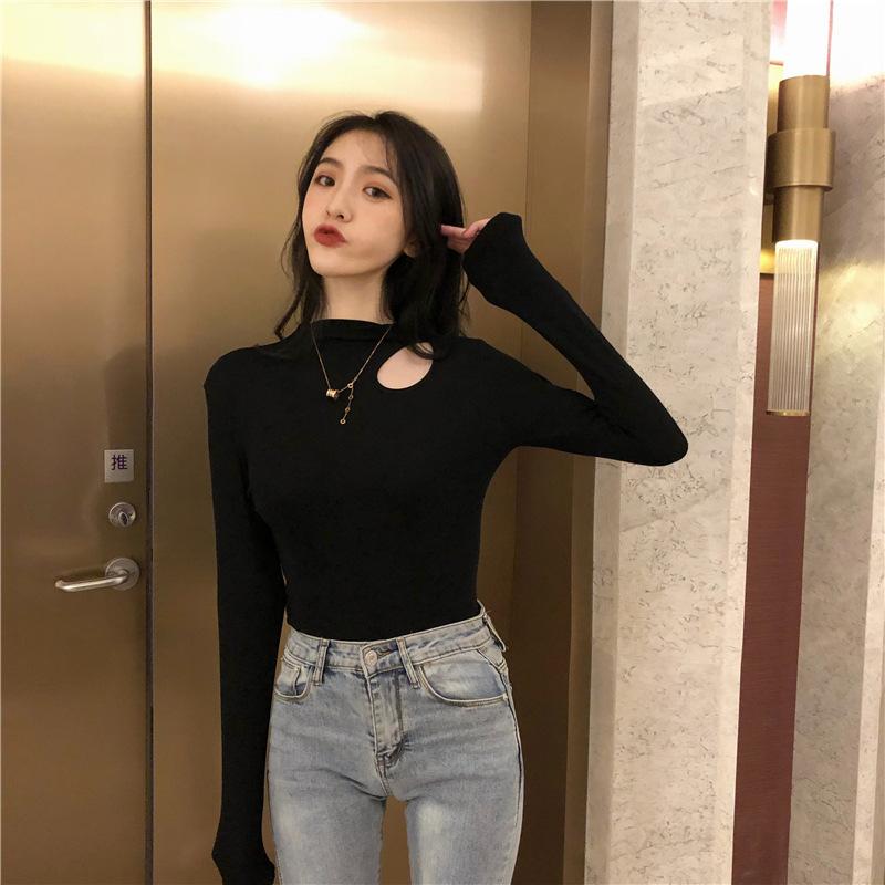 Camiseta de manga larga con diseño de nicho para mujer, nueva camiseta de otoño estilo coreano, camiseta ajustada para chica sexy, ropa interior estilo occidental, top de estudiante