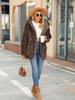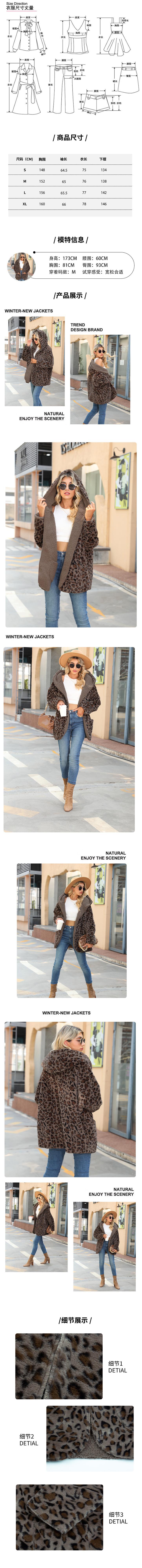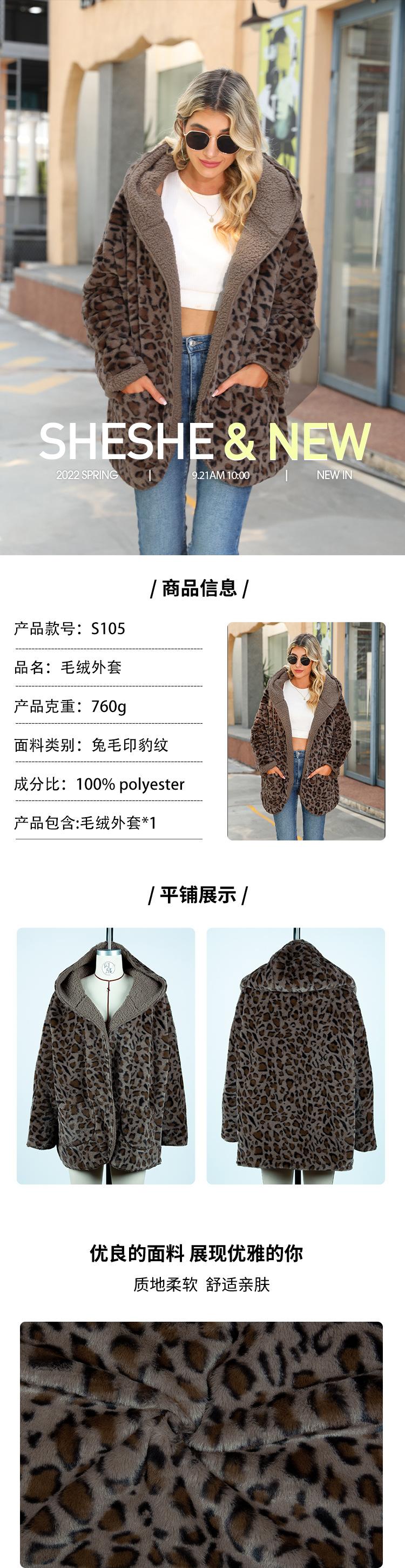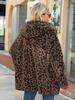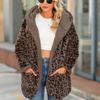 Terciopelo brillante europeo y americano otoño e invierno elegante para mujer con capucha manga larga suelto con bolsillo cárdigan largo abrigo felpa estampado leopardo mujer