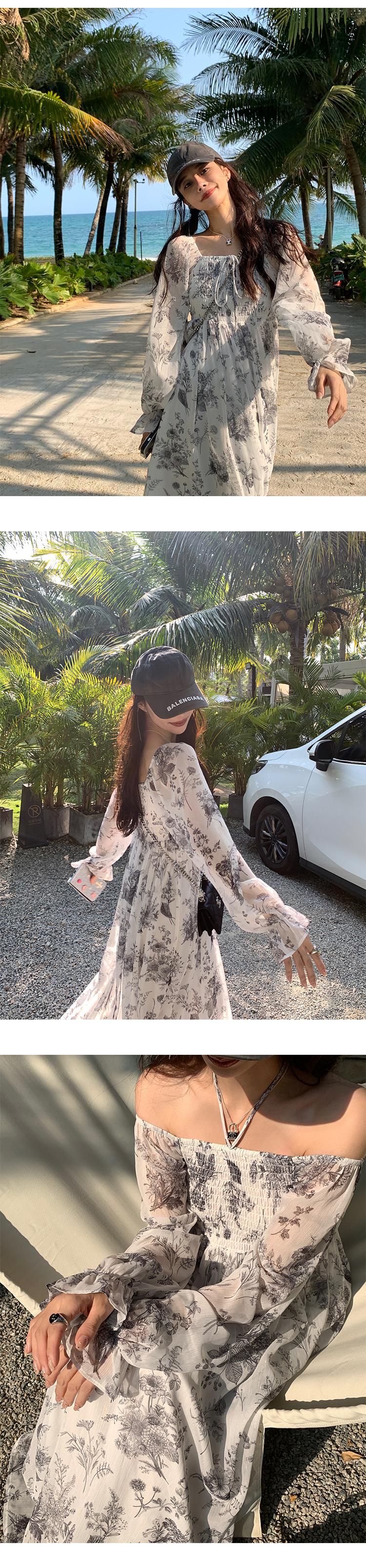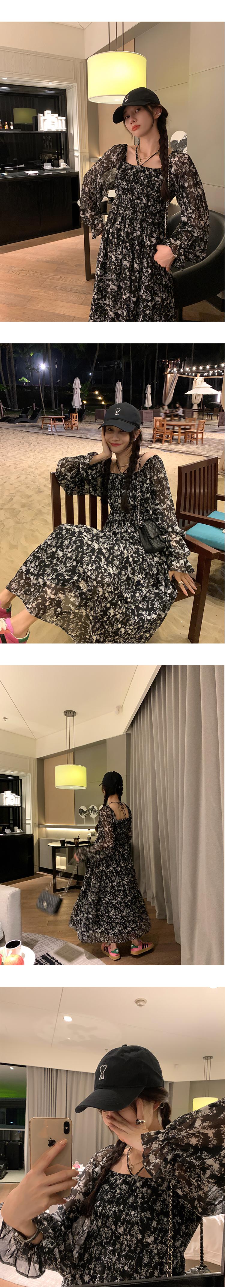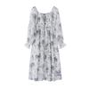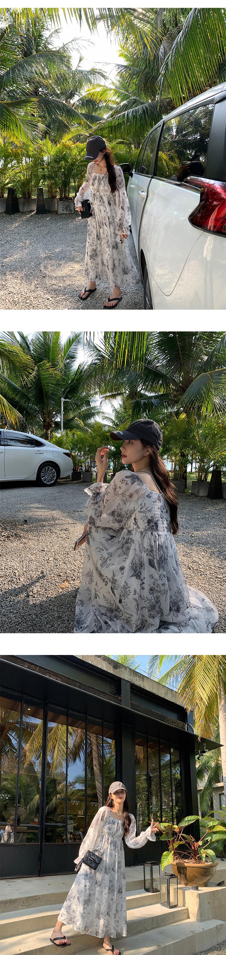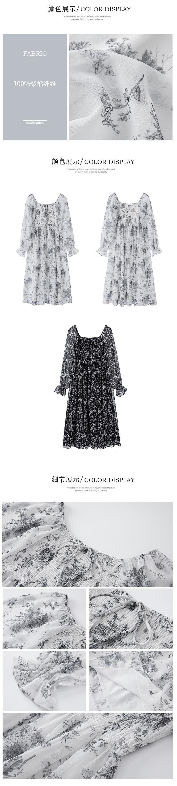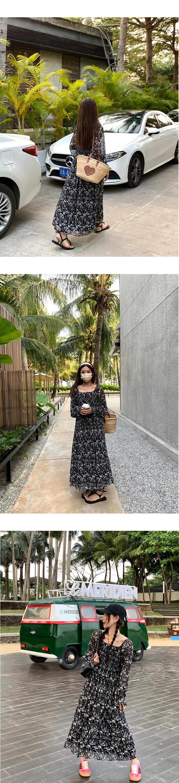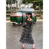 Vestido Floral de Cuello Cuadrado Ekool para Mujer Verano Nuevo Estilo Coreano Holgado con Efecto Adelgazante Falda Midi de Gasa para Reducir la Edad