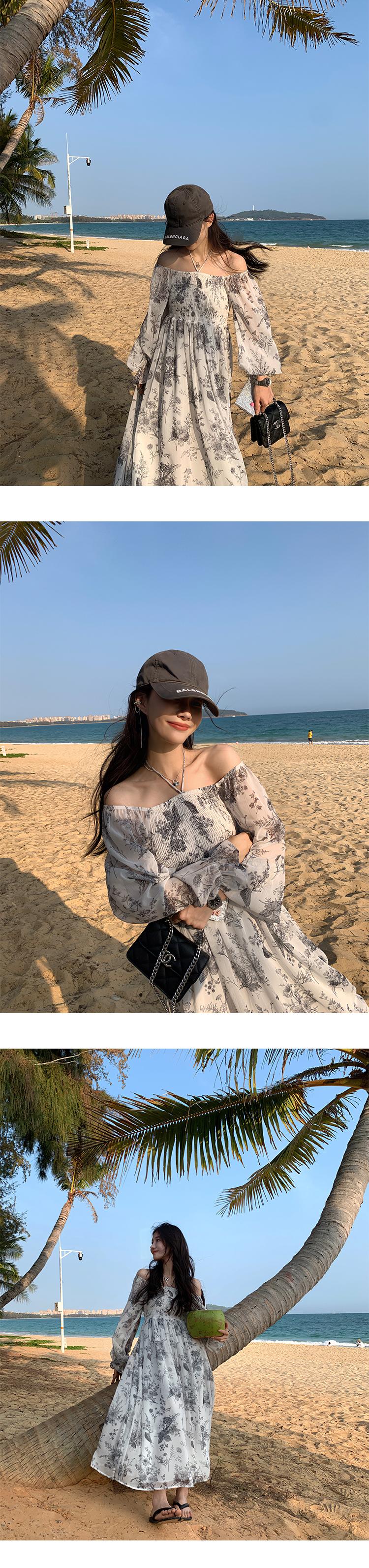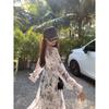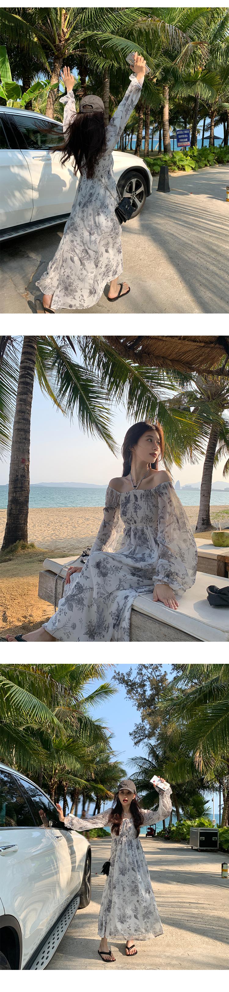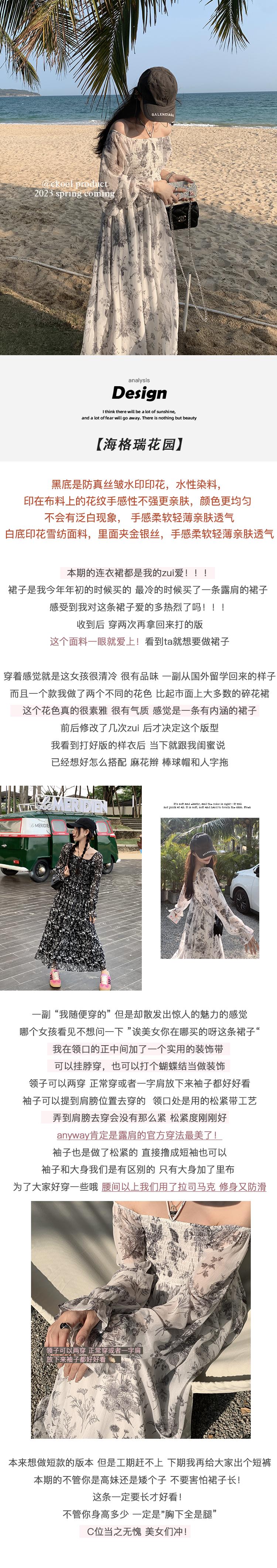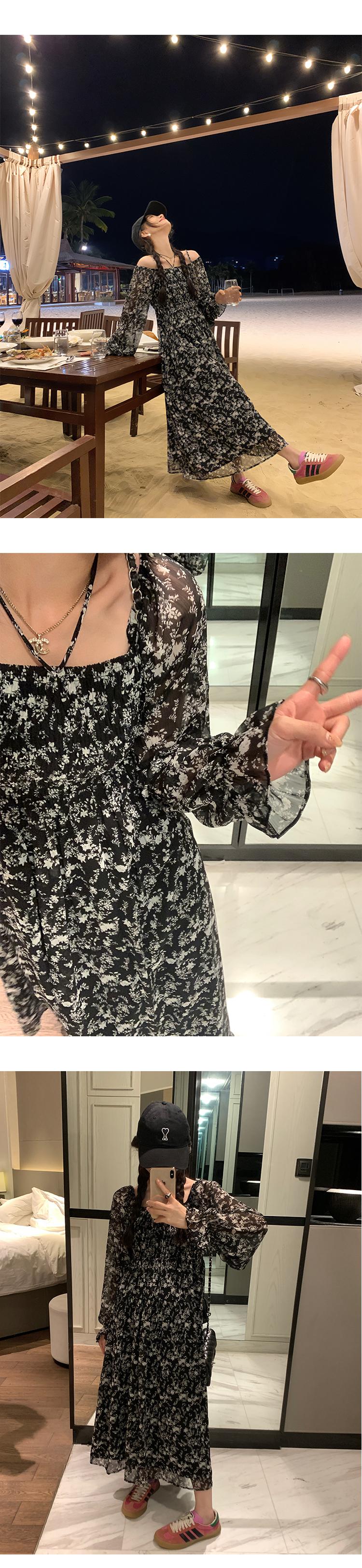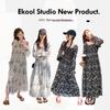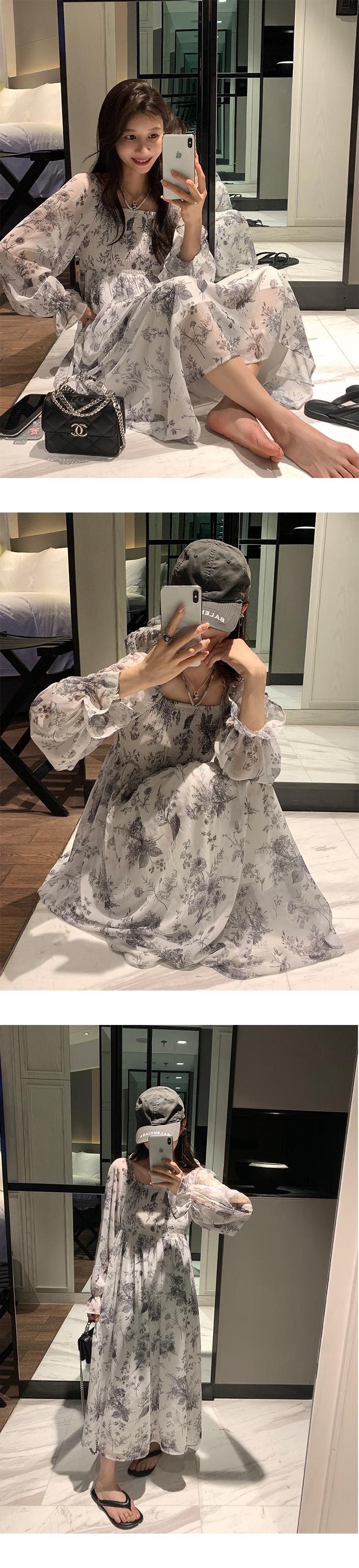 Vestido Floral de Cuello Cuadrado Ekool para Mujer Verano Nuevo Estilo Coreano Holgado con Efecto Adelgazante Falda Midi de Gasa para Reducir la Edad