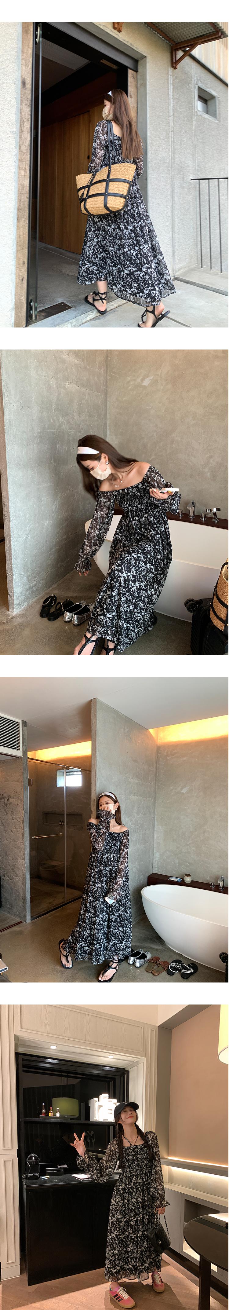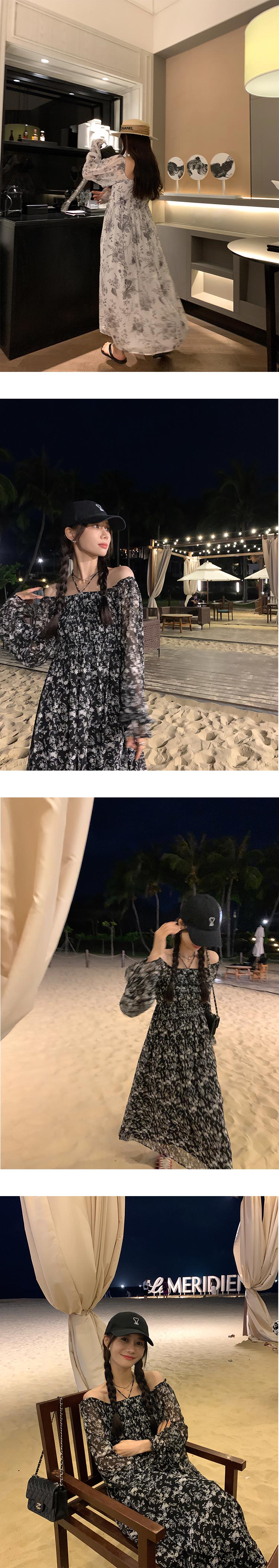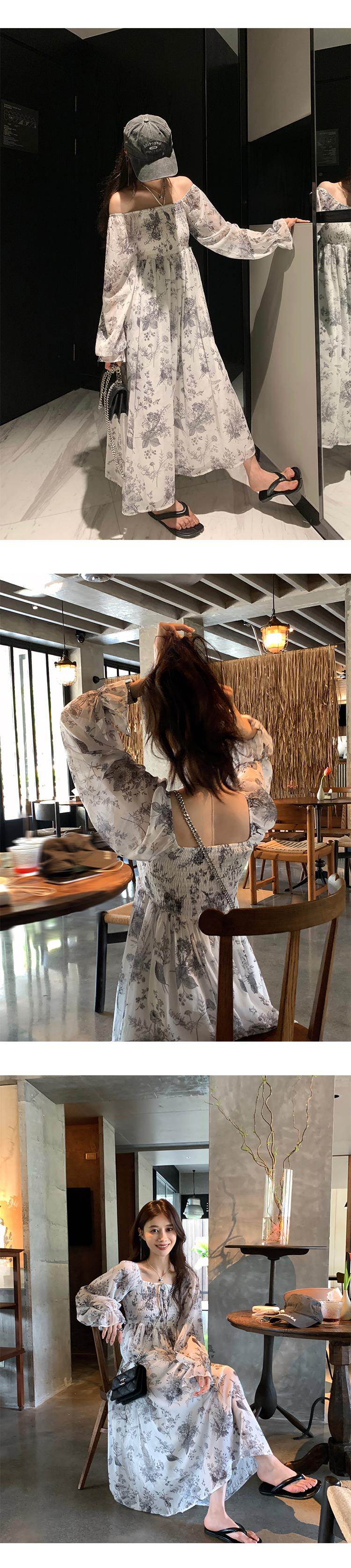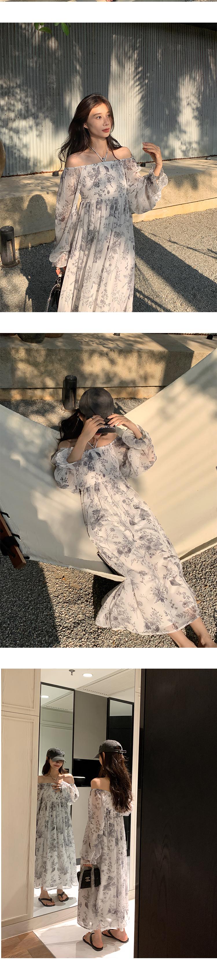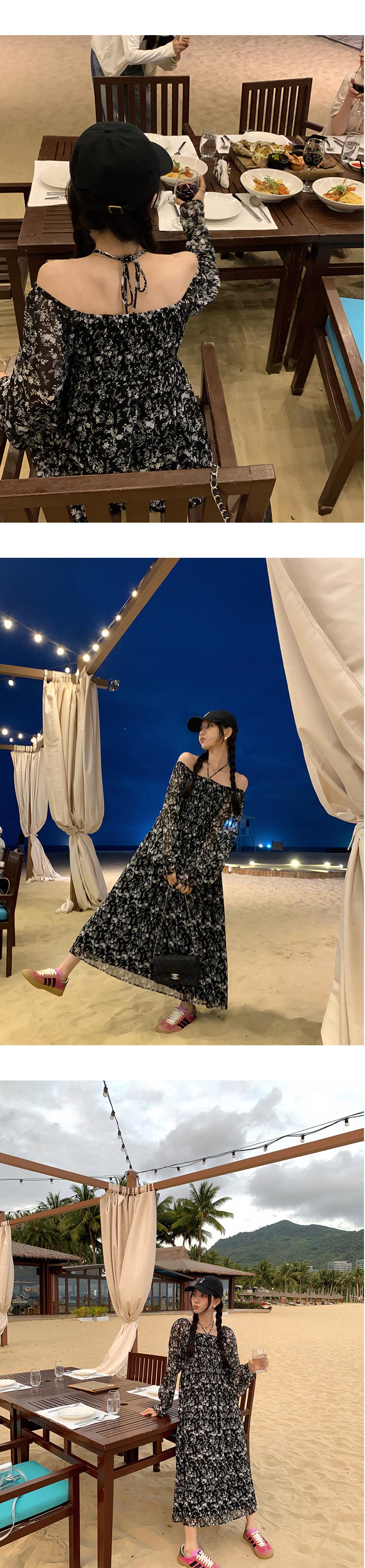 Vestido Floral de Cuello Cuadrado Ekool para Mujer Verano Nuevo Estilo Coreano Holgado con Efecto Adelgazante Falda Midi de Gasa para Reducir la Edad