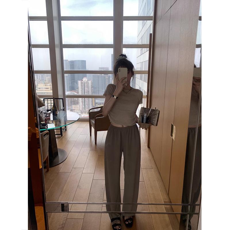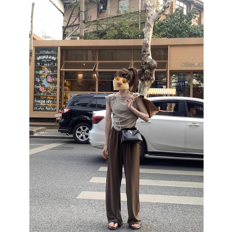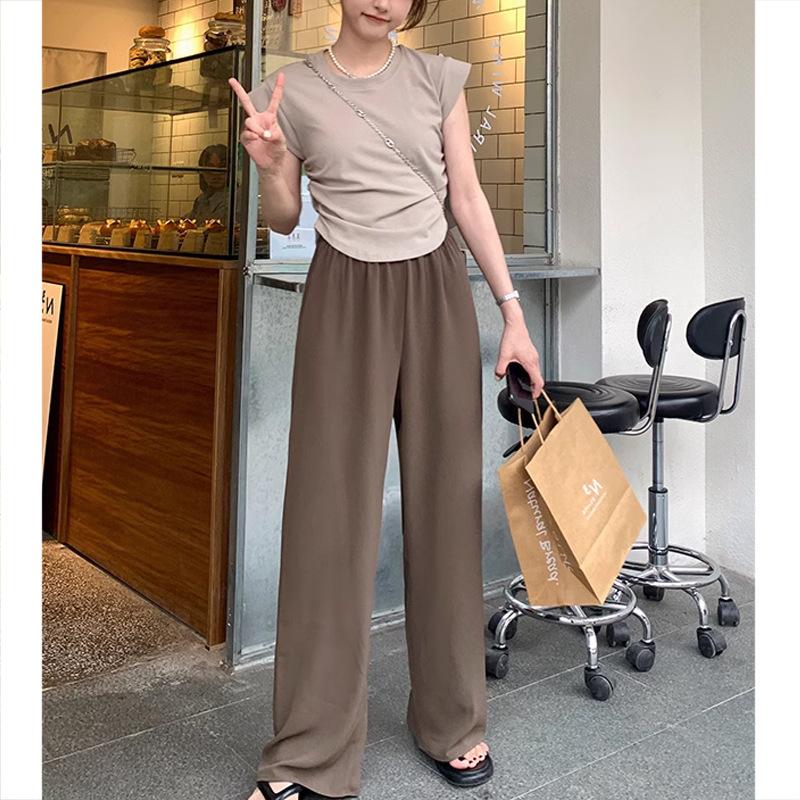 Pantalones frescos de verano para mujer, pantalones de traje casuales, delgados, rectos y de pierna ancha, pantalones adelgazantes nuevos de verano 2023