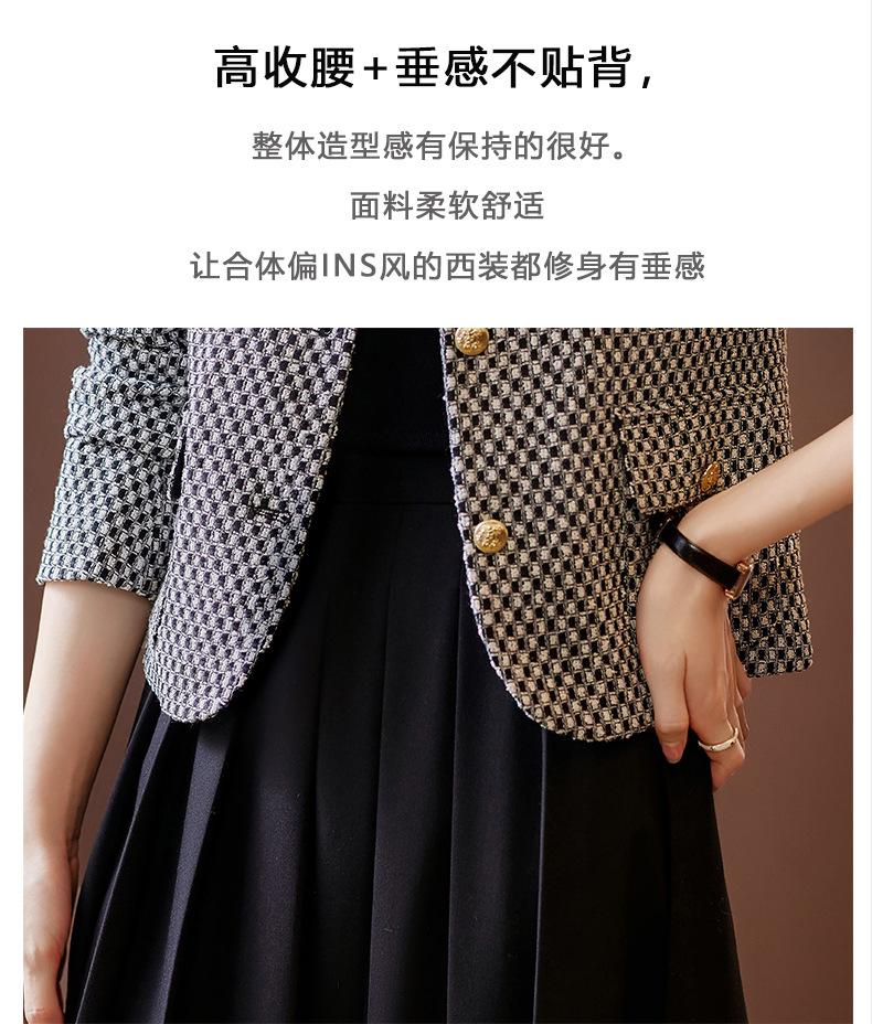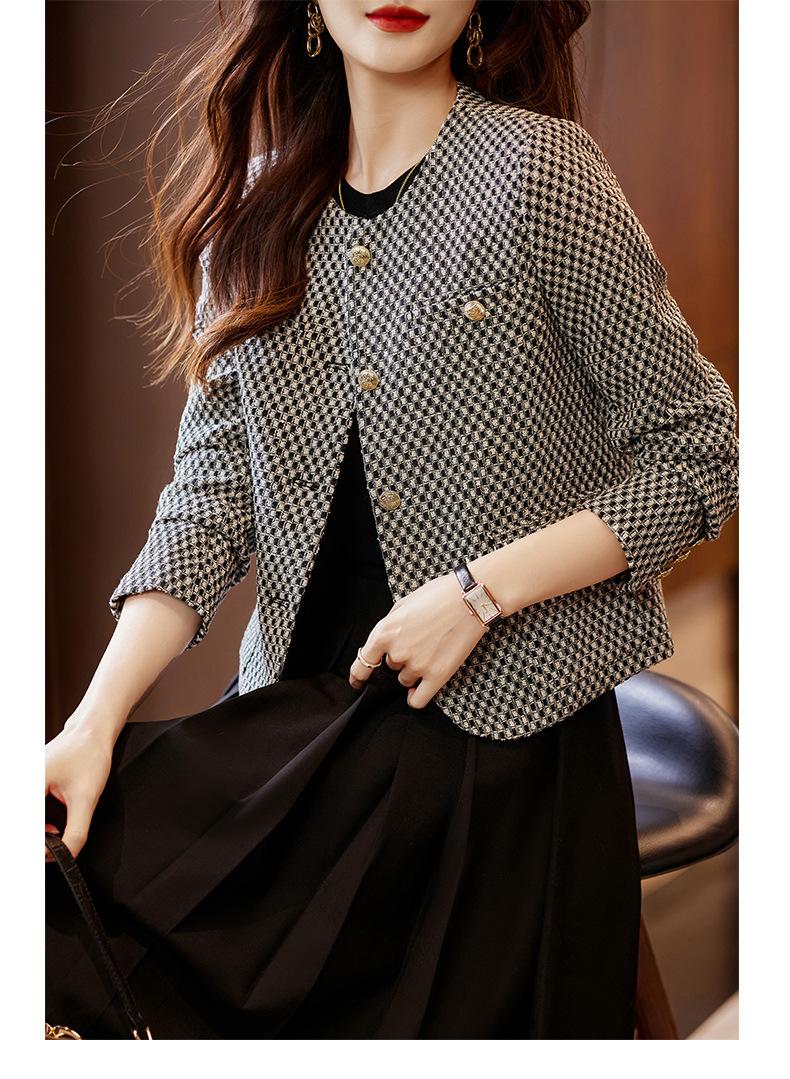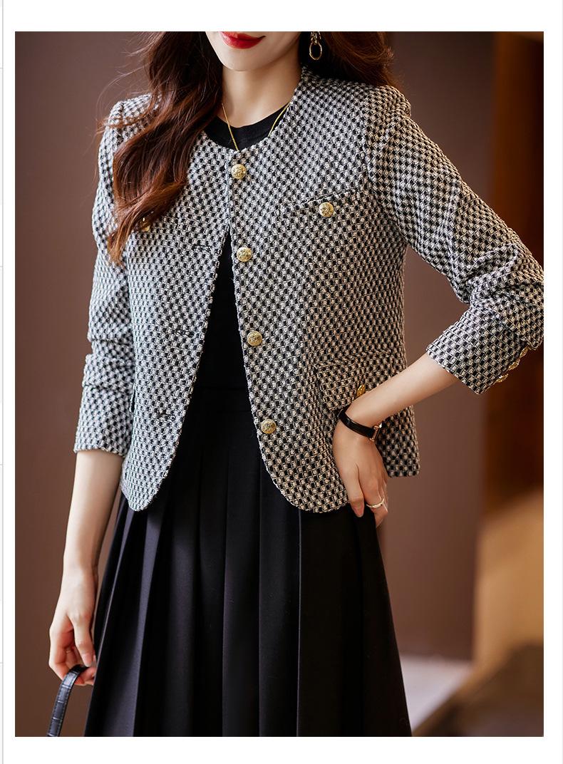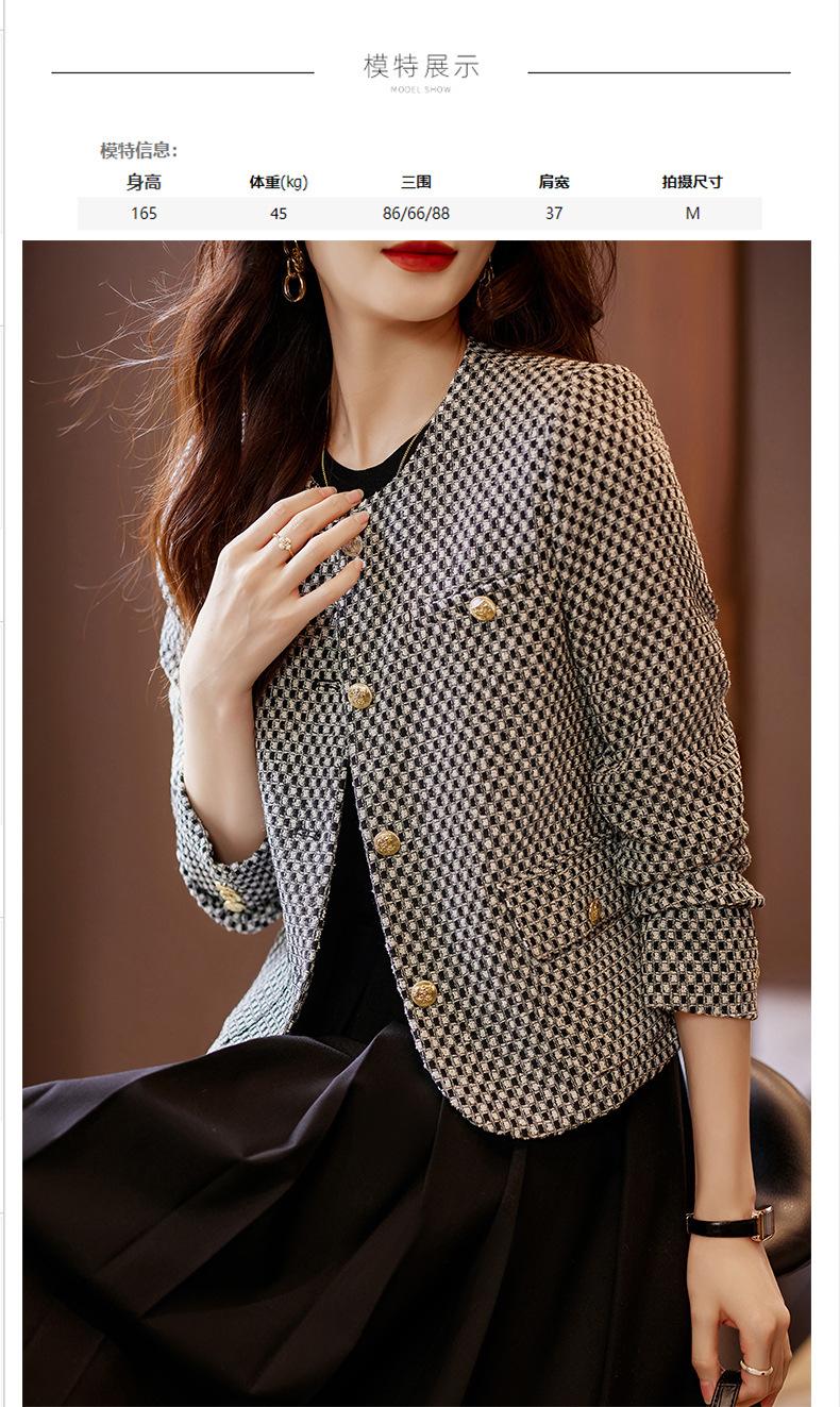 Chaqueta corta de pata de gallo para mujer, otoño 2023, nueva moda, estilo occidental, top pequeño, tweed pequeño y fragante.