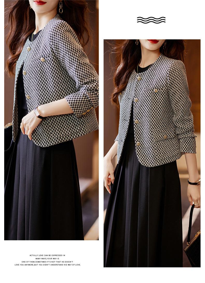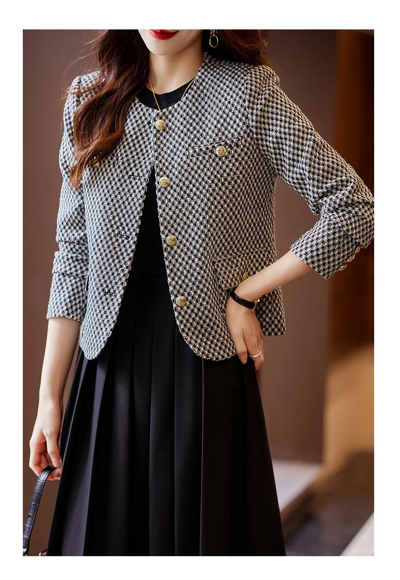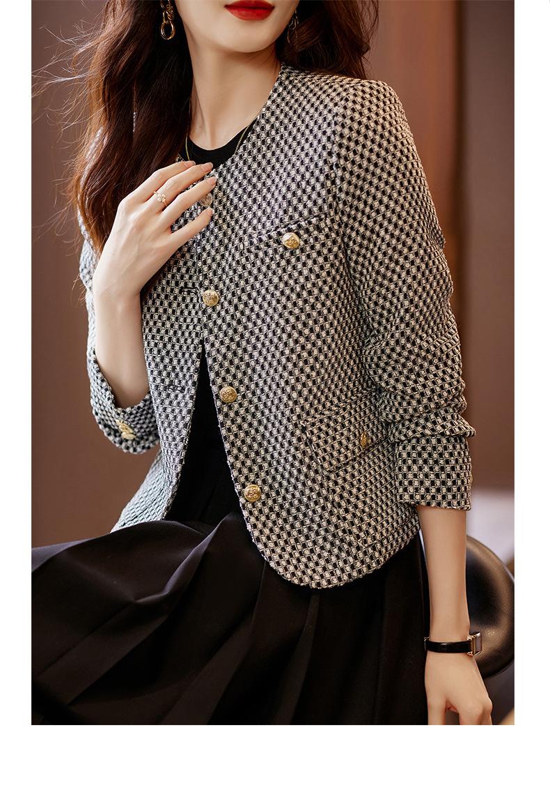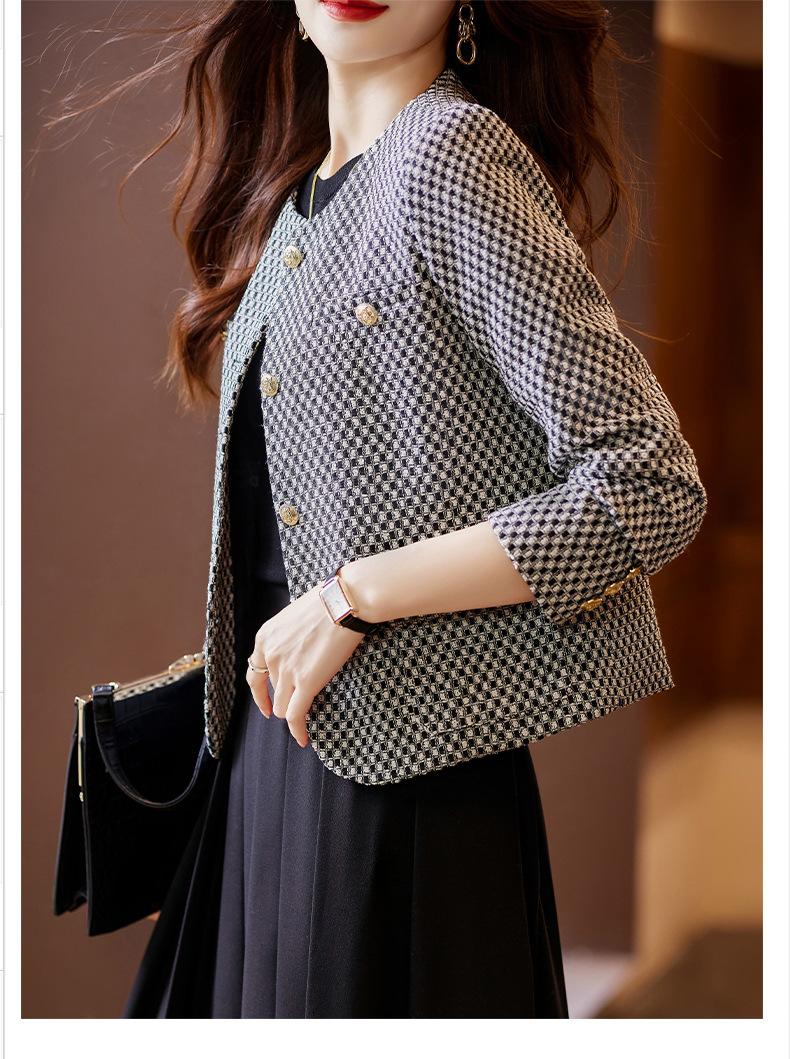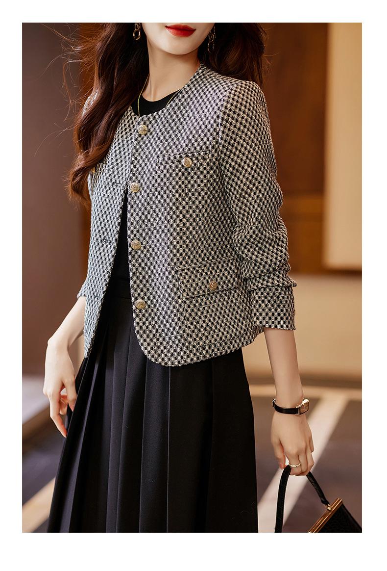 Chaqueta corta de pata de gallo para mujer, otoño 2023, nueva moda, estilo occidental, top pequeño, tweed pequeño y fragante.