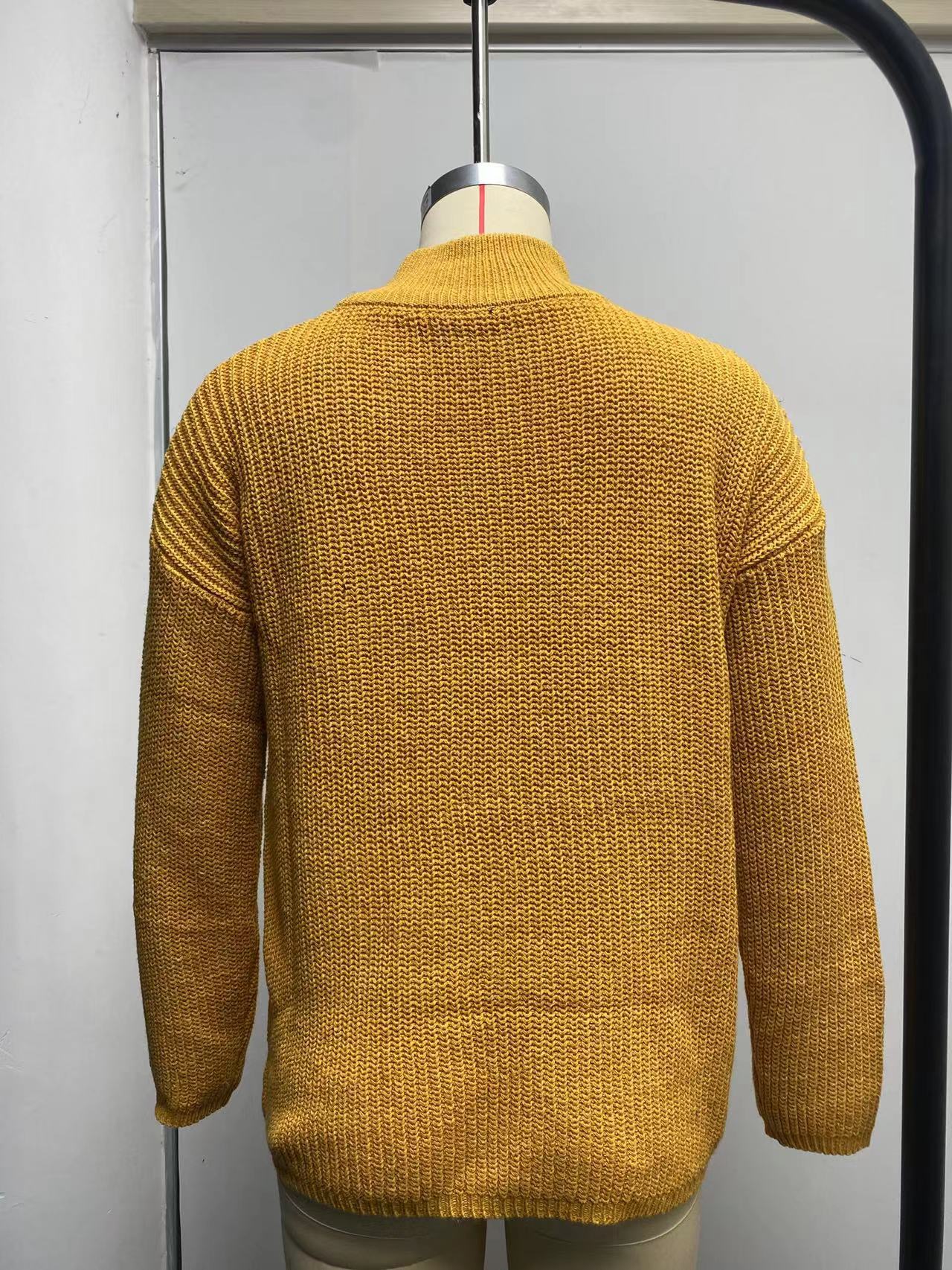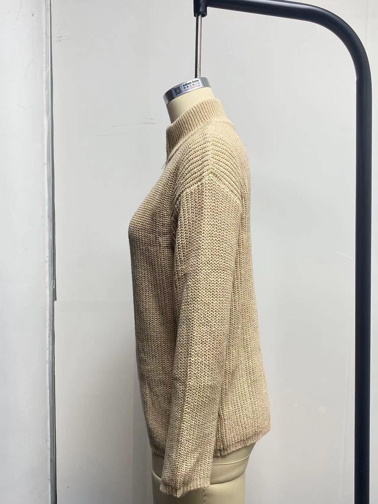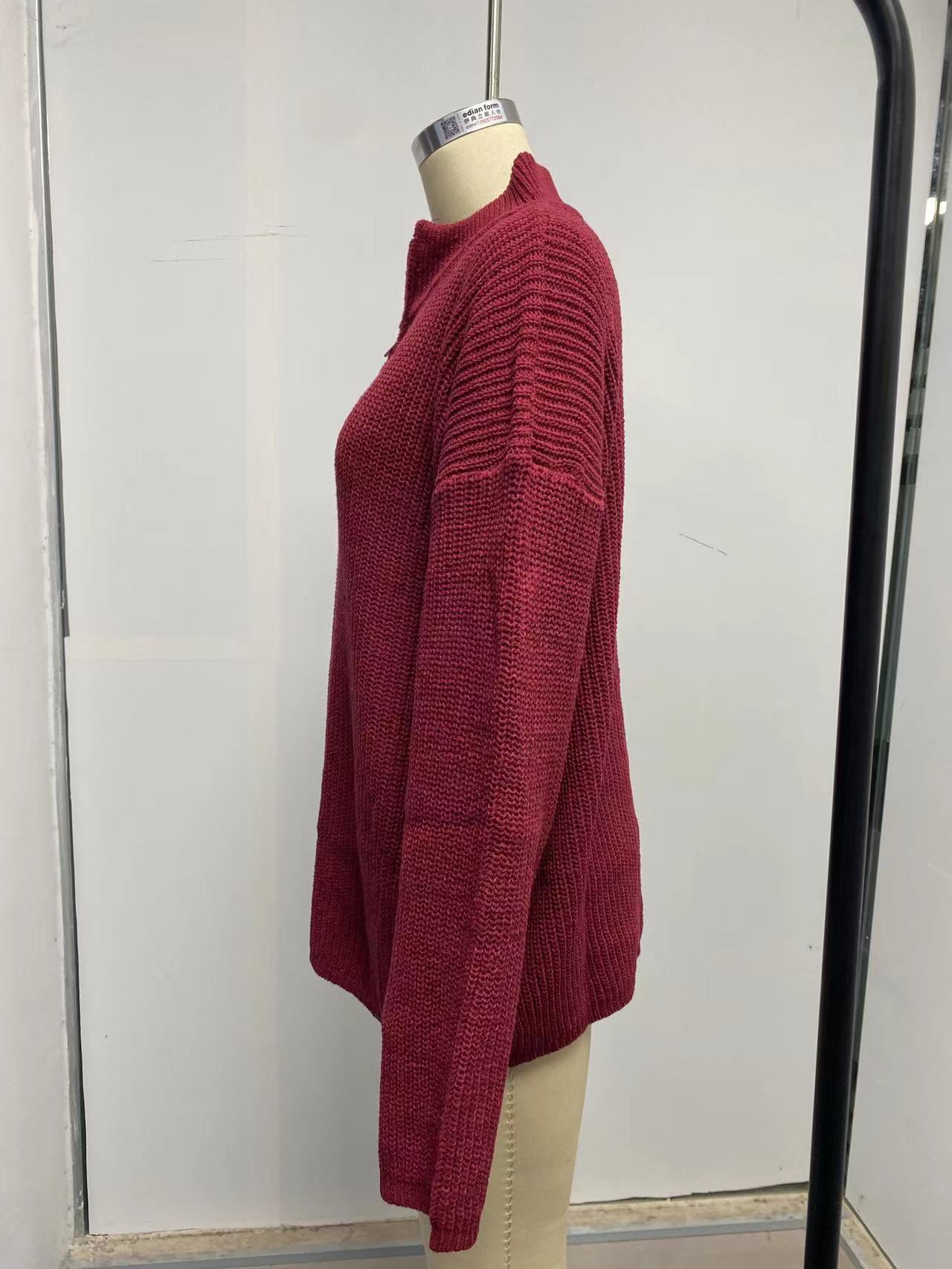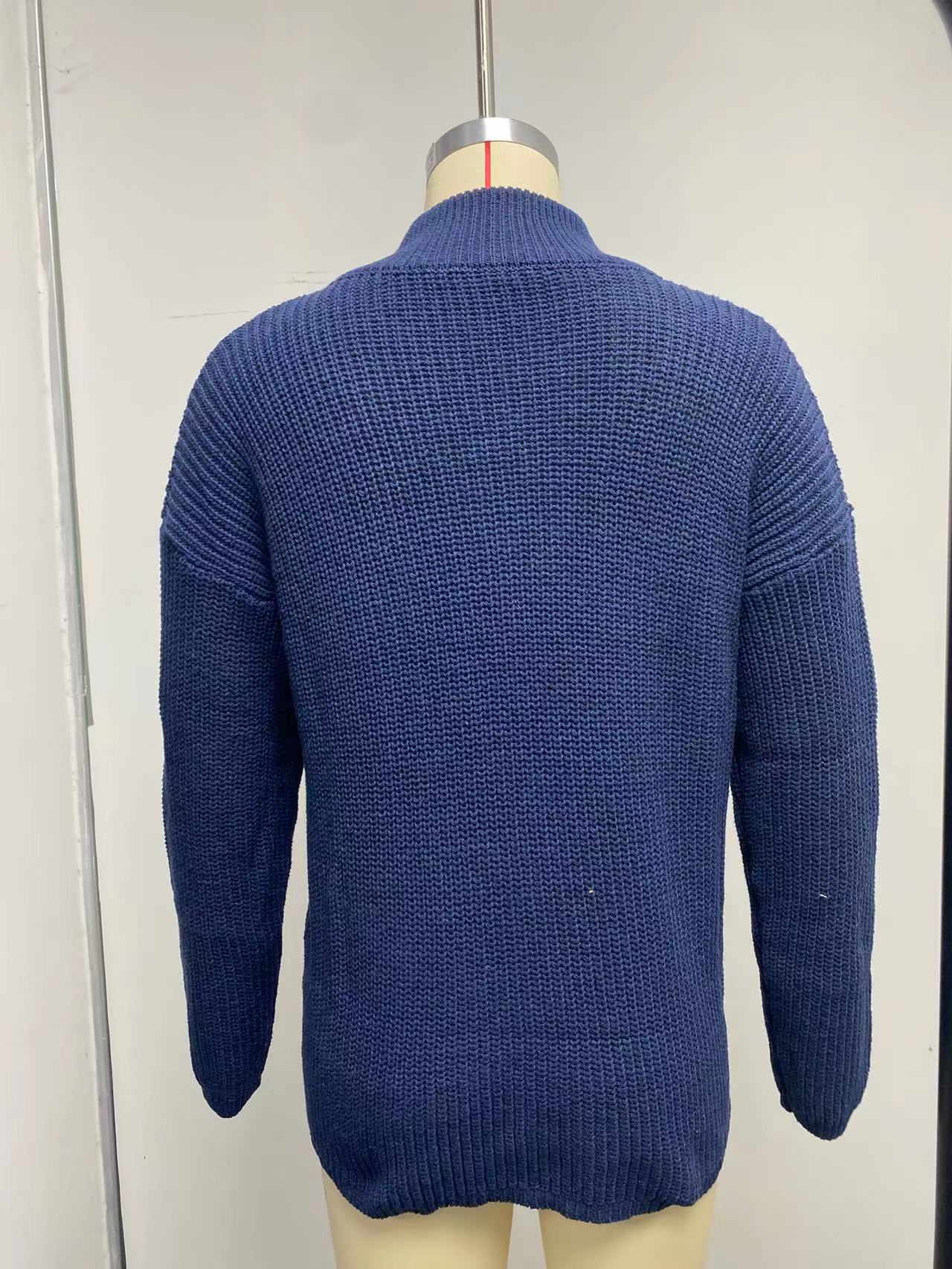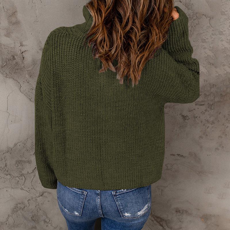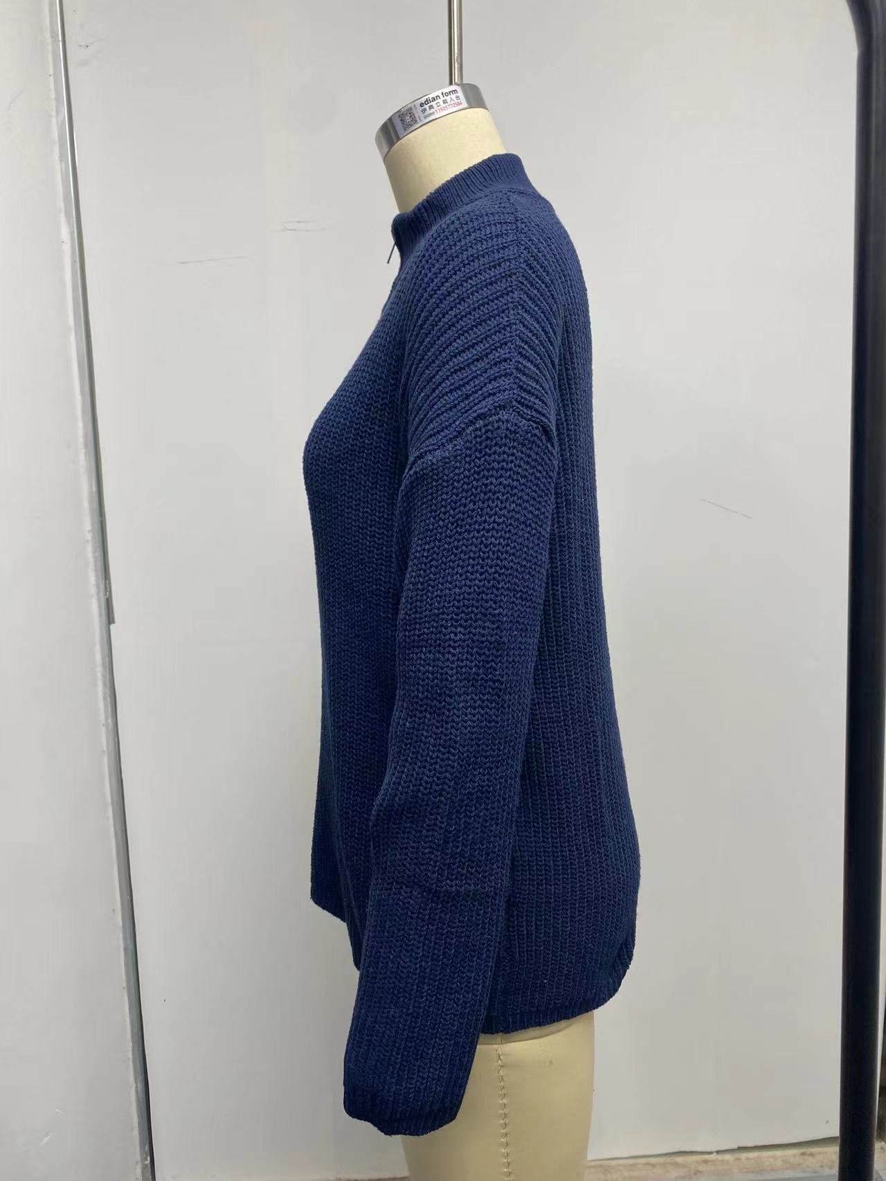 Tops de manga larga con cuello medio abierto de estilo europeo y americano para mujer, otoño e invierno, nuevo suéter holgado de color sólido con cuello alto y rayas en las axilas |