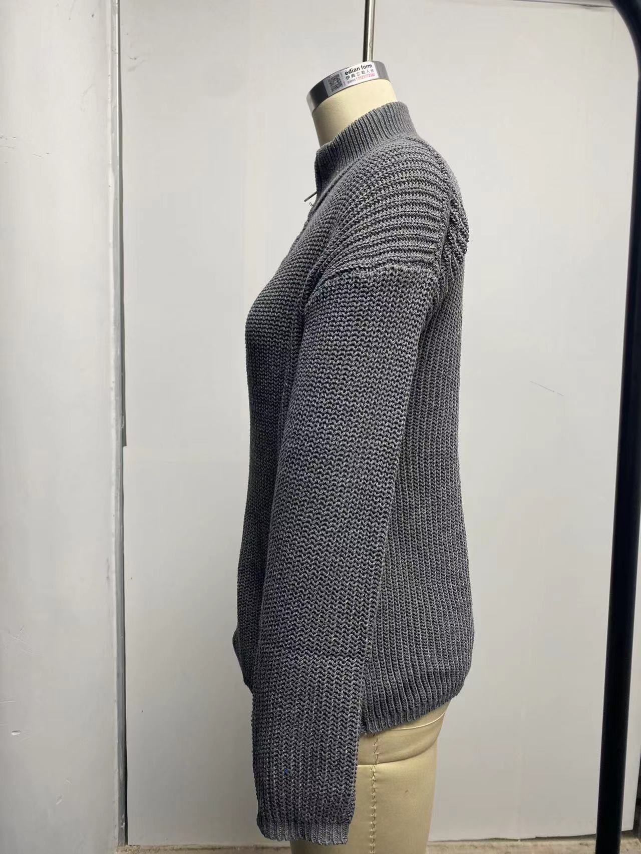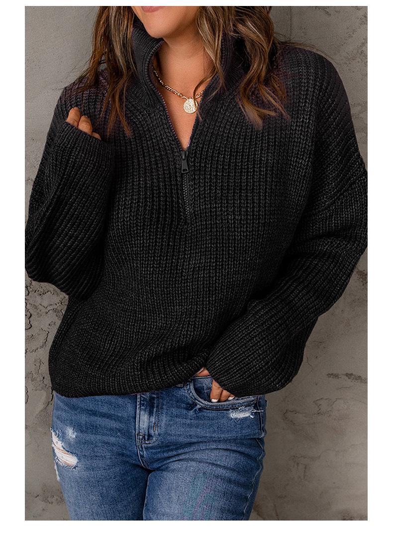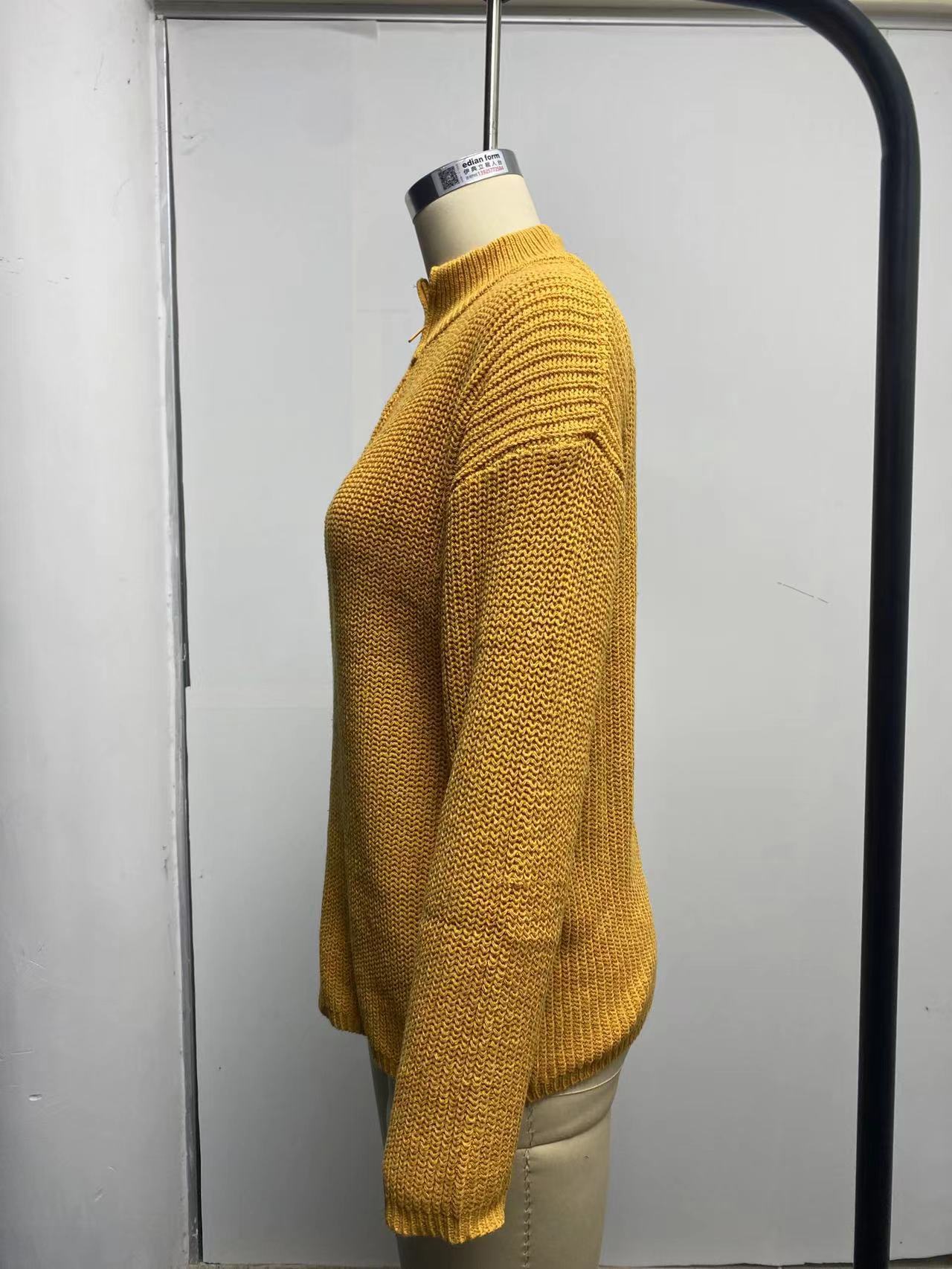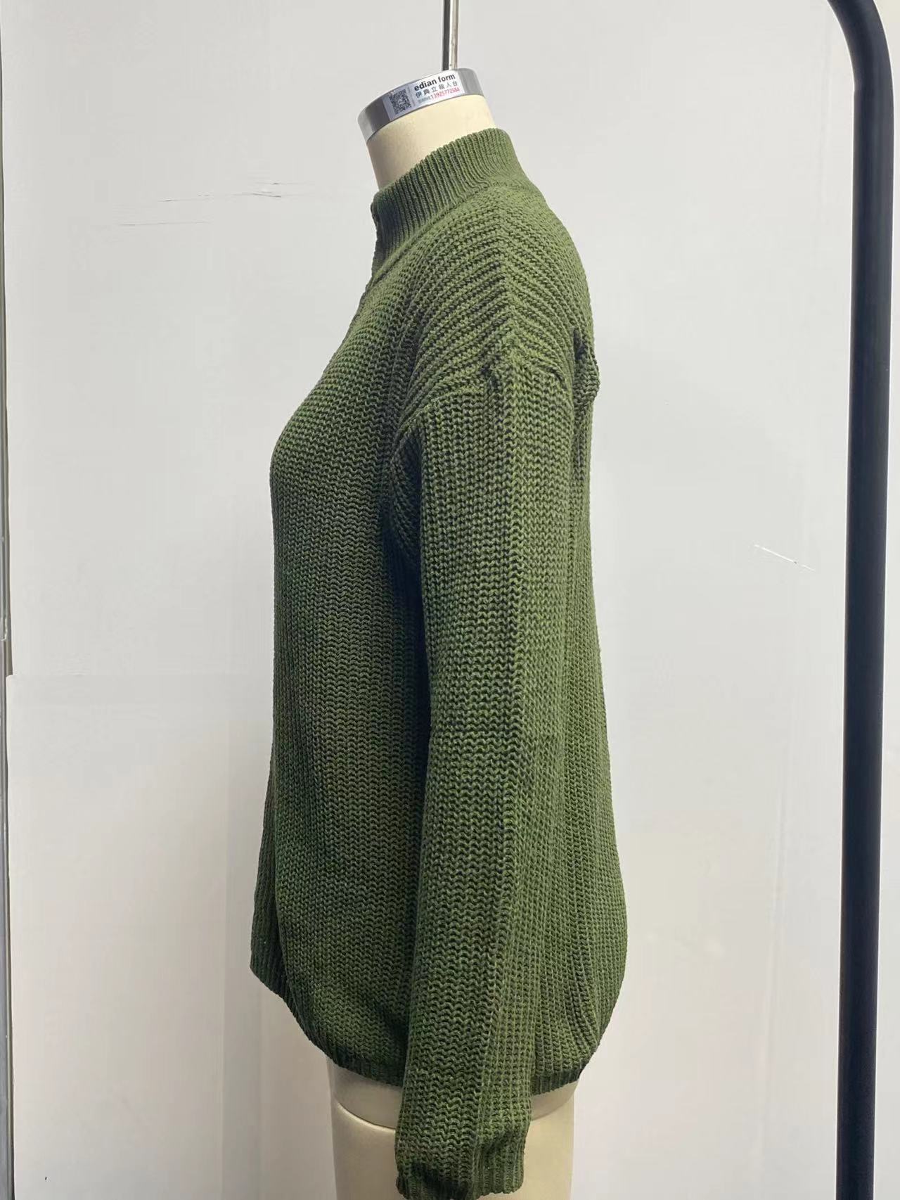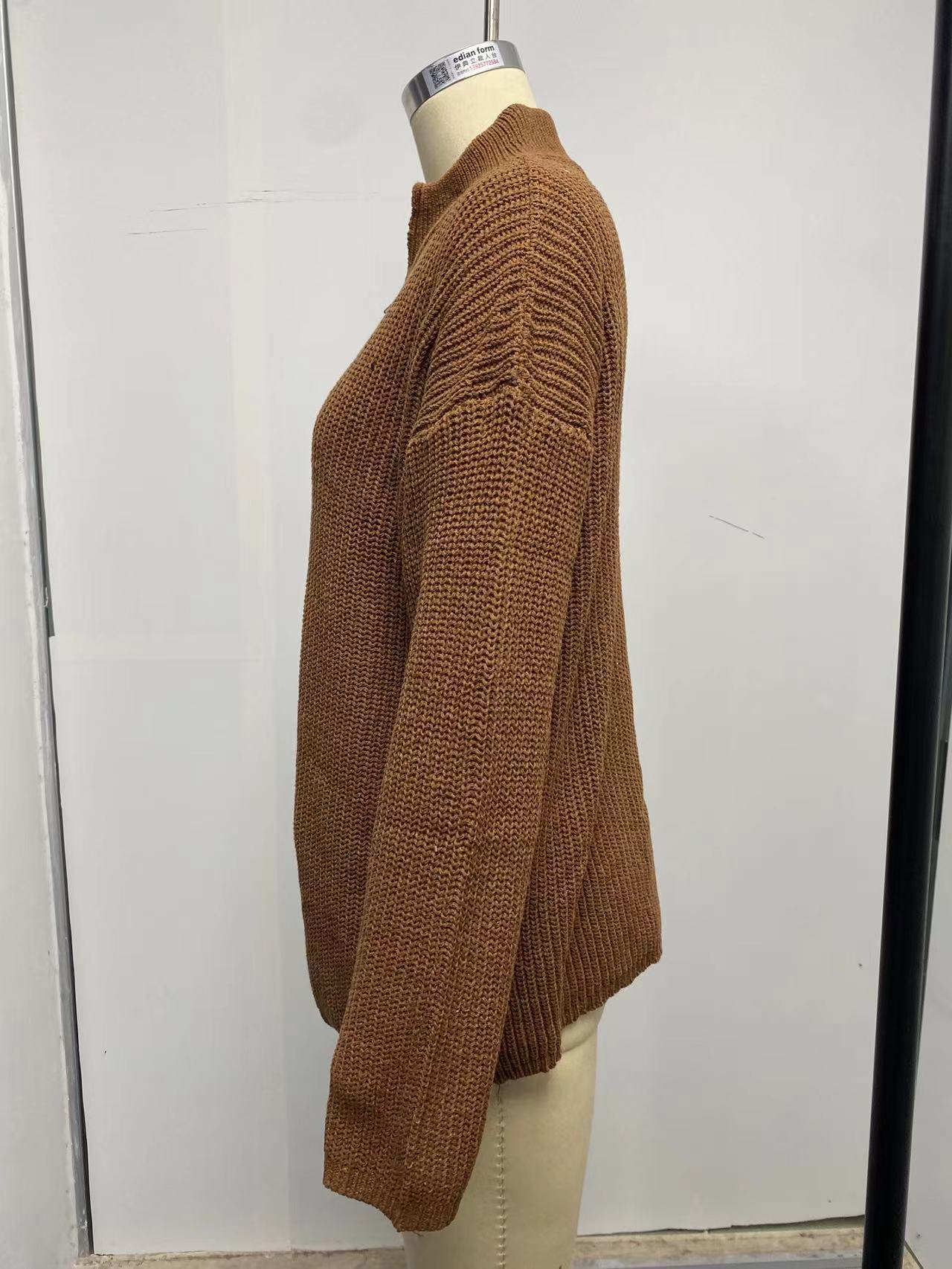 Tops de manga larga con cuello medio abierto de estilo europeo y americano para mujer, otoño e invierno, nuevo suéter holgado de color sólido con cuello alto y rayas en las axilas |