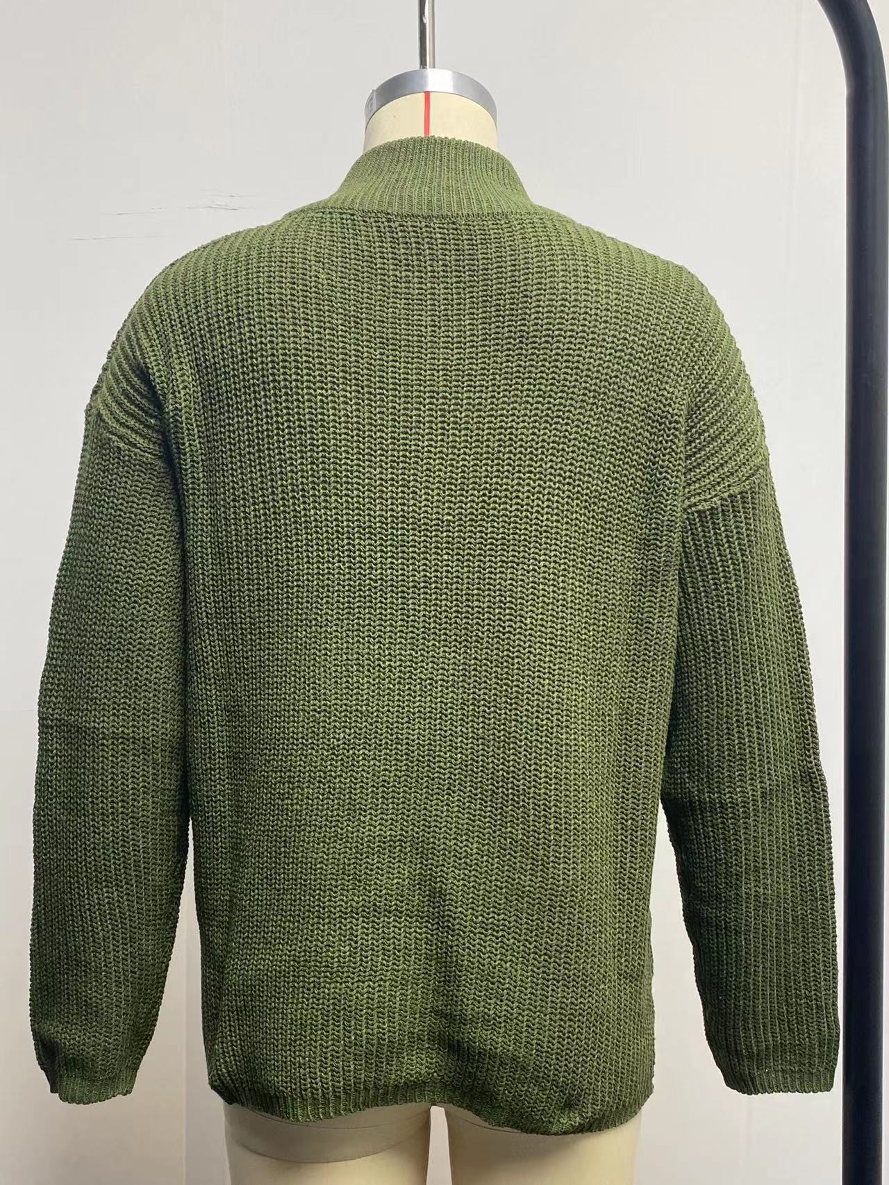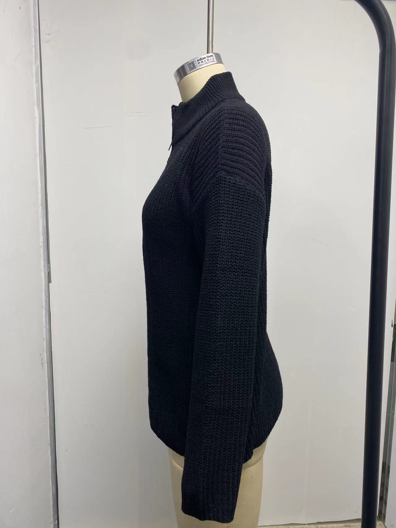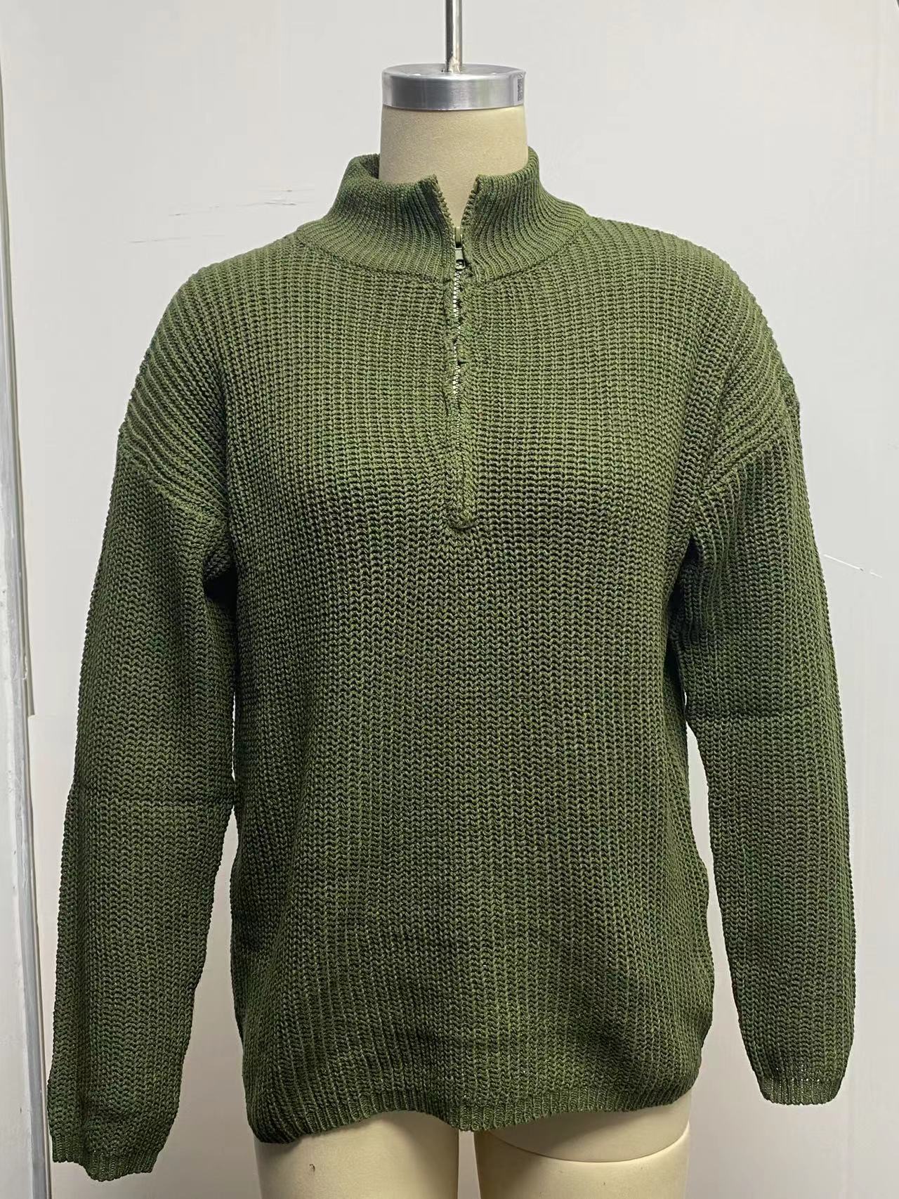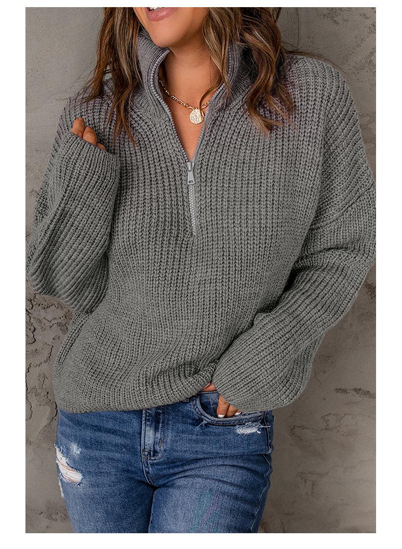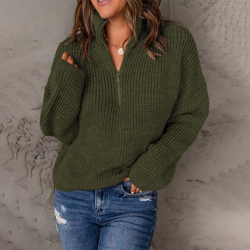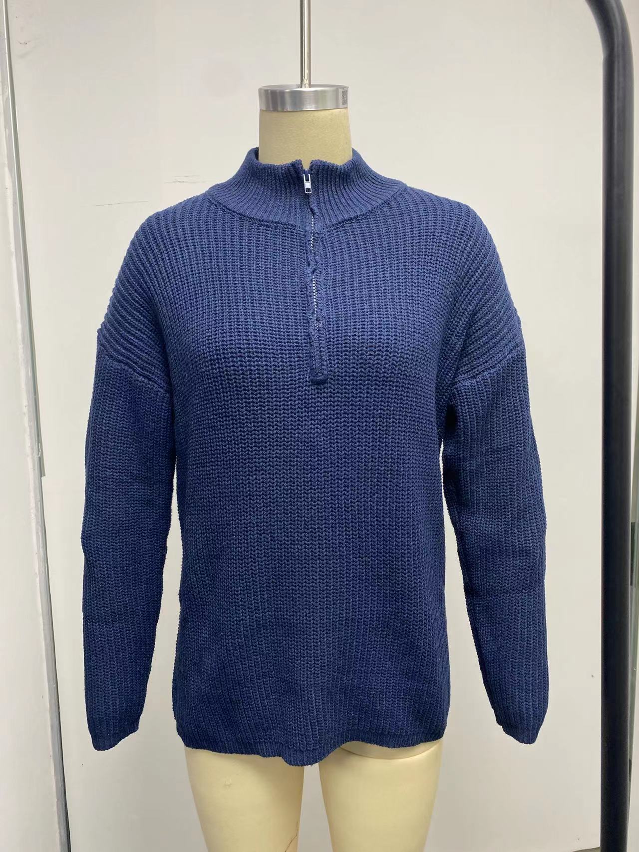 Tops de manga larga con cuello medio abierto de estilo europeo y americano para mujer, otoño e invierno, nuevo suéter holgado de color sólido con cuello alto y rayas en las axilas |