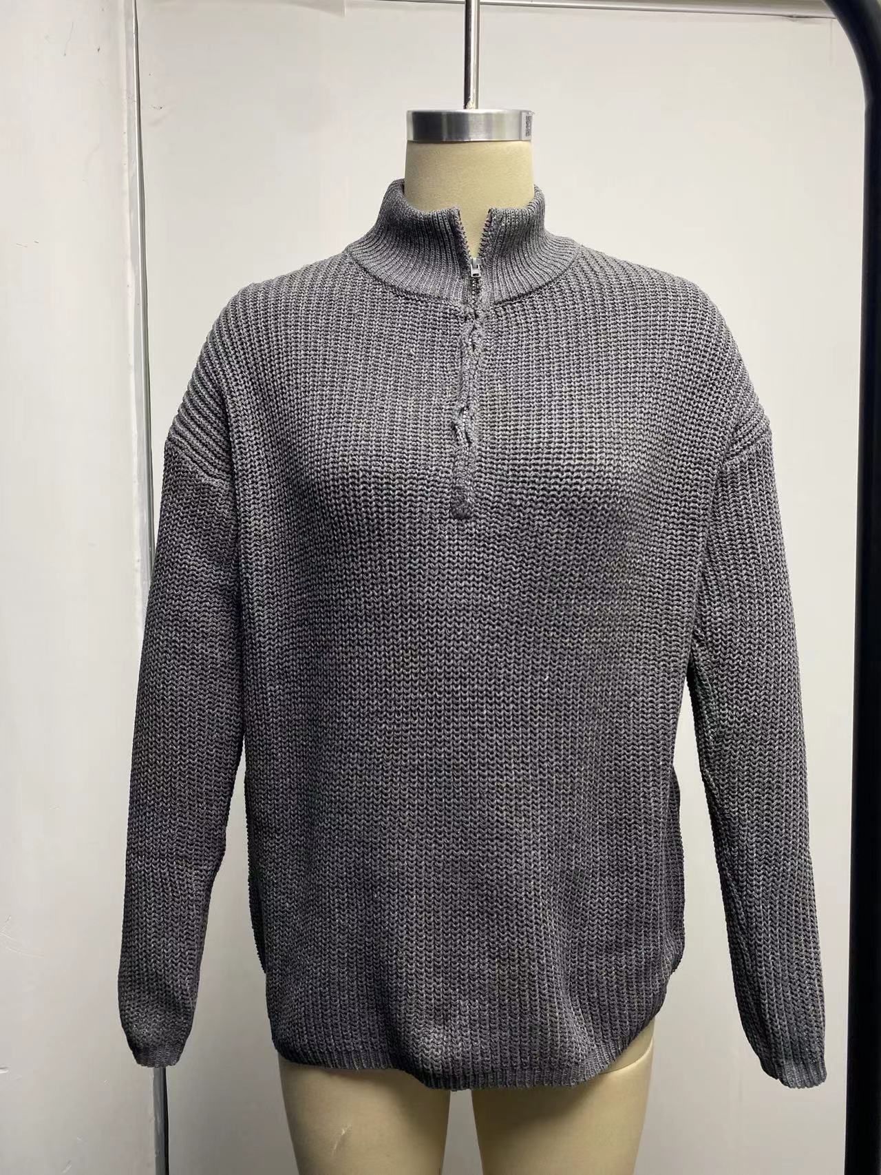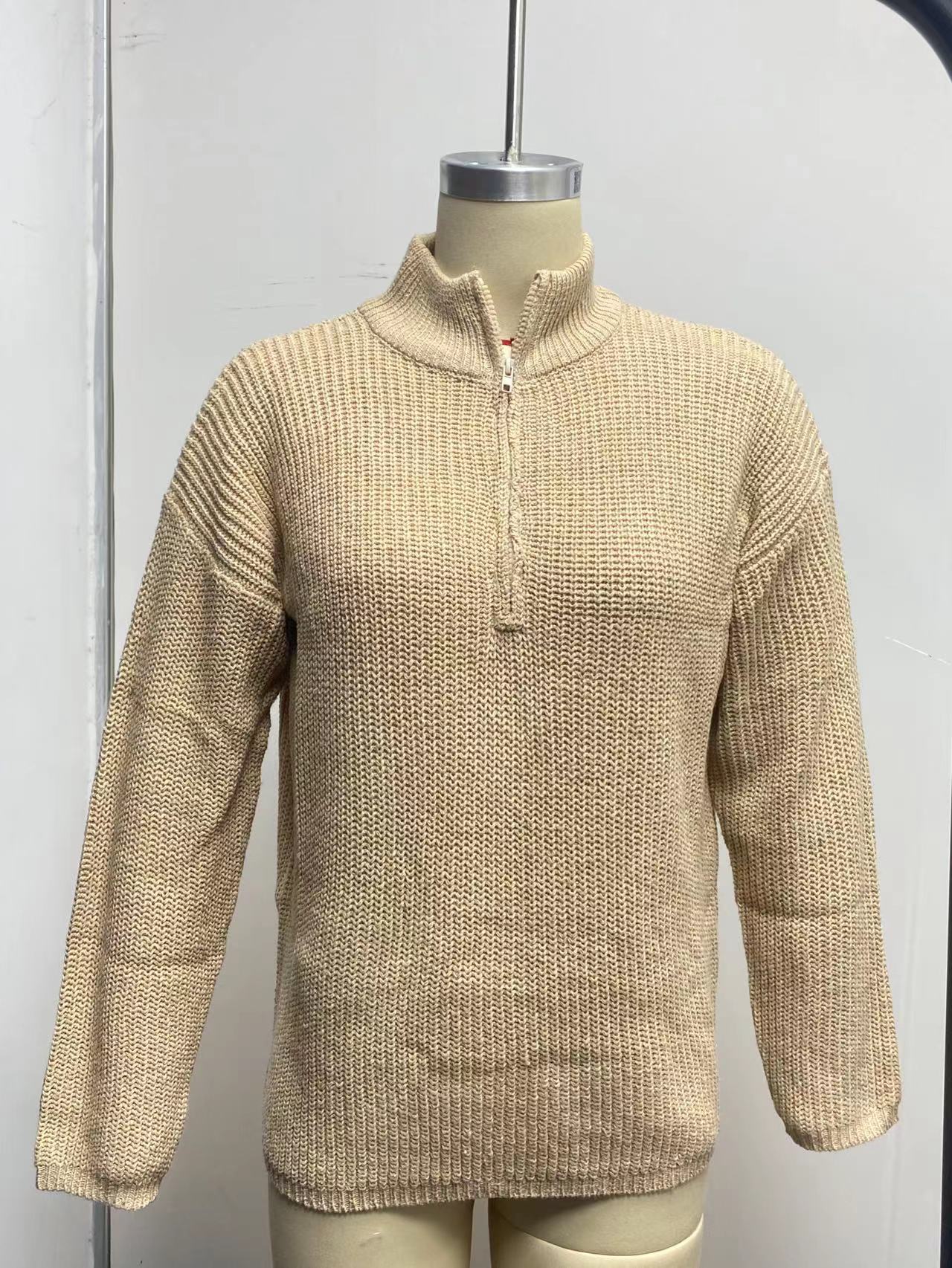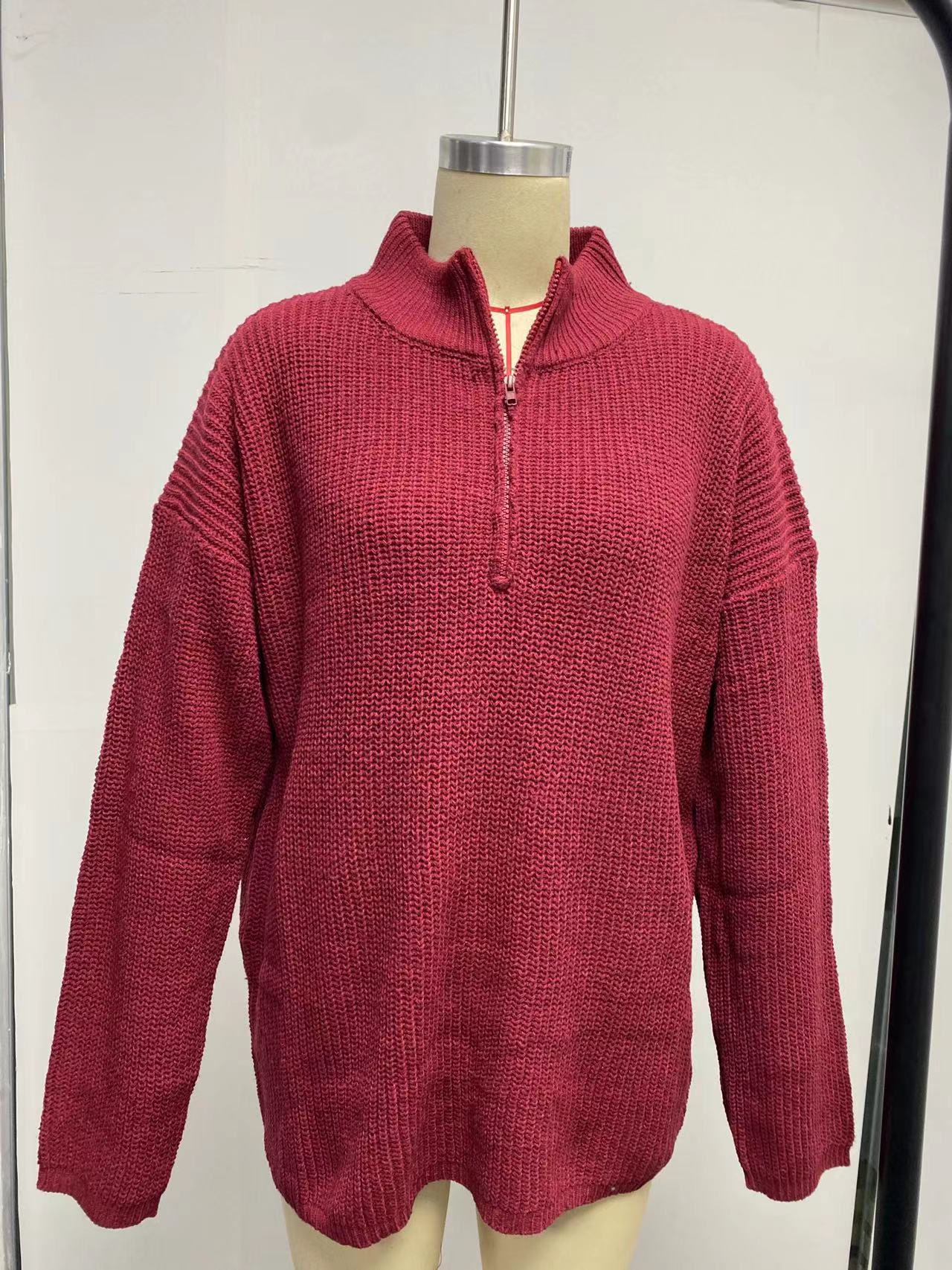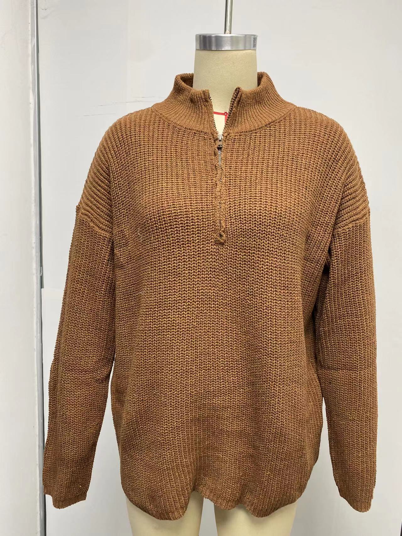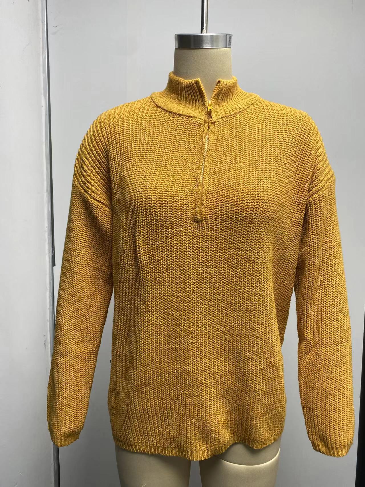 Tops de manga larga con cuello medio abierto de estilo europeo y americano para mujer, otoño e invierno, nuevo suéter holgado de color sólido con cuello alto y rayas en las axilas |