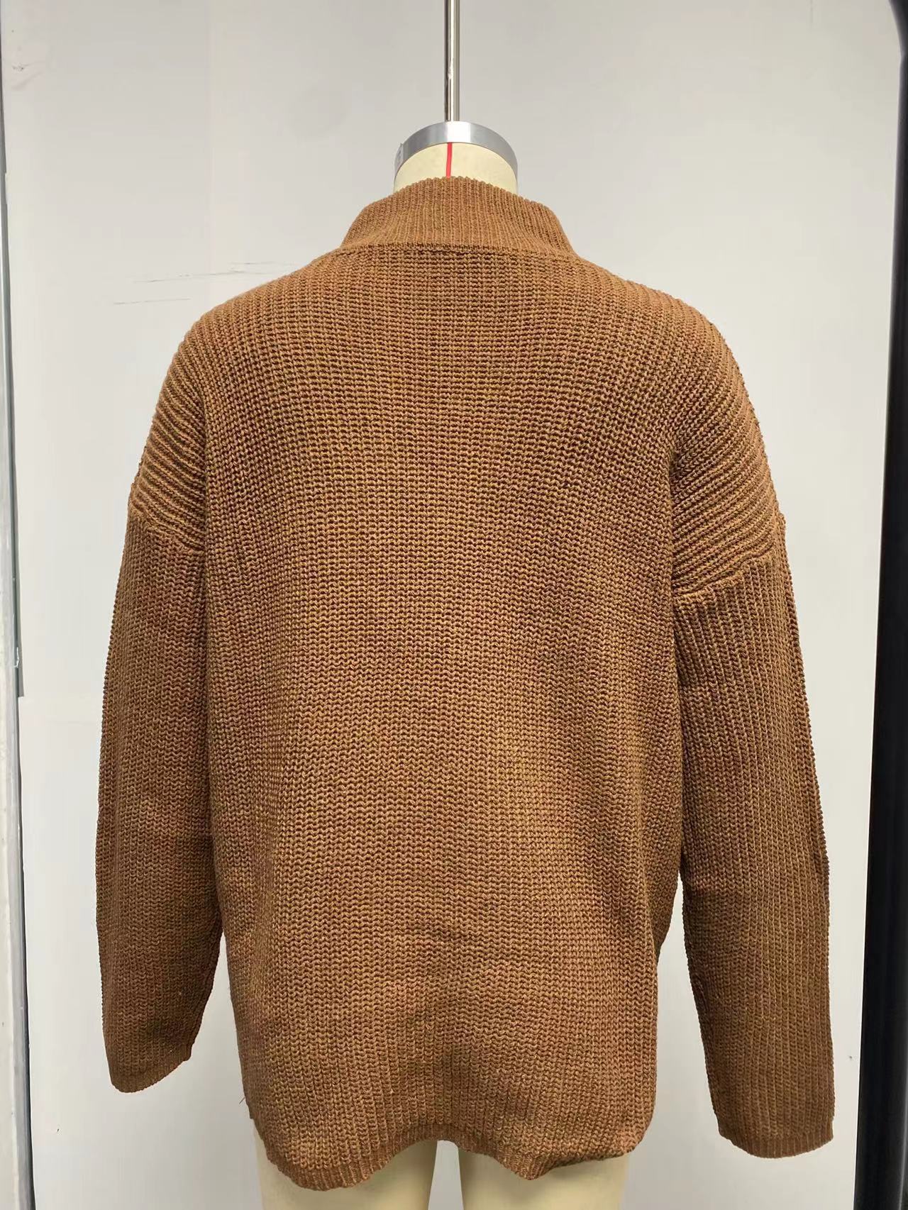 Cárdigan de comercio exterior transfronterizo de otoño e invierno 2020, nuevo cárdigan de Amazon para mujer, estilo europeo y americano, con solapa curva y bolsillo grande. |