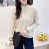Tejido de Punto de Cuello Medio Alto para Mujer Suéter Holgado Estilo Coreano de Largo Medio Camiseta Básica Otoño 2025 Nuevo Tejido de Punto
