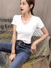 Camiseta blanca de manga corta con cuello en V para mujer, estilo europeo, novedad de verano 2023, top interior de media manga a la moda