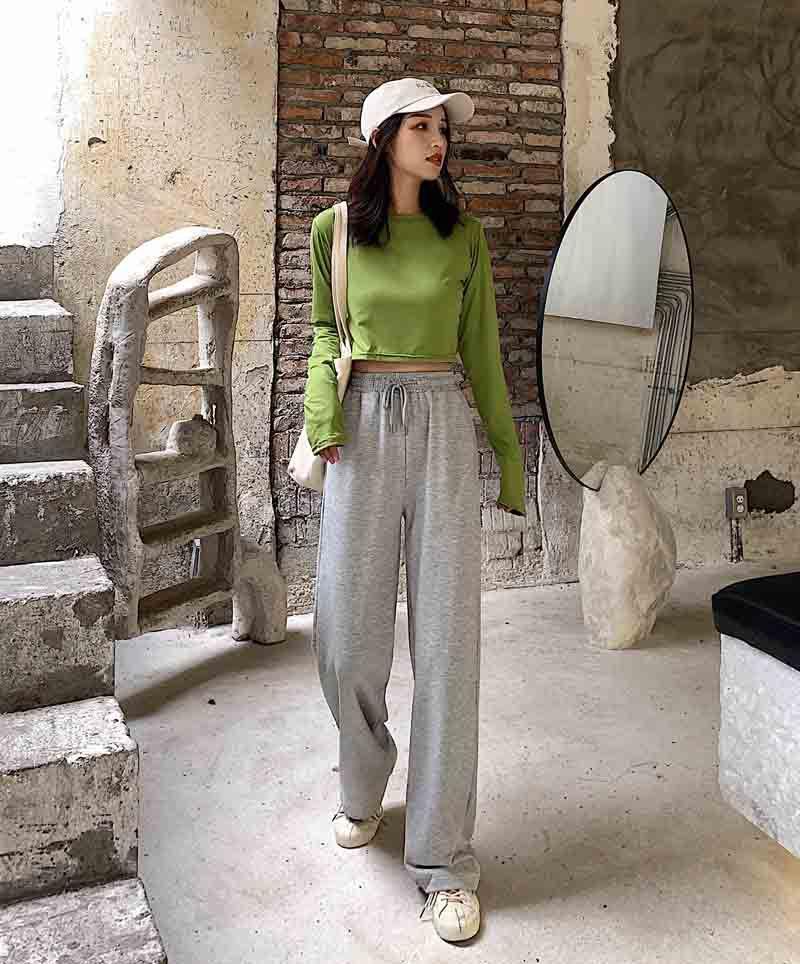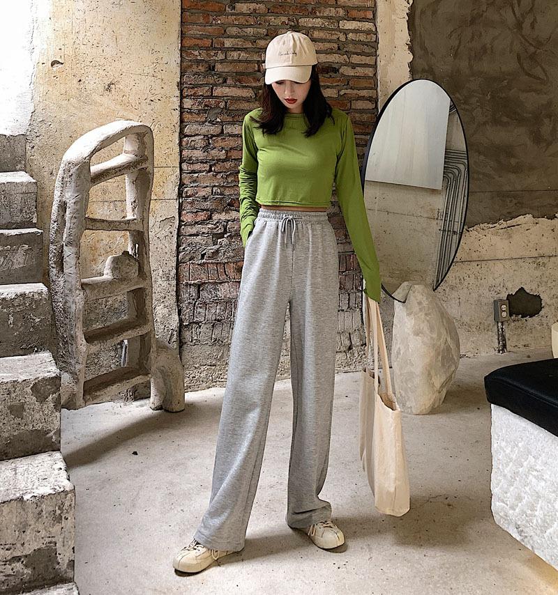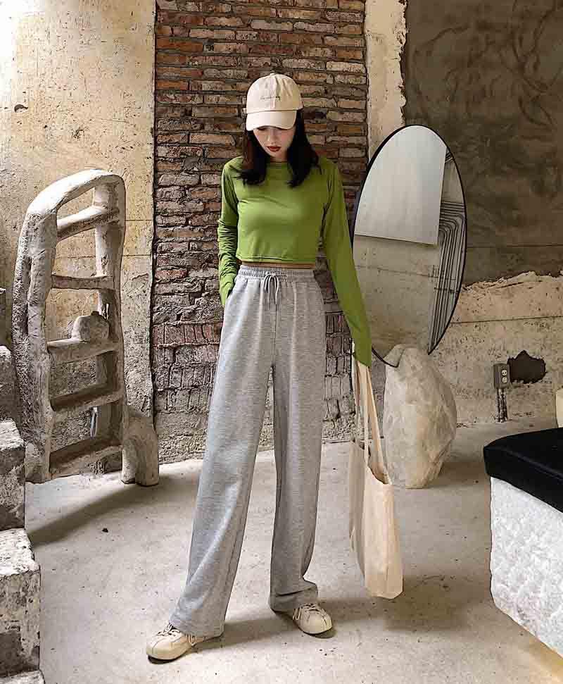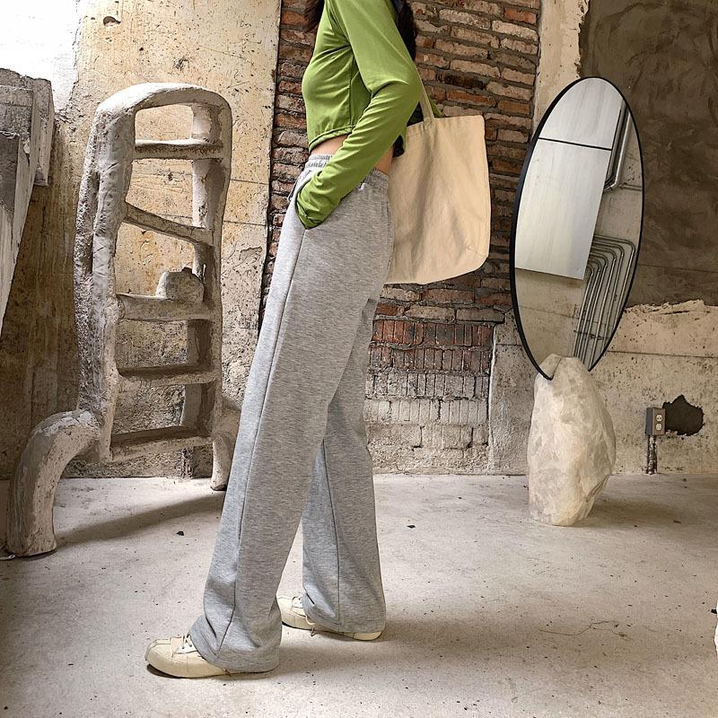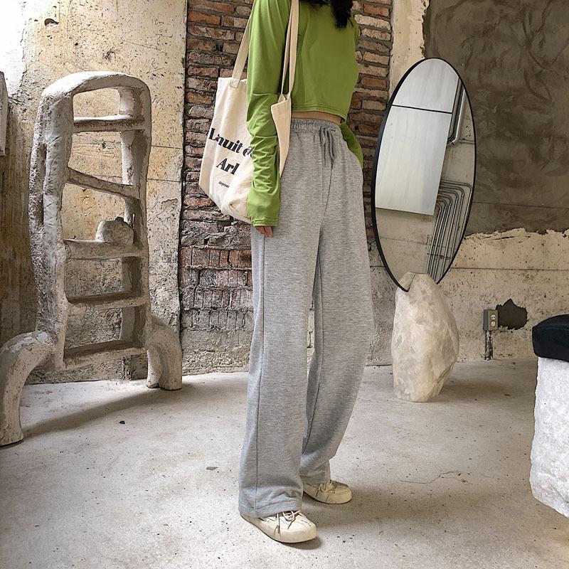 Pantalones deportivos grises para mujer, sueltos, rectos, primavera y otoño, pierna ancha, cintura alta, drapeados, 2024, nuevos, adelgazantes, versátiles, casuales, delgados
