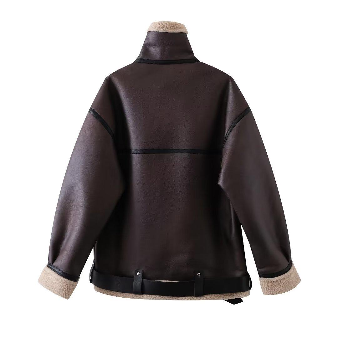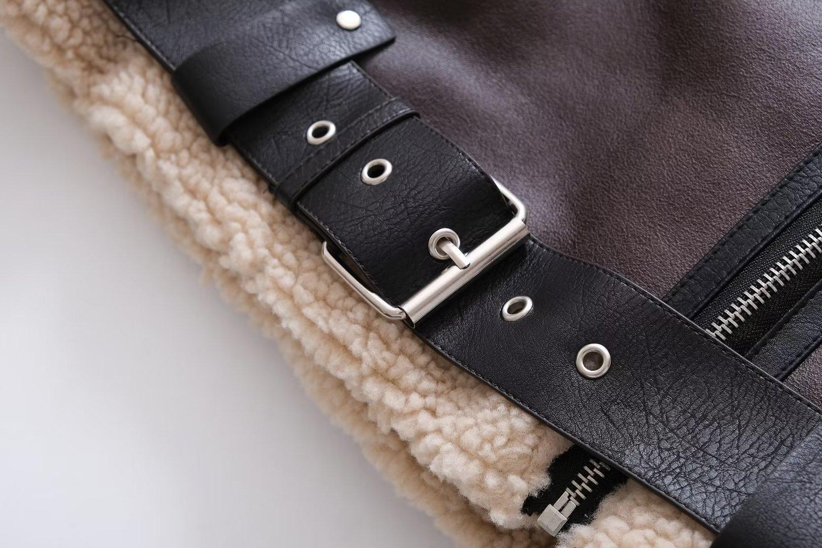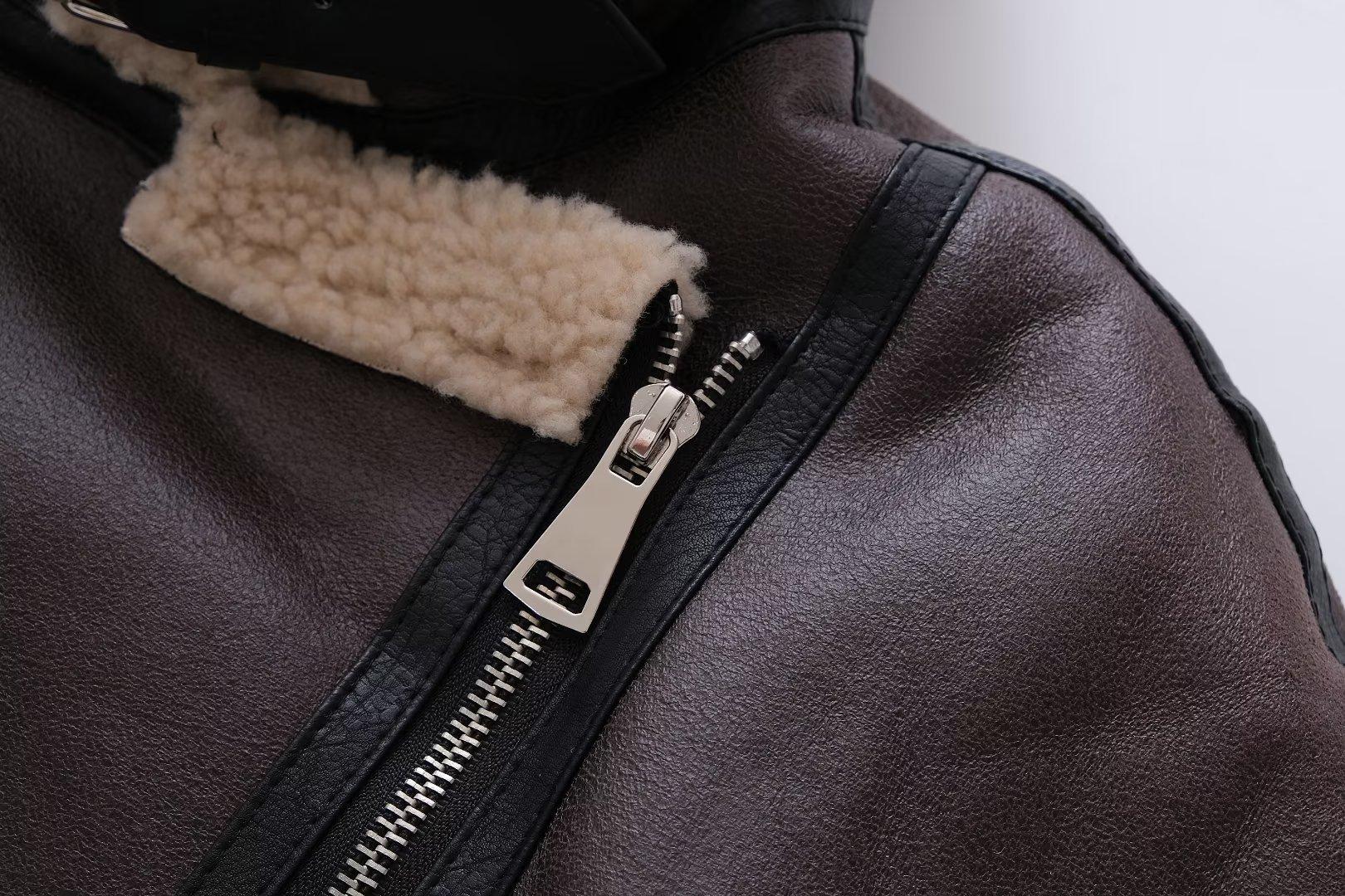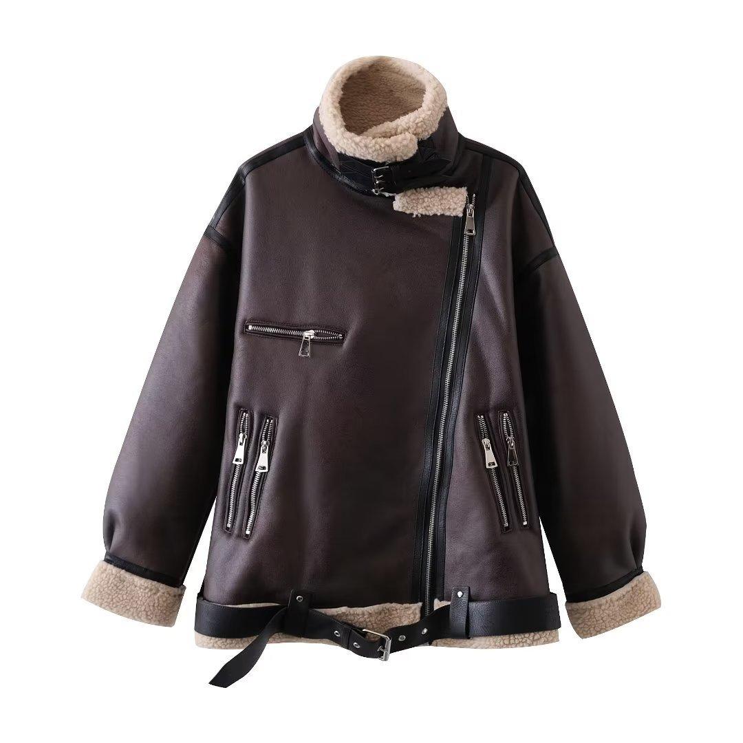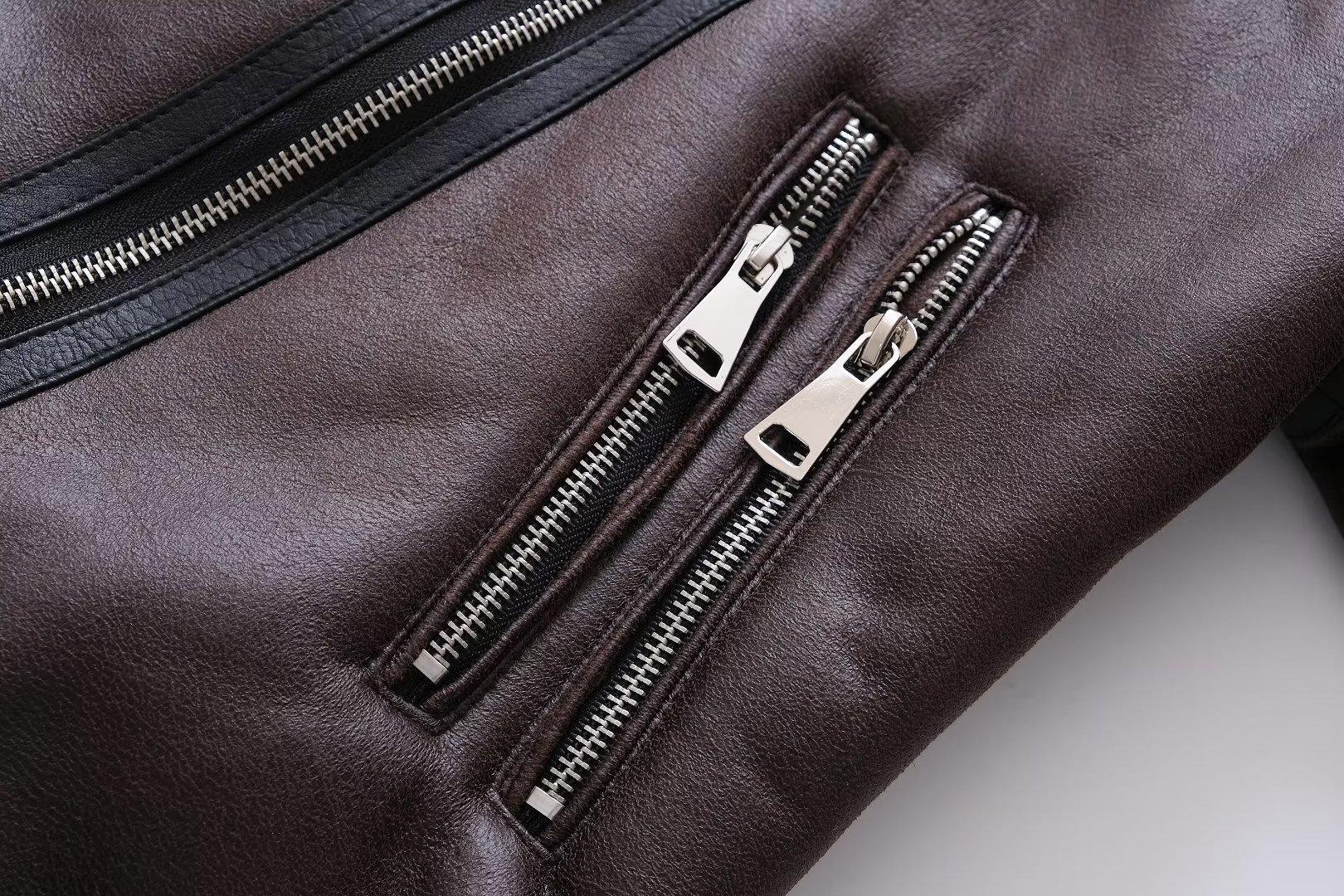 ZR Comercio Exterior Estilo Europeo y Americano para Mujer Chaqueta Francesa de Piel Multicremallera Combinable Manga Larga