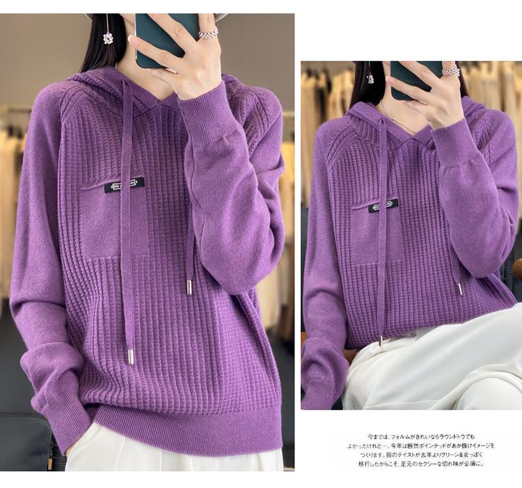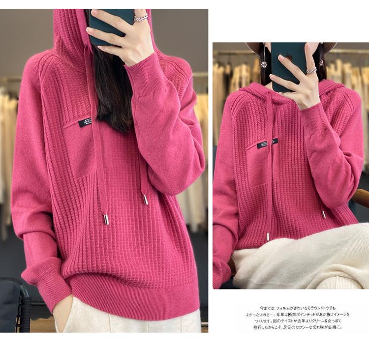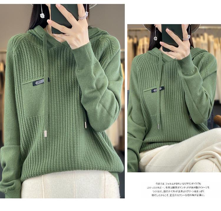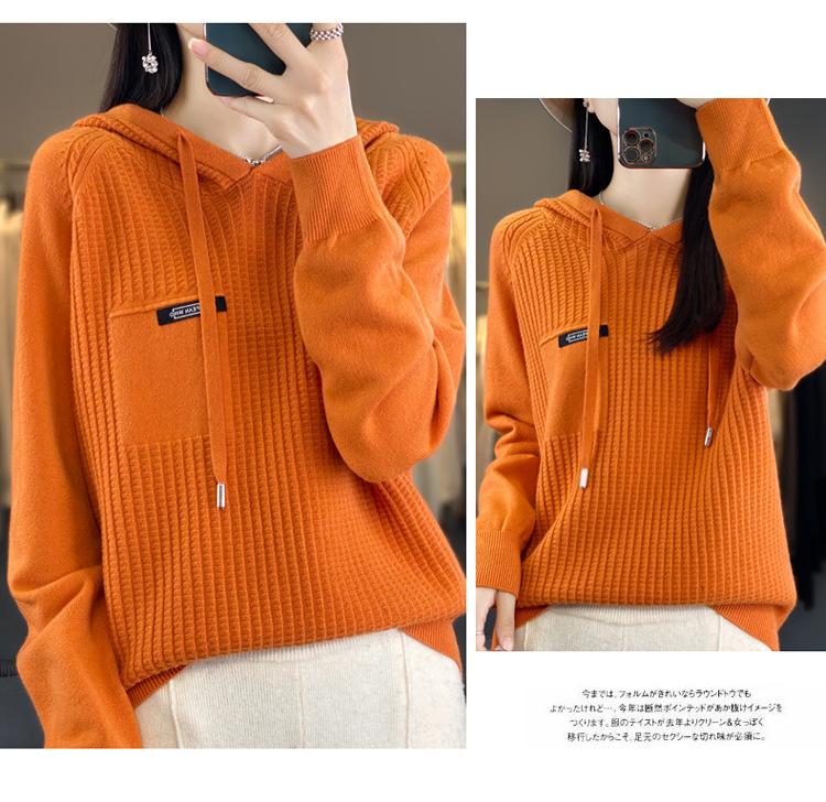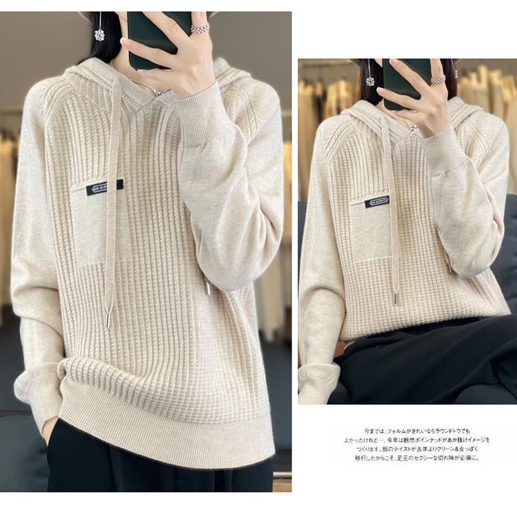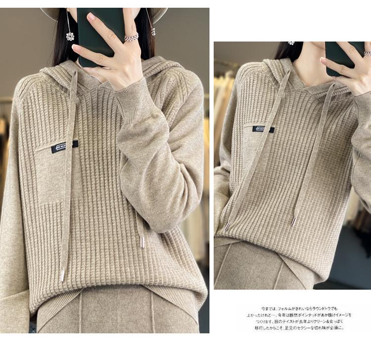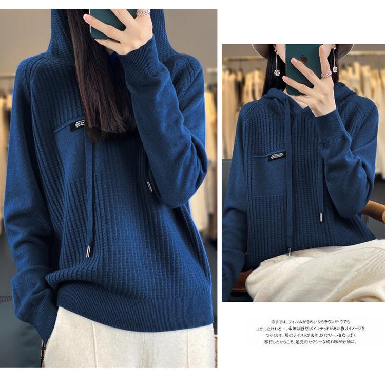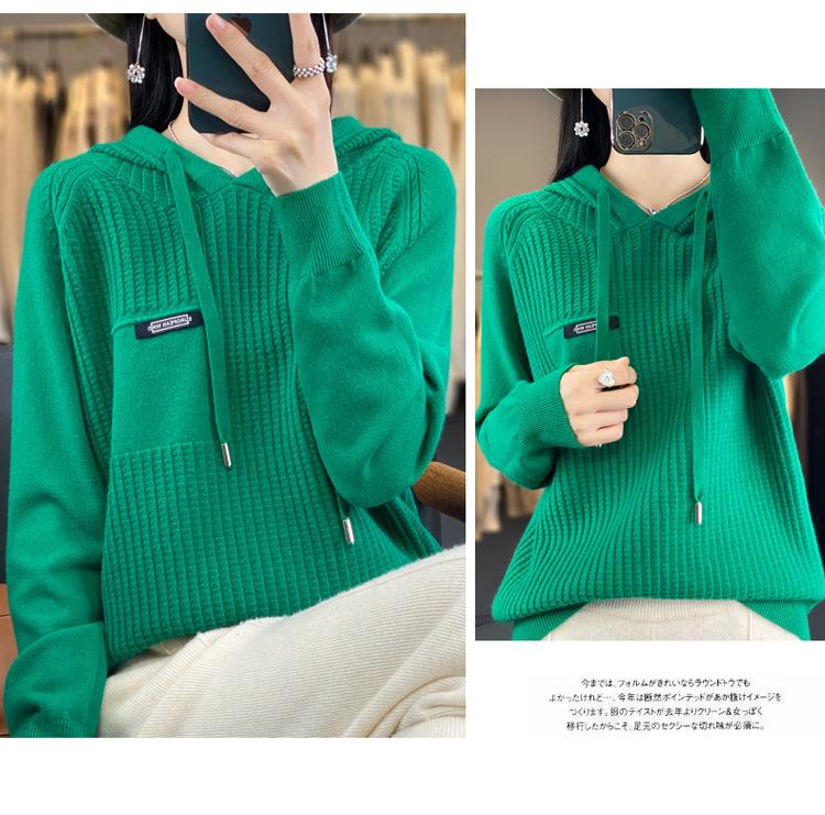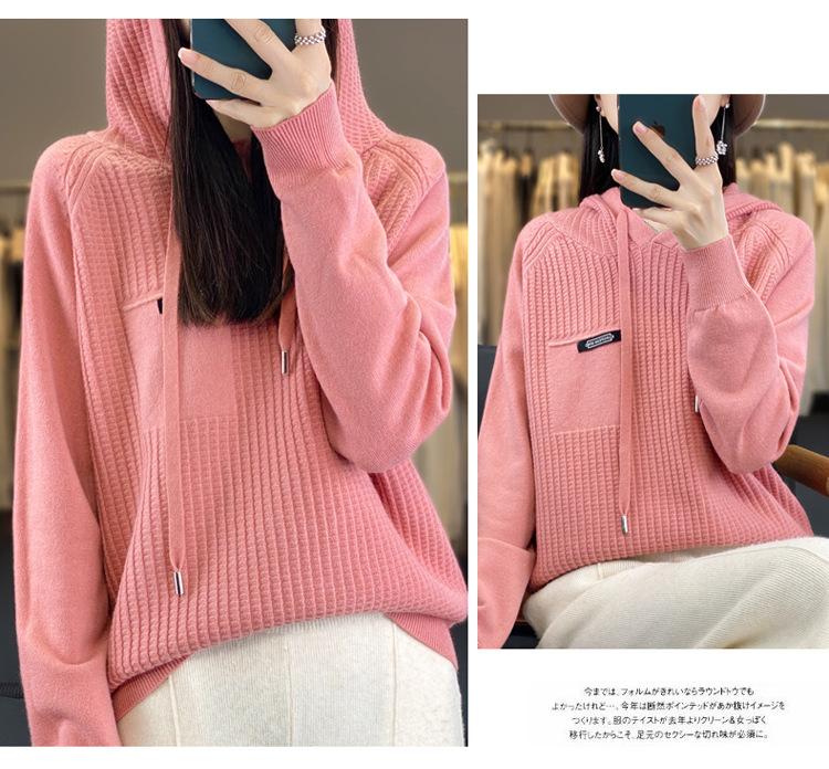Suéter con capucha para mujer, otoño e invierno 2023, nuevo suéter de punto suelto de estilo coreano, top de punto de moda