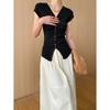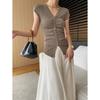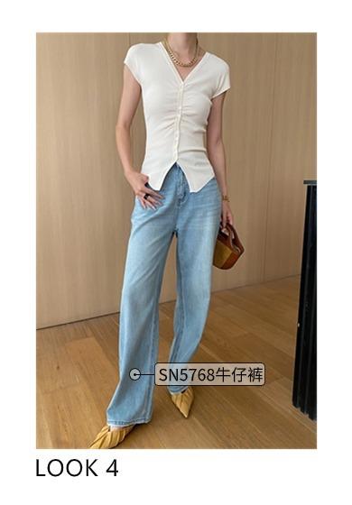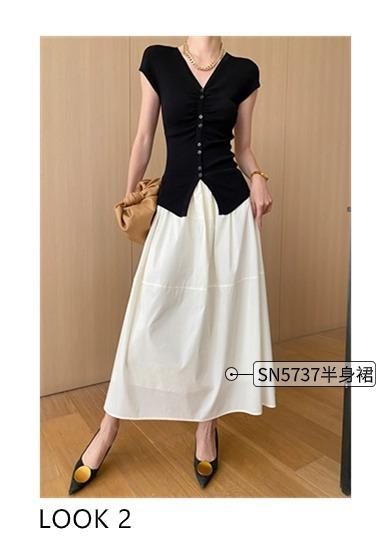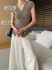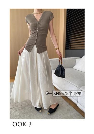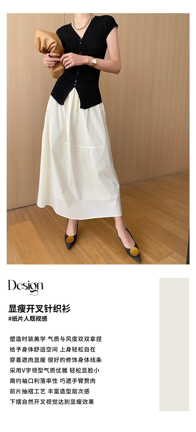 Suéter de punto Sinan de 14 puntos Eteri con cuentas, plisado francés moderno con cuello en V, ajustado con abertura SN5899