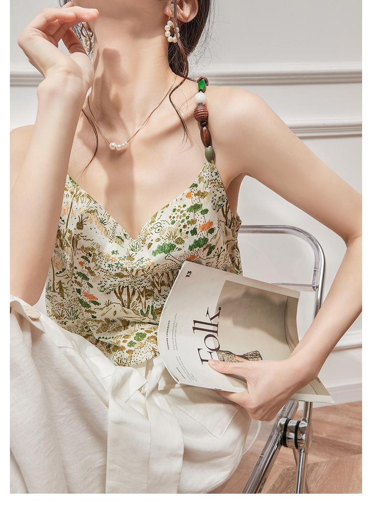 Camisola estilo coreano vintage estilo francés diseño Hepburn nicho sin mangas top verano mujer estampado floral
