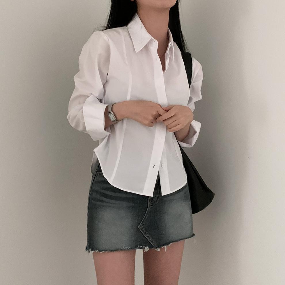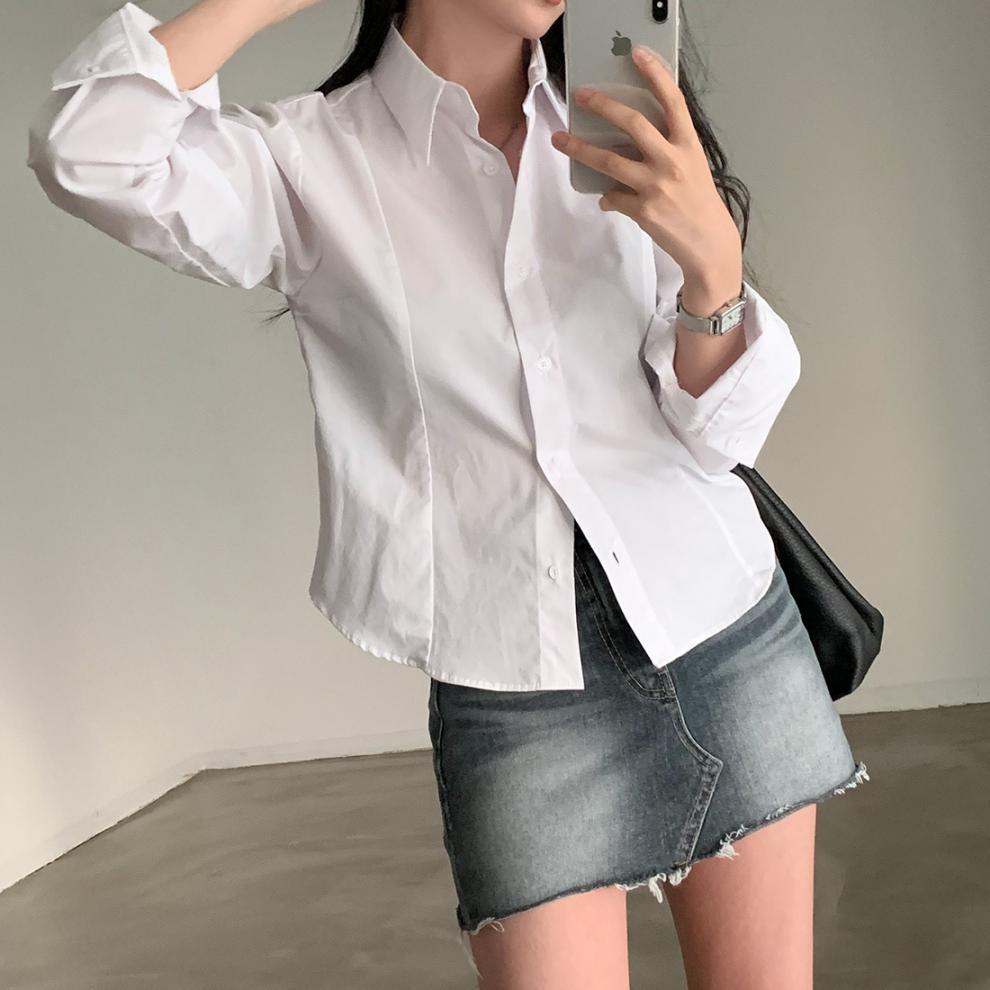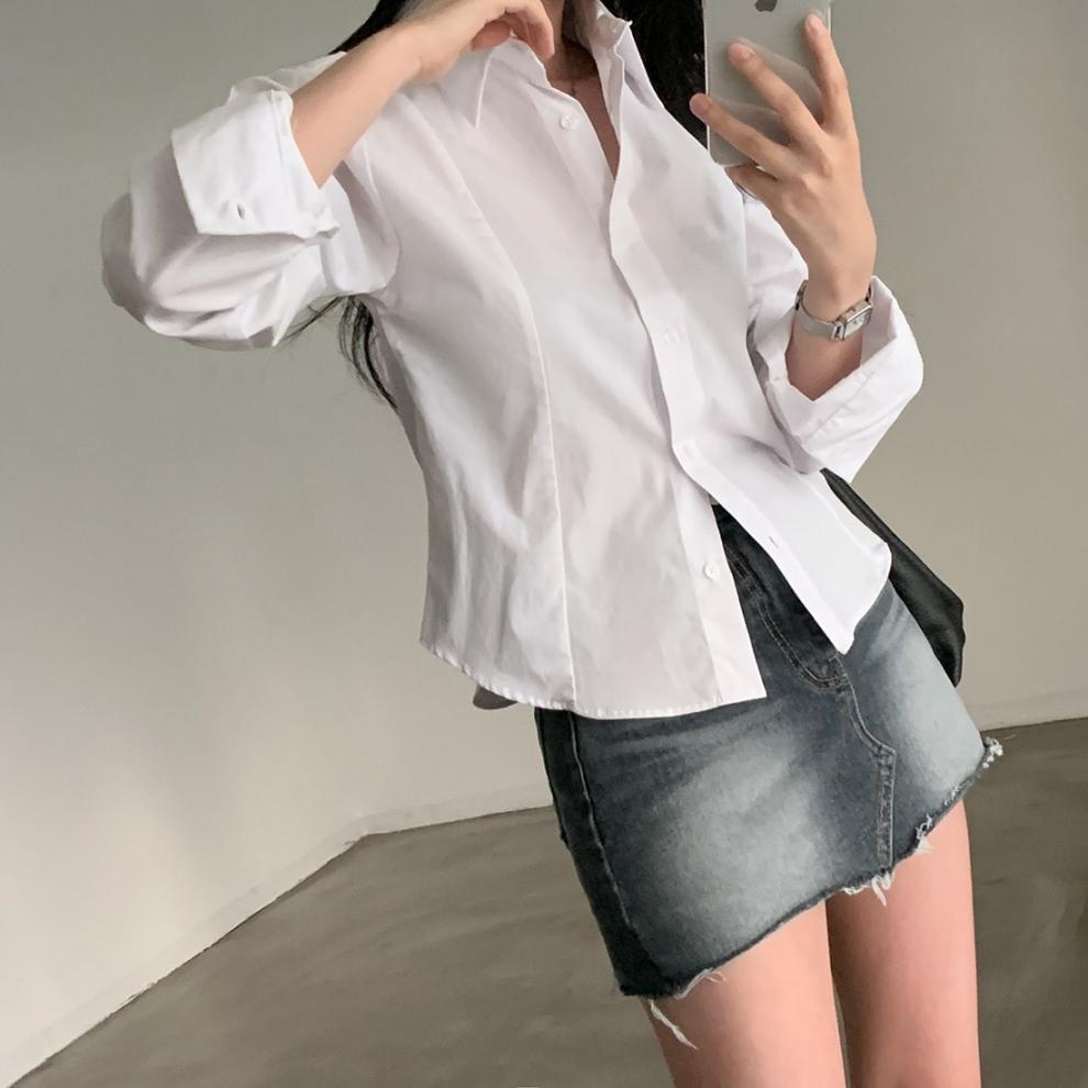 Camisa blanca de manga larga para mujer, diseño coreano Ins Sense, parte superior interior ajustada, de principios de primavera