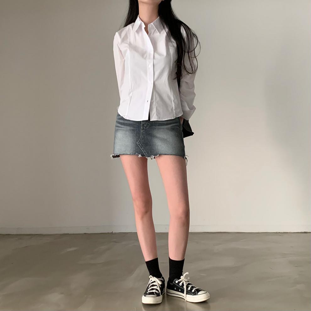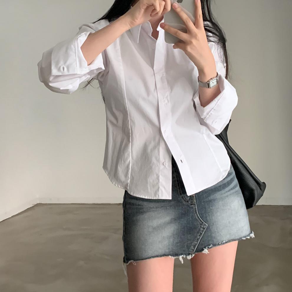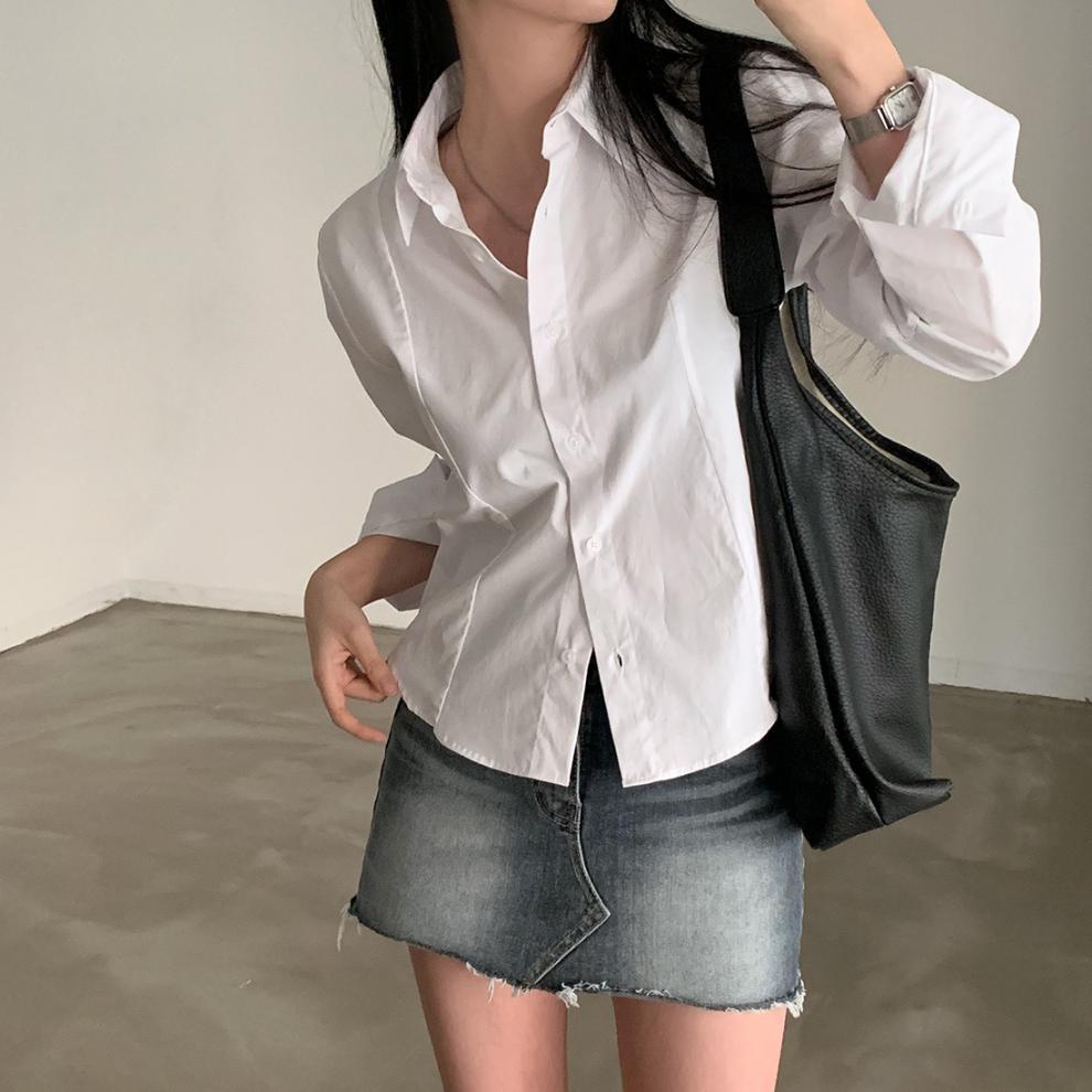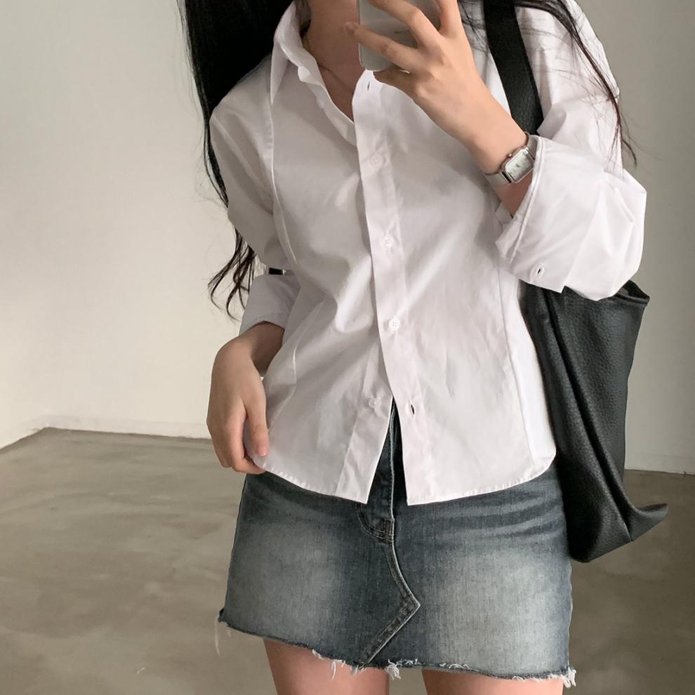 Camisa blanca de manga larga para mujer, diseño coreano Ins Sense, parte superior interior ajustada, de principios de primavera