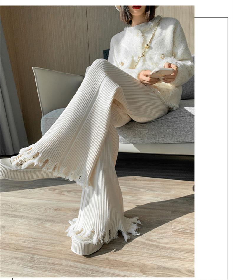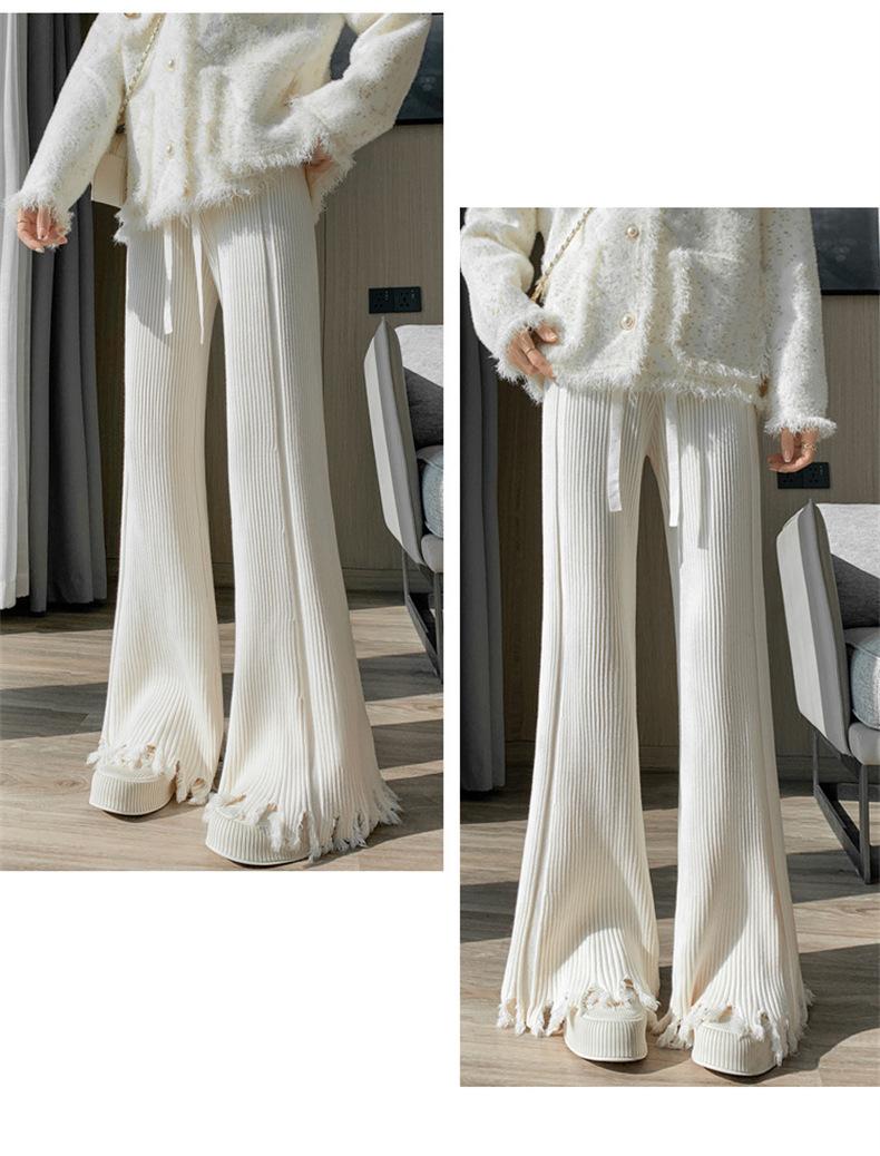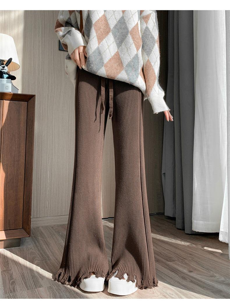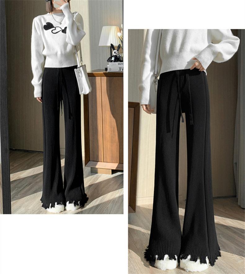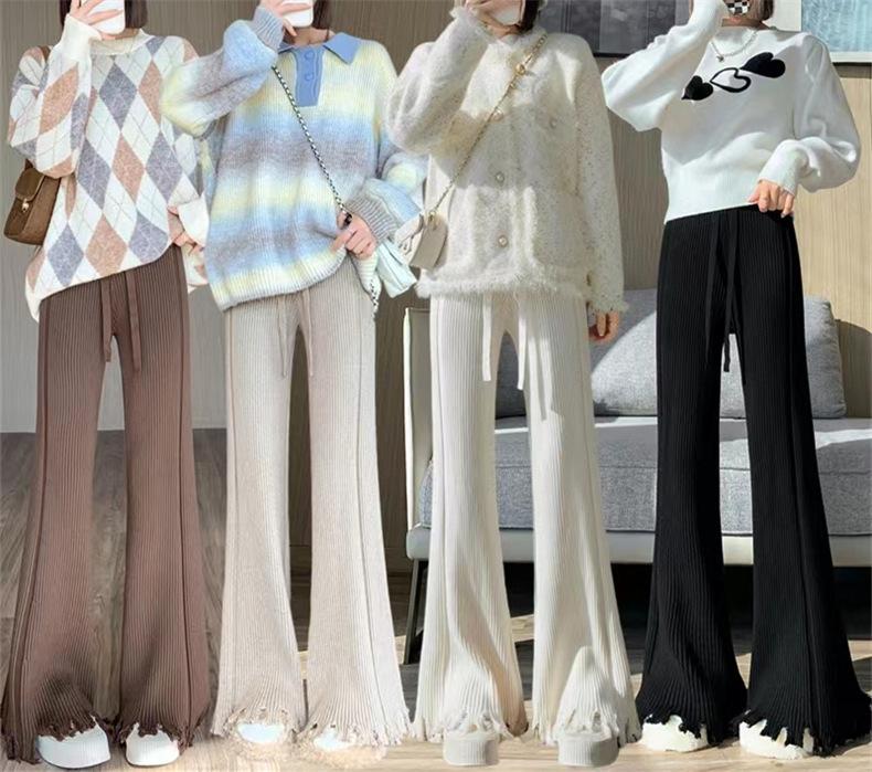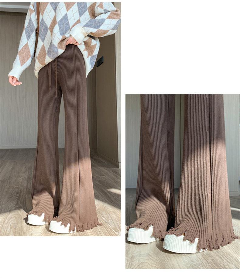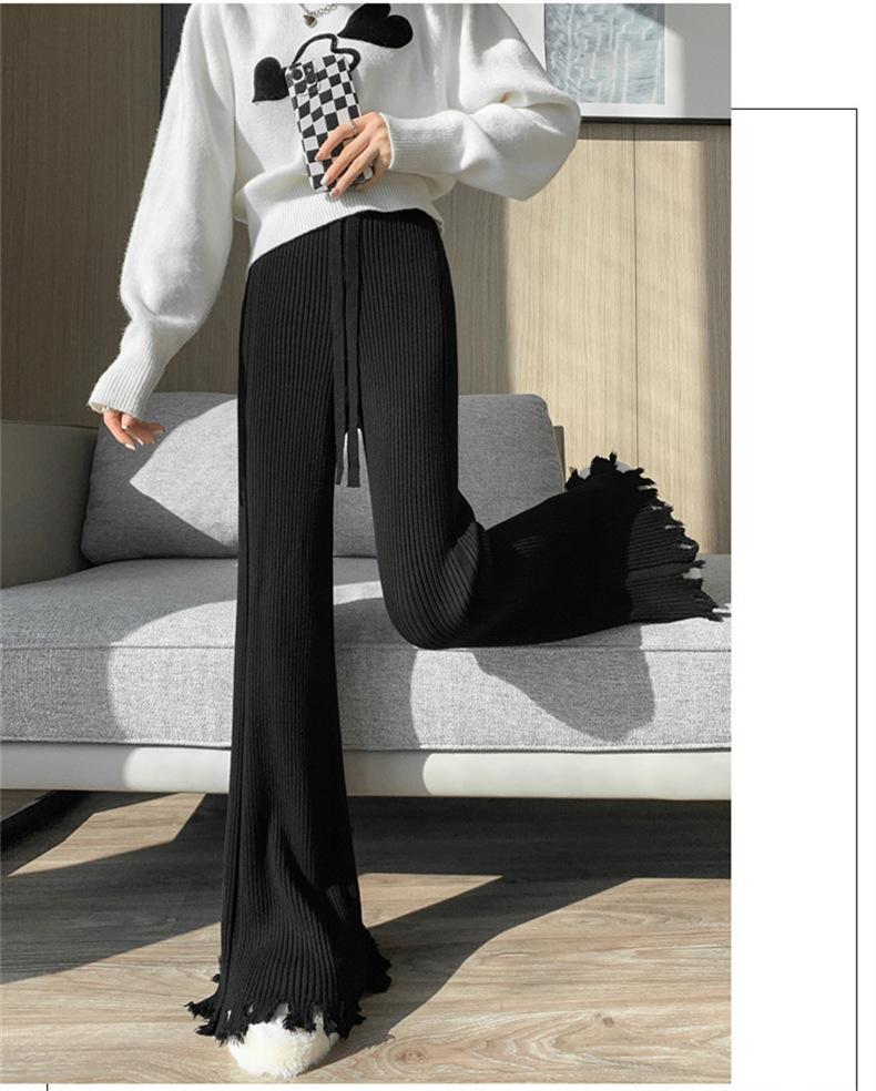 Pantalones de mujer informales de punto de color sólido con borlas sueltas de moda de otoño 2024 de estilo coreano, cintura alta, adelgazantes, moda femenina