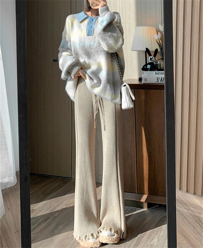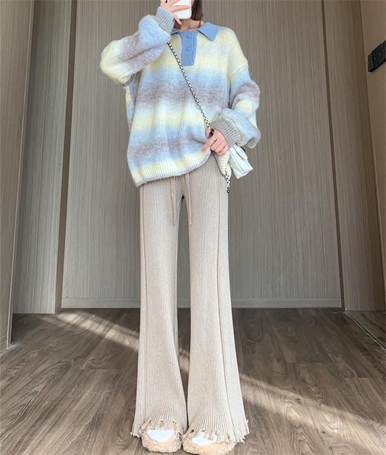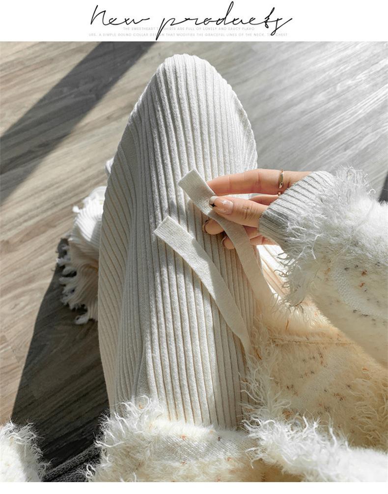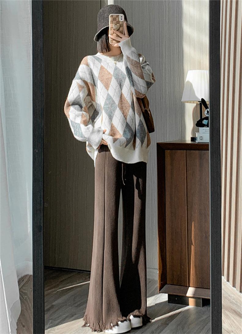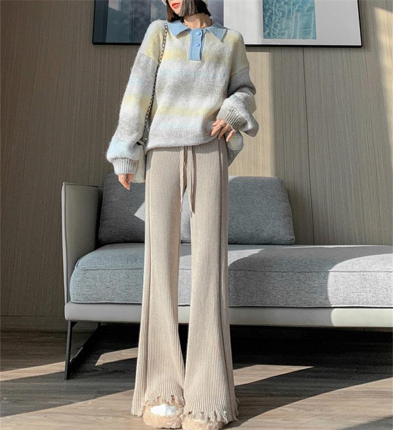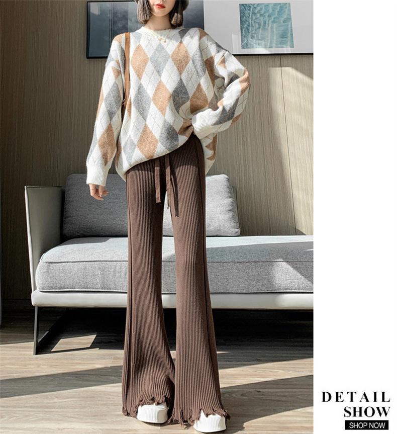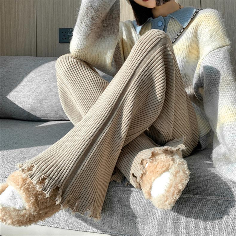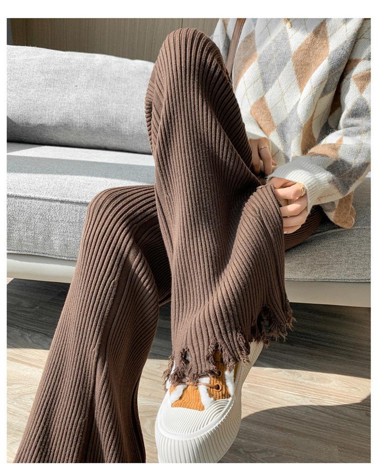 Pantalones de mujer informales de punto de color sólido con borlas sueltas de moda de otoño 2024 de estilo coreano, cintura alta, adelgazantes, moda femenina
