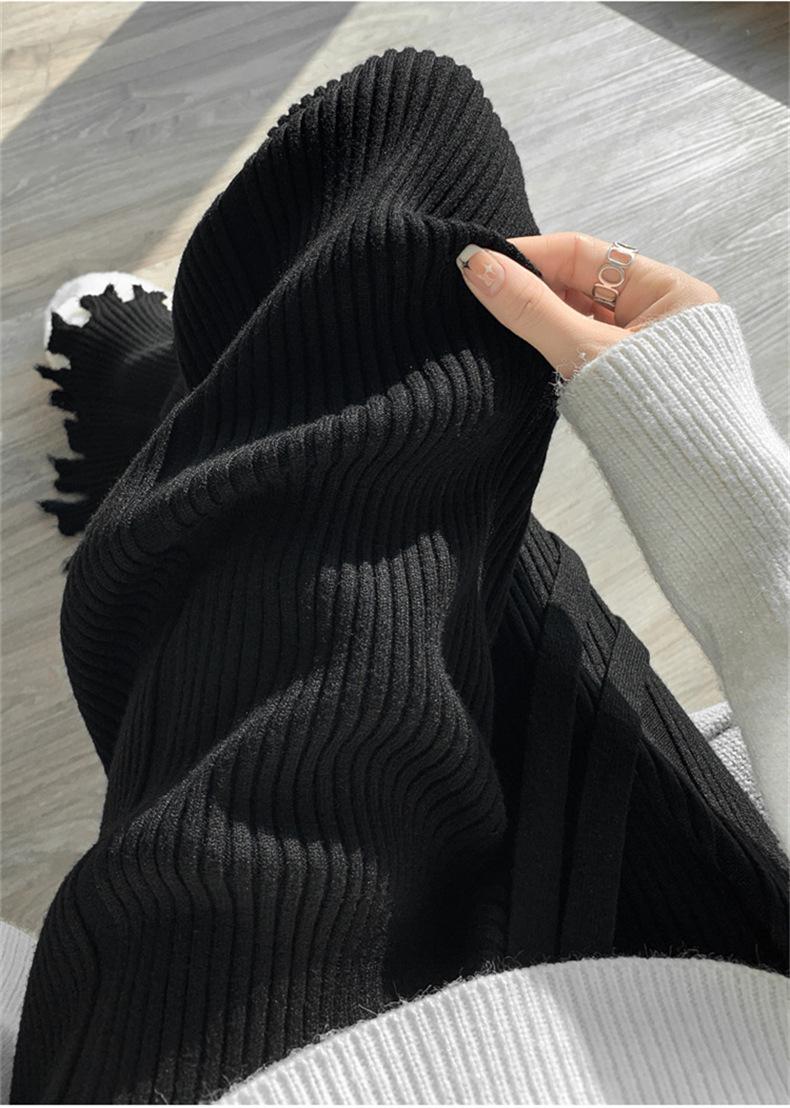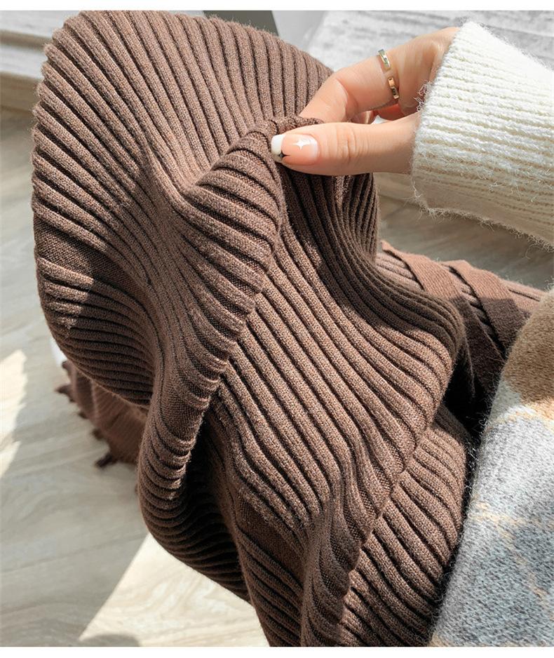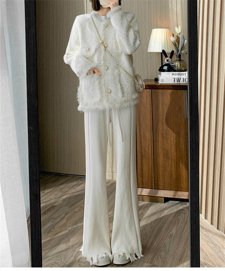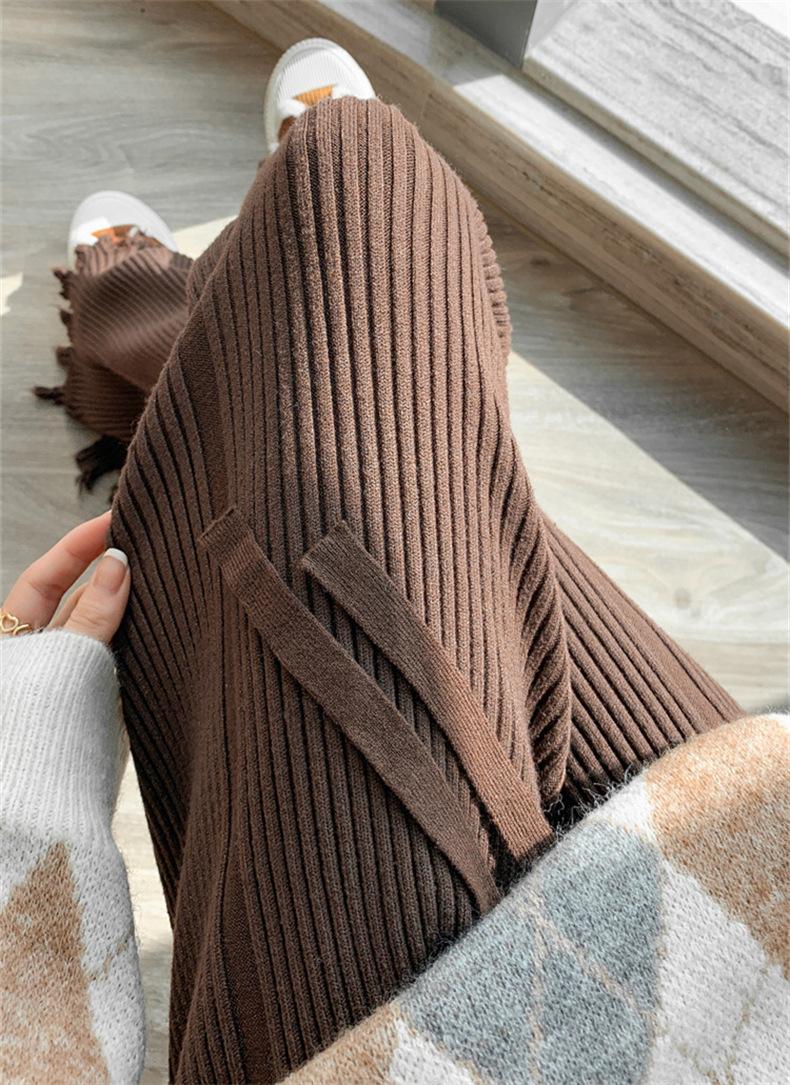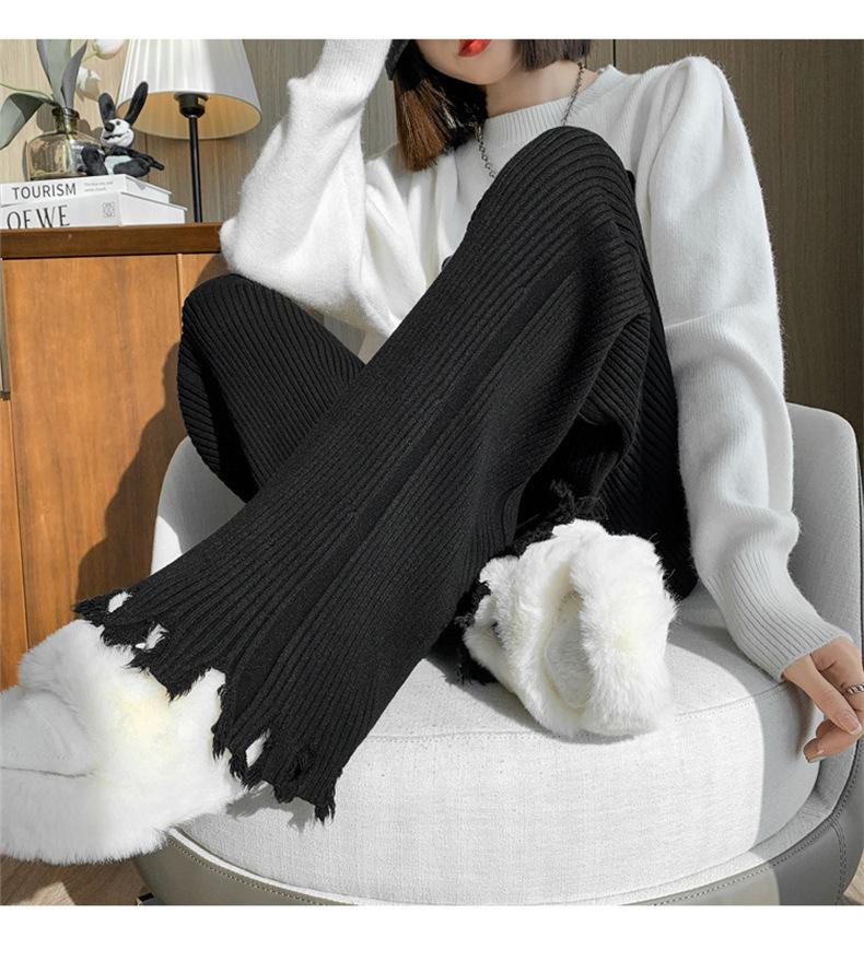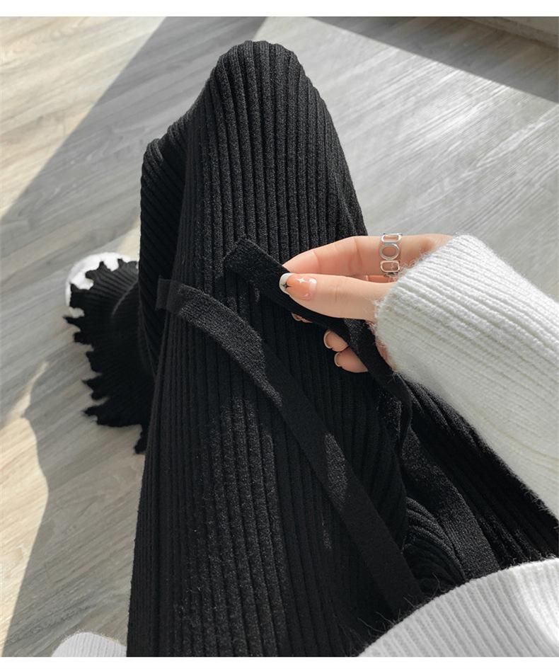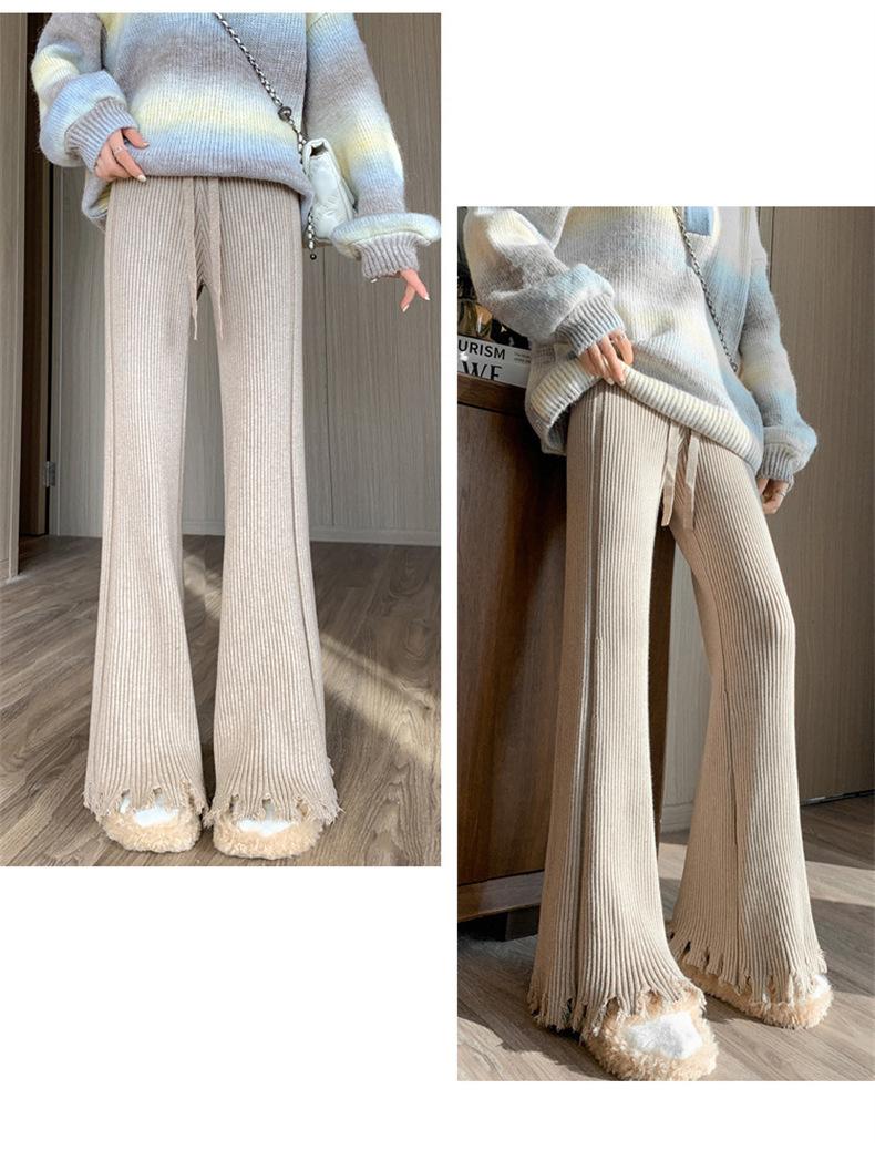 Pantalones de mujer informales de punto de color sólido con borlas sueltas de moda de otoño 2024 de estilo coreano, cintura alta, adelgazantes, moda femenina