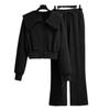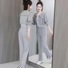 2023 nuevo suéter de chaqueta de manga larga pantalones de pierna ancha de cintura alta moda deportiva casual traje de dos piezas femenino tendencia ins