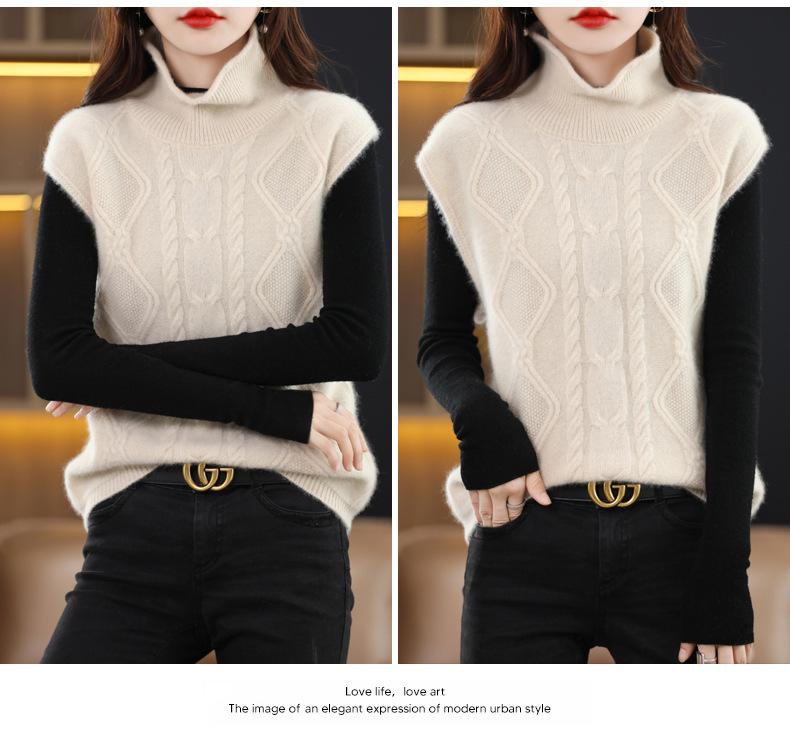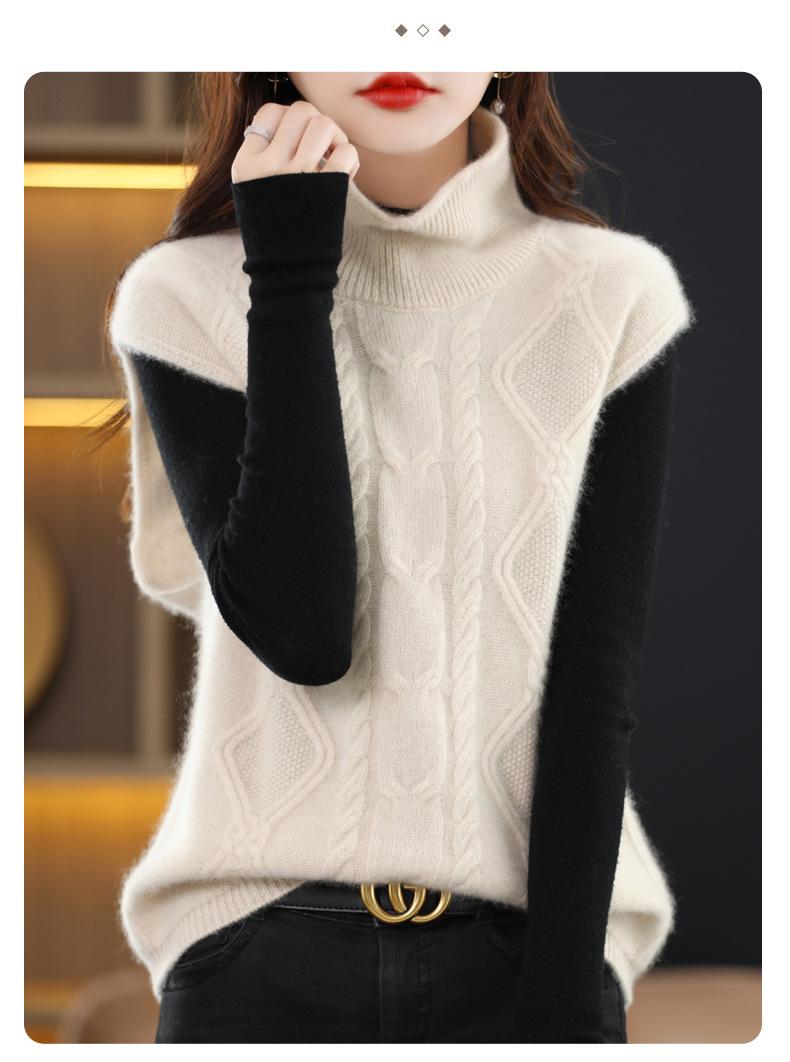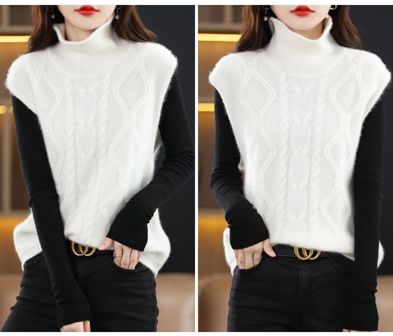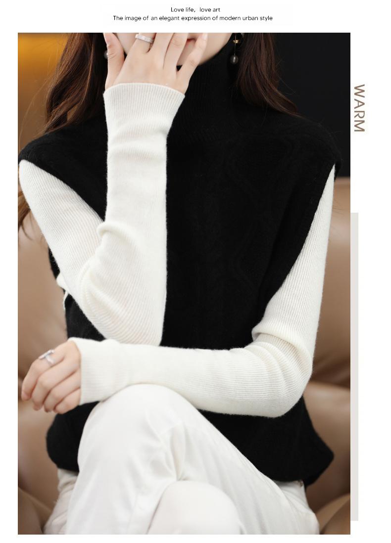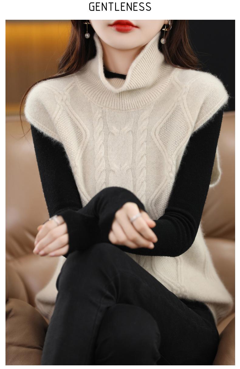 Chaleco de otoño e invierno para mujer, jersey de cuello alto medio, suéter holgado de punto apilado, top de moda informal