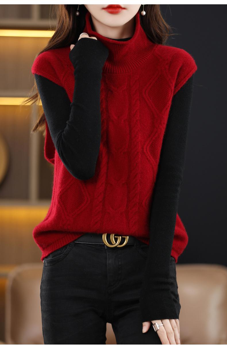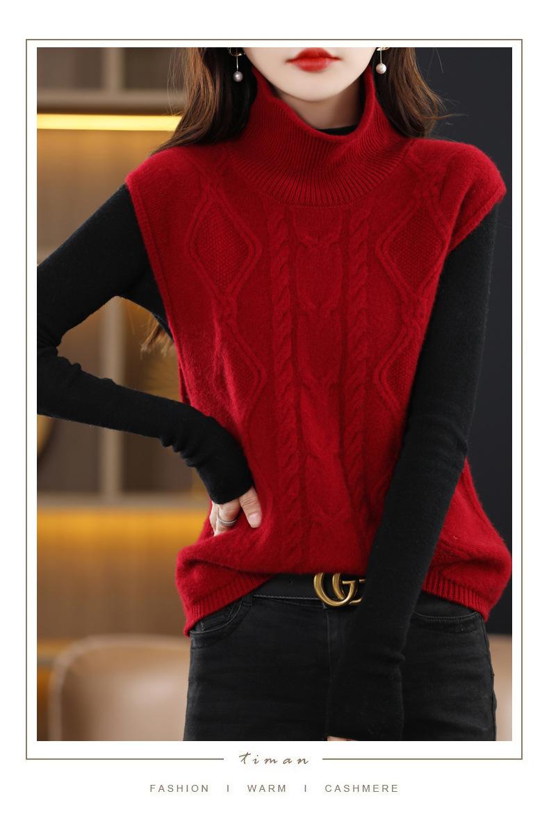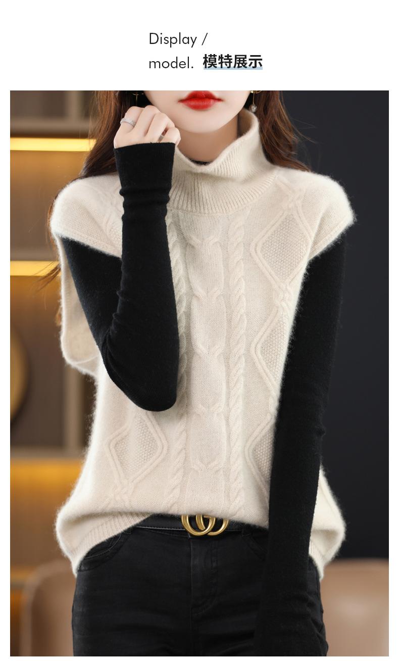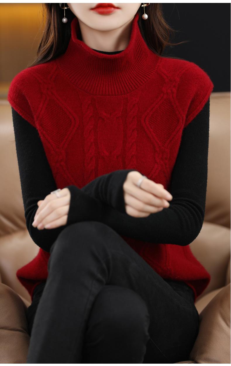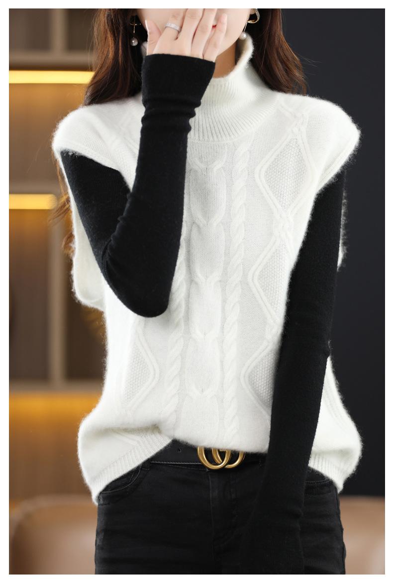 Chaleco de otoño e invierno para mujer, jersey de cuello alto medio, suéter holgado de punto apilado, top de moda informal