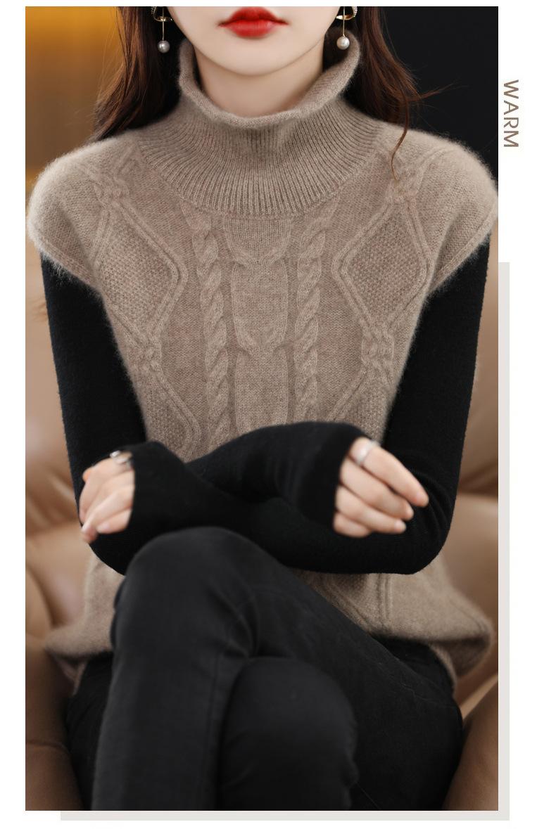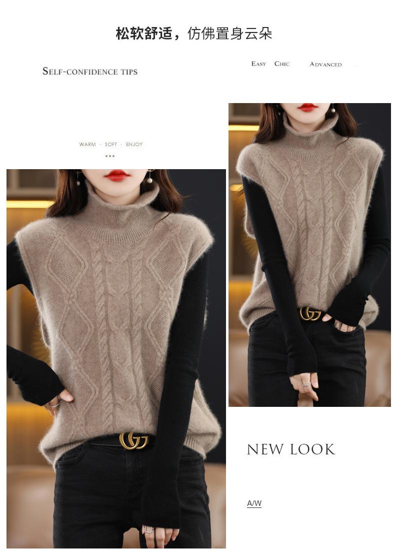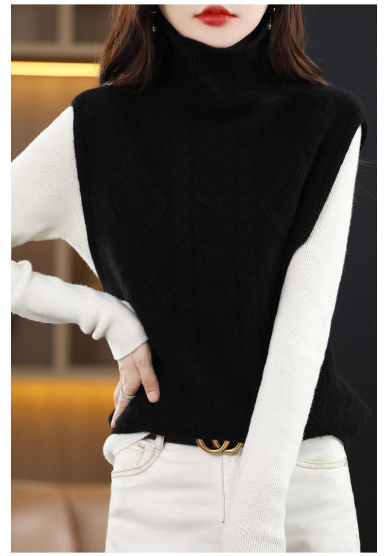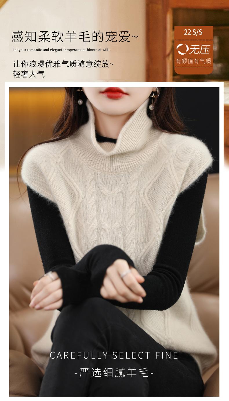 Chaleco de otoño e invierno para mujer, jersey de cuello alto medio, suéter holgado de punto apilado, top de moda informal