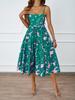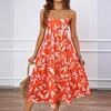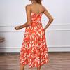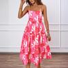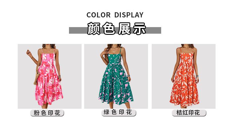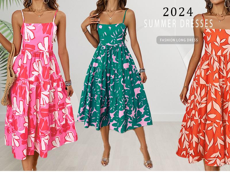 Verano 2024 Nuevo Amazon Ropa Europea y Americana Elegante Vestido Midi con Tirantes y Estampado Floral