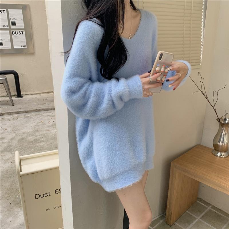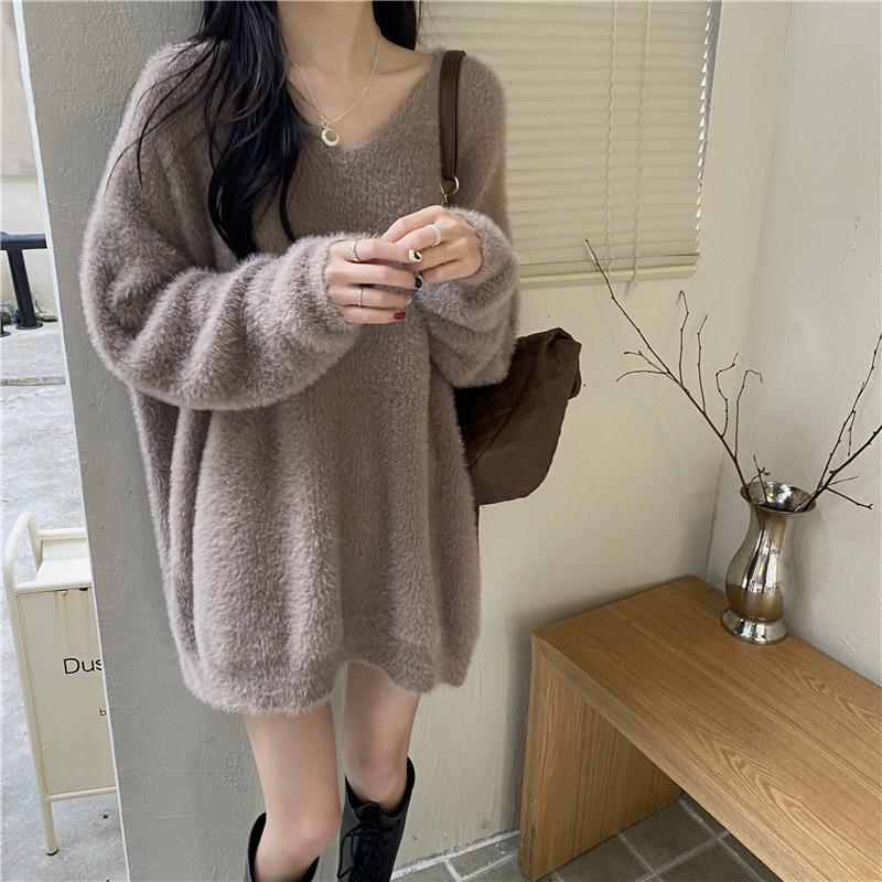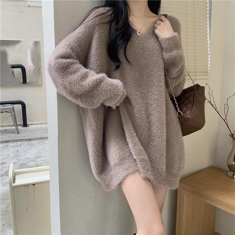Otoño e Invierno 2023 Nuevo Estilo Suave Perezoso Suéter de Mujer Suavísimo Fácil de Combinar Temperamento Adelgazante Top Trendy