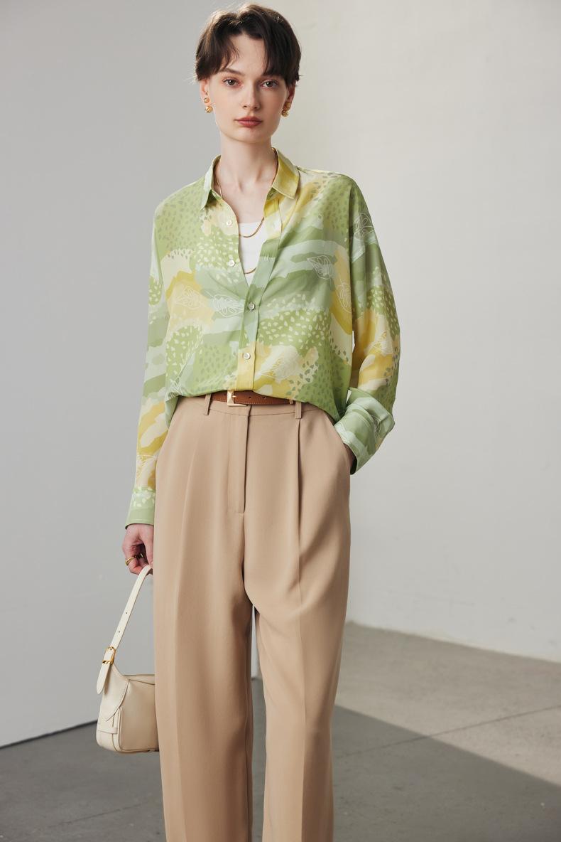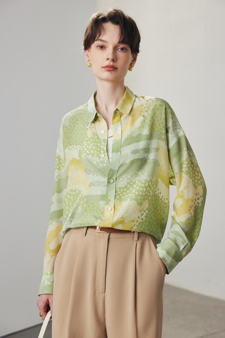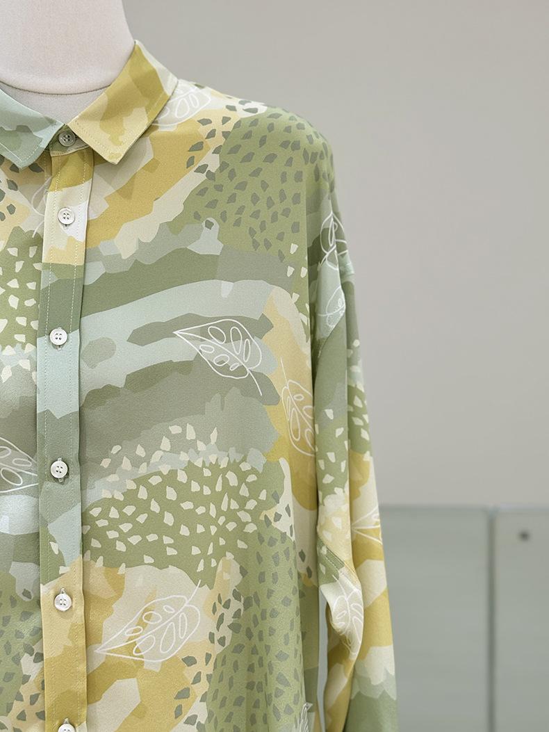 Camisa de Seda para Mujer Primavera y Verano 2025 Nueva Versión Amplia Suelta Crepé de China Estampada 100% Seda de Morera