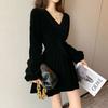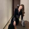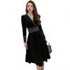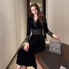 Vestido Negro Corto Estilo Hepburn Retro Francés con Elegante Vestido de Terciopelo con Cordones para Mujer Otoño e Invierno Estilo Largo 4464