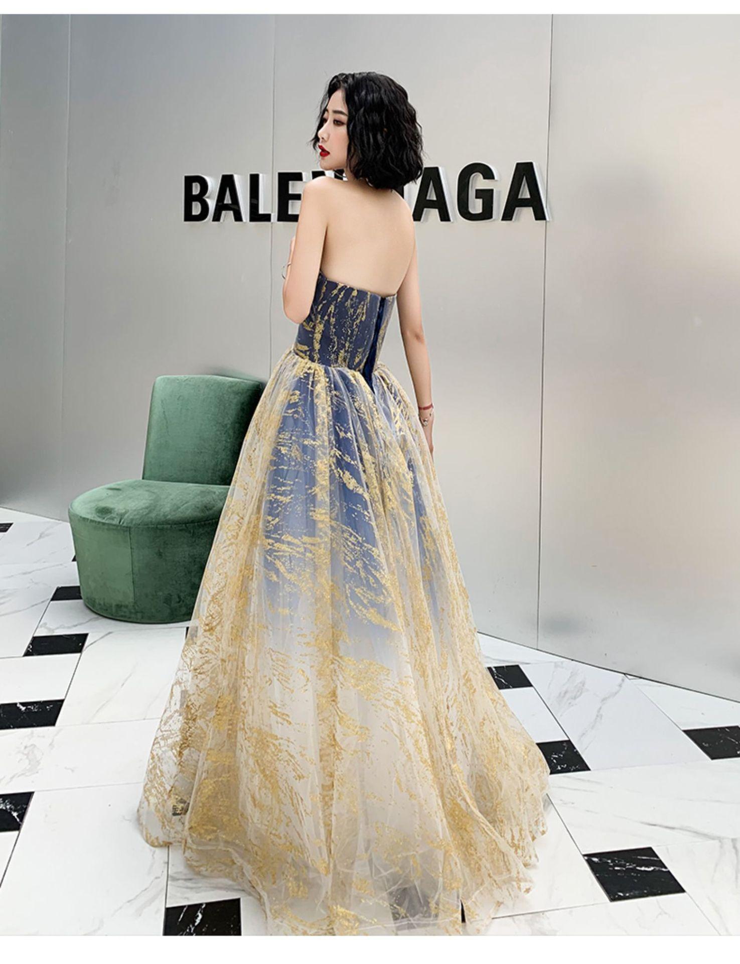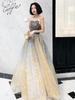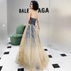 Vestido de Noche 2025 Otoño e Invierno Nuevo Estilo Banquete Noche Strapless Largo Vestido de Anfitrión Adulto Vestido de Actuación Vestido