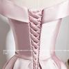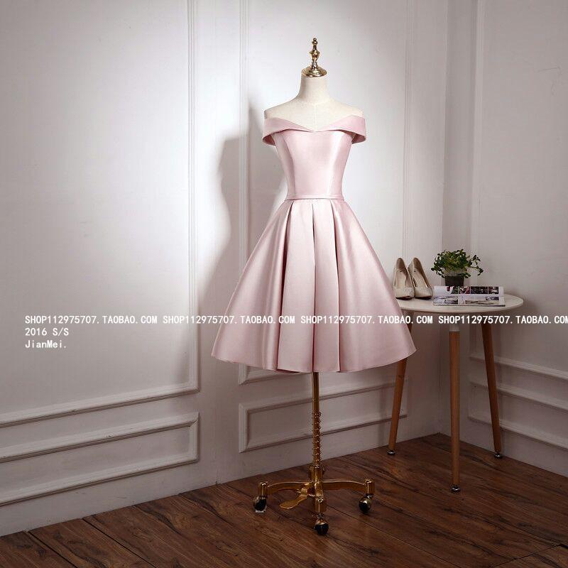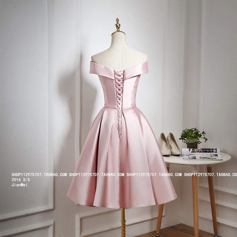 2025 Nuevo Otoño Rosa Hombro Descubierto Ajustado Dama de Honor Hermana Grupo Vestido de Noche Corto Banquete Falda Tutú