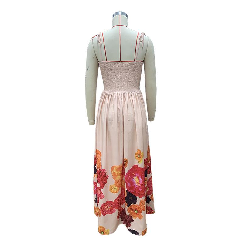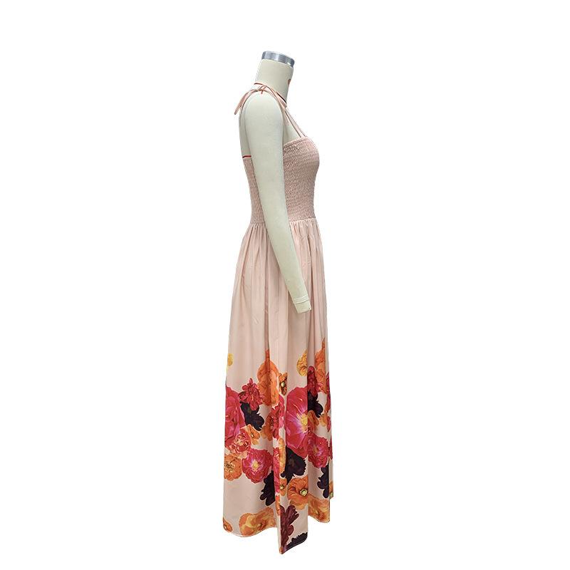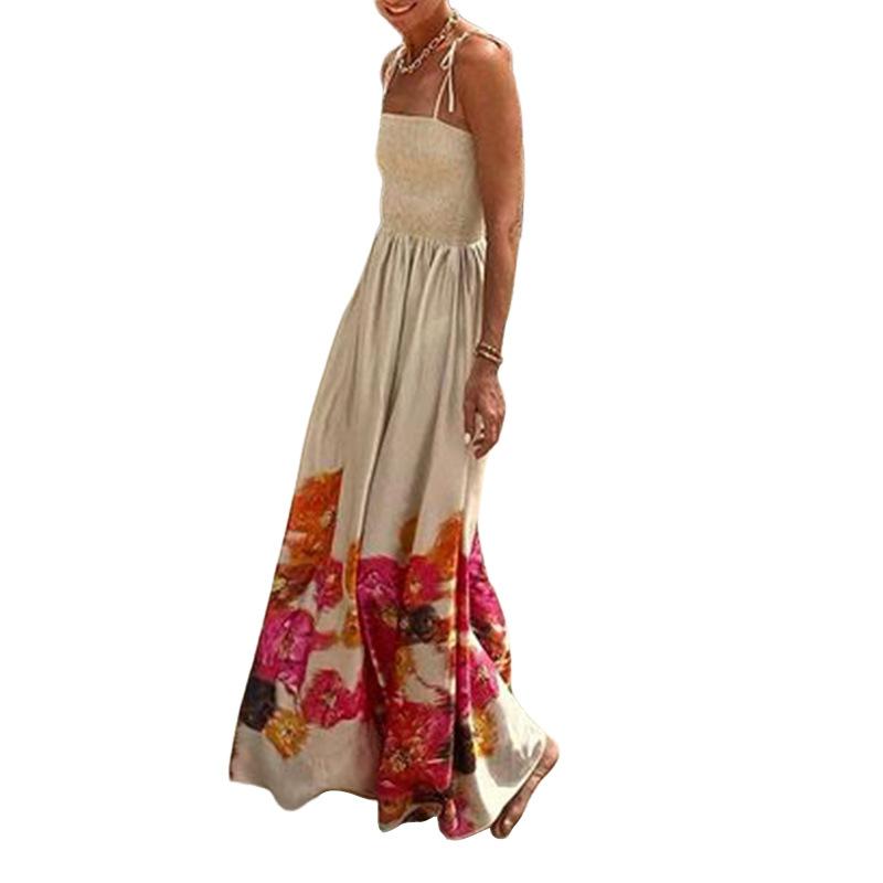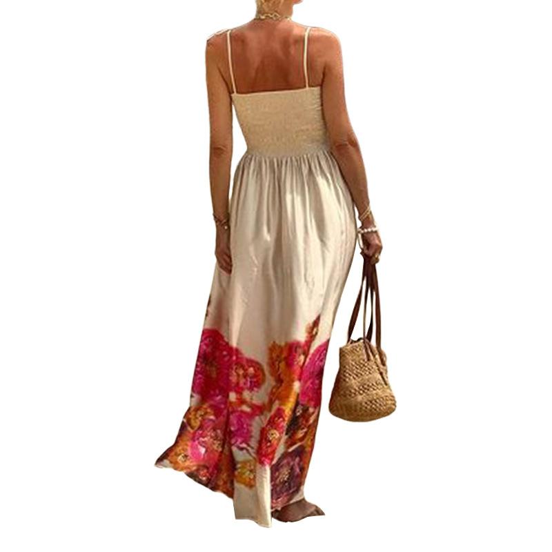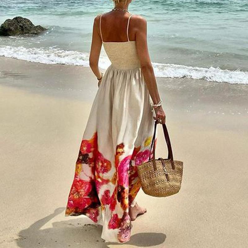 Vestido largo de playa con tirantes y estampado de moda europea y americana para mujer, disponible en stock, verano 2025