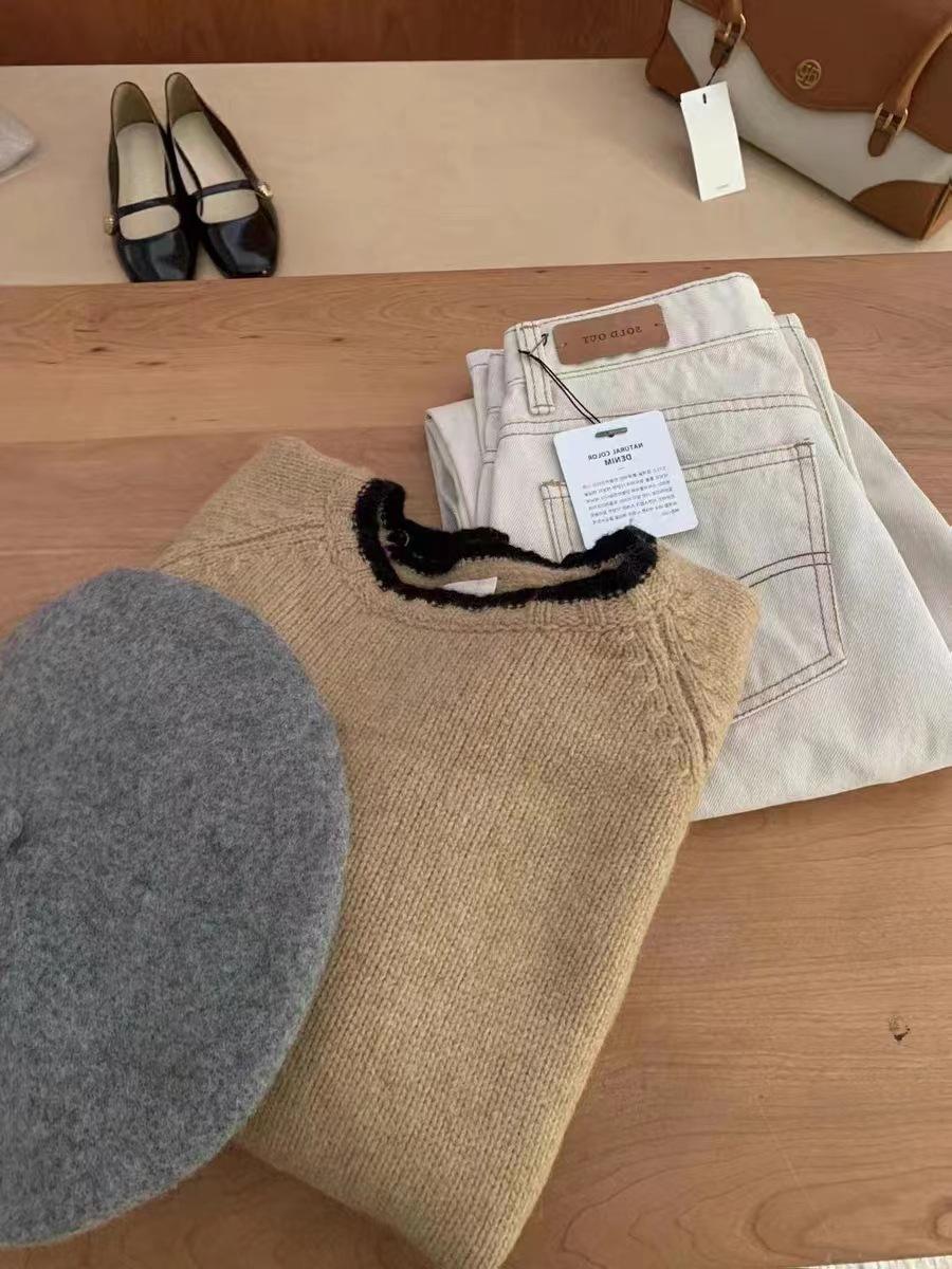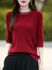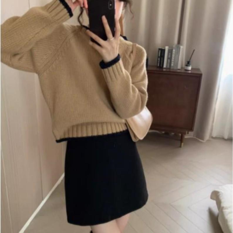 2025 Nuevo Suéter Cuello Redondo Tejido Top Otoño e Invierno Ropa Exterior Corto de Fondo Alto Moda Fondo Tejido para Mujer Trbottomy