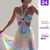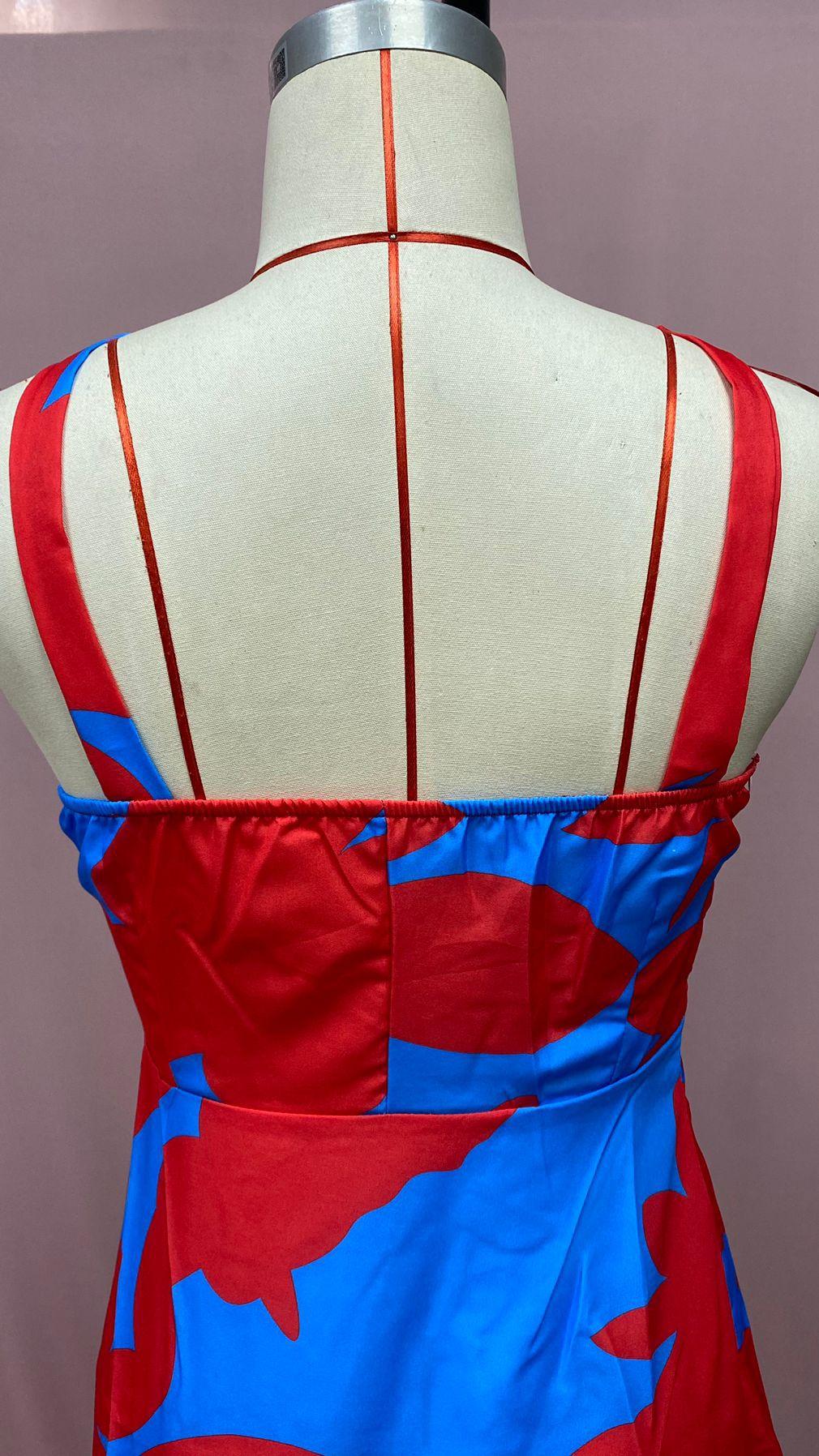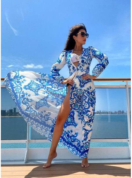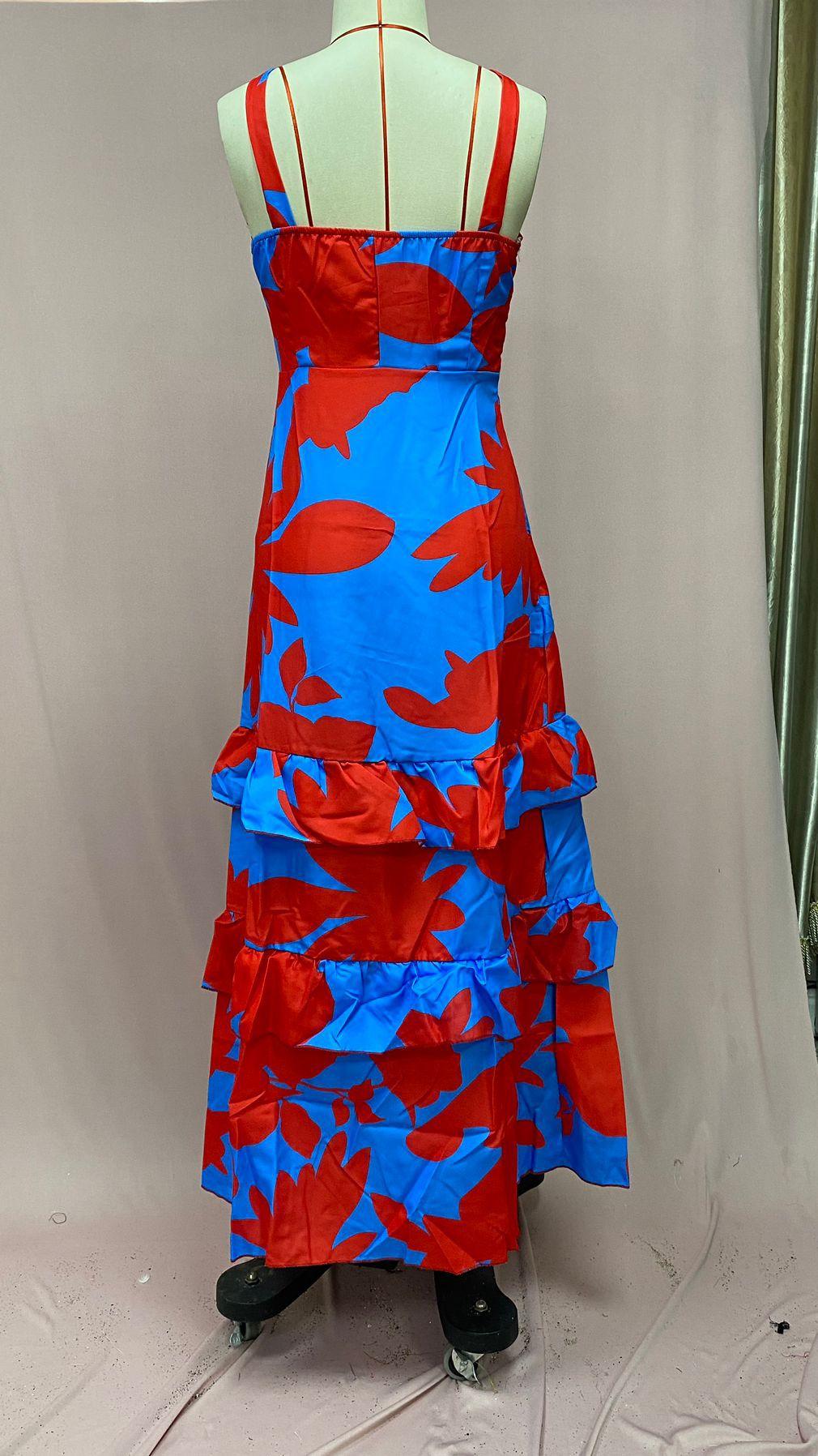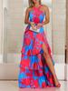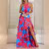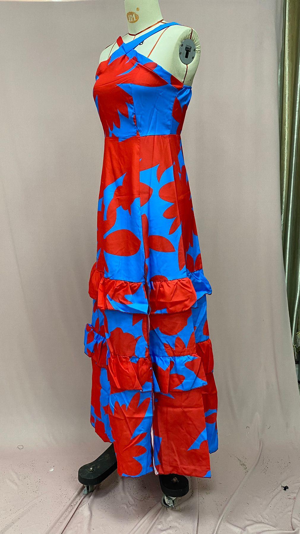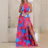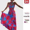 Vestido de Tirantes de Verano Europeo y Americano 2025 Vestido Bohemio Amazon Estampado Cuello en V Sin Mangas Falda Larga para Mujer