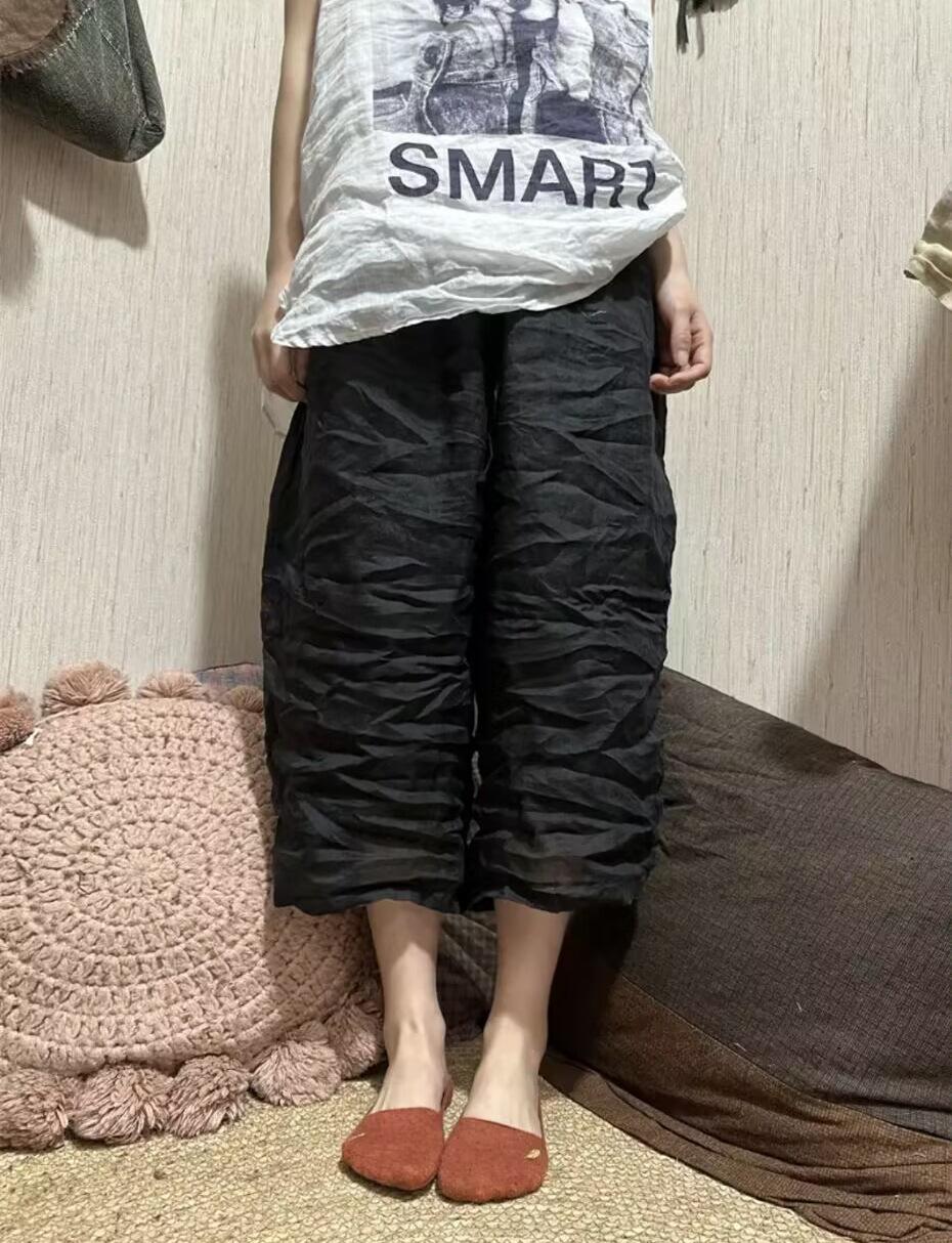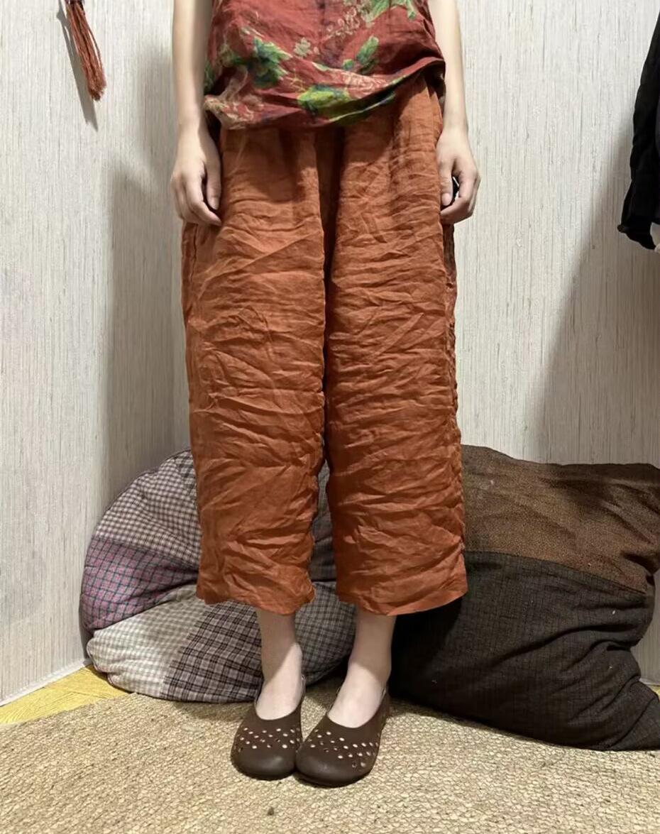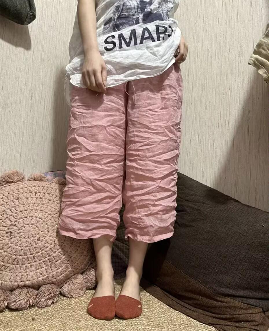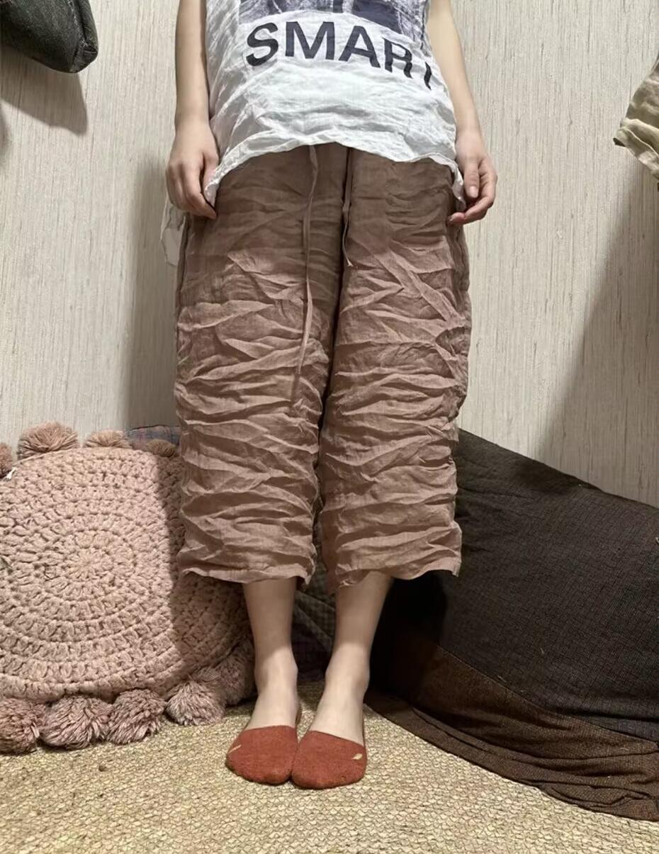 Pantalones rectos de ramio fino de verano 2024, estilo vintage, artísticos, sueltos, adelgazantes, informales, con cordones, de pierna ancha, modernos para mujer