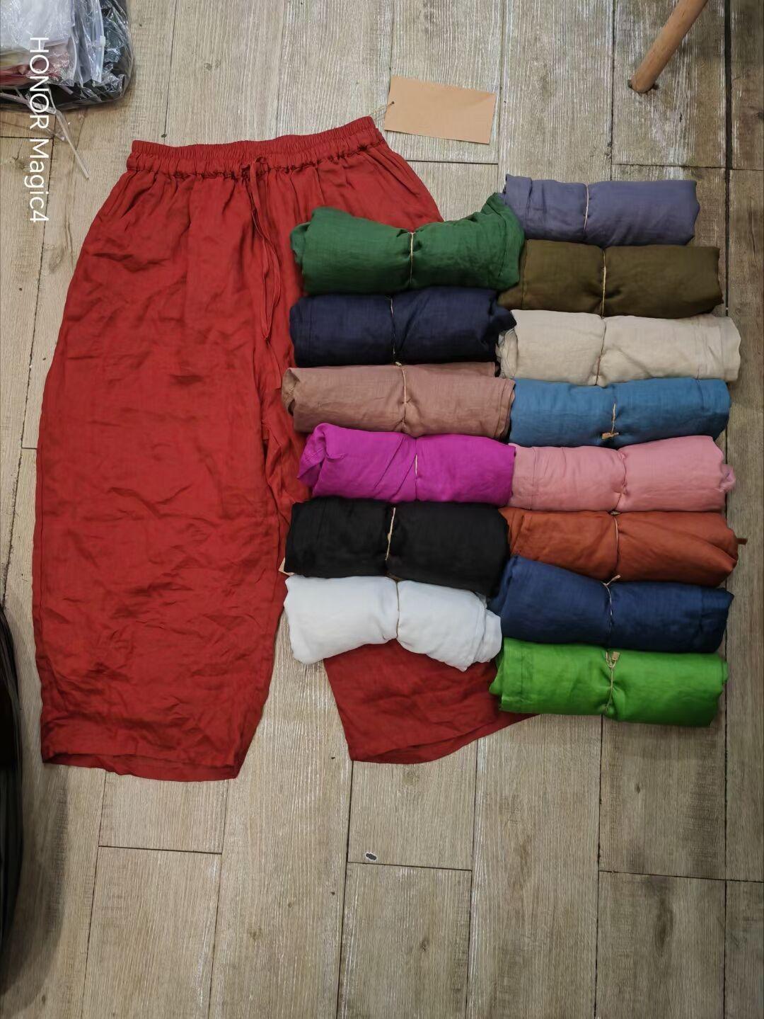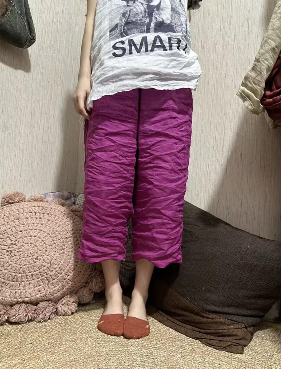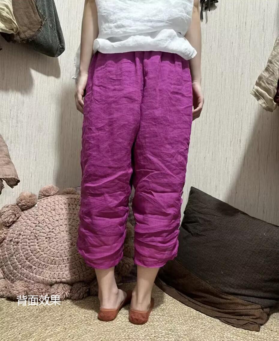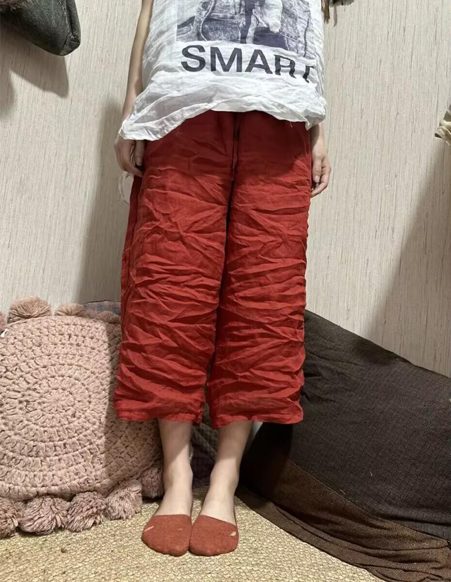 Pantalones rectos de ramio fino de verano 2024, estilo vintage, artísticos, sueltos, adelgazantes, informales, con cordones, de pierna ancha, modernos para mujer