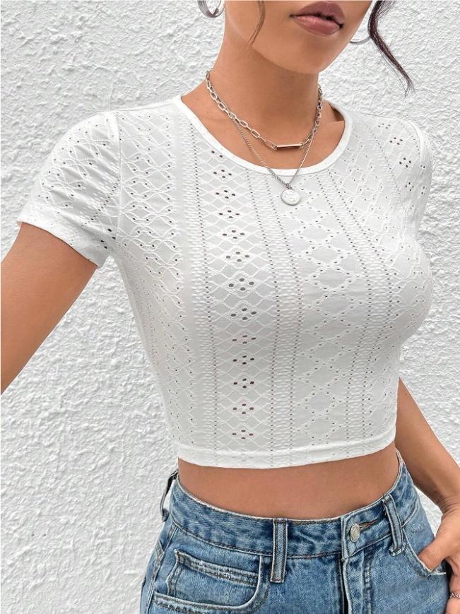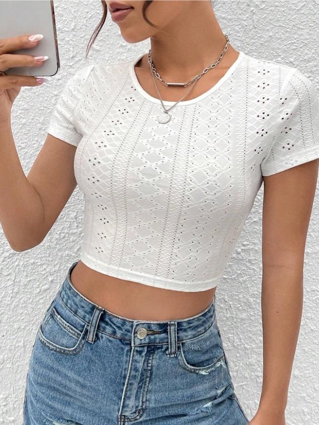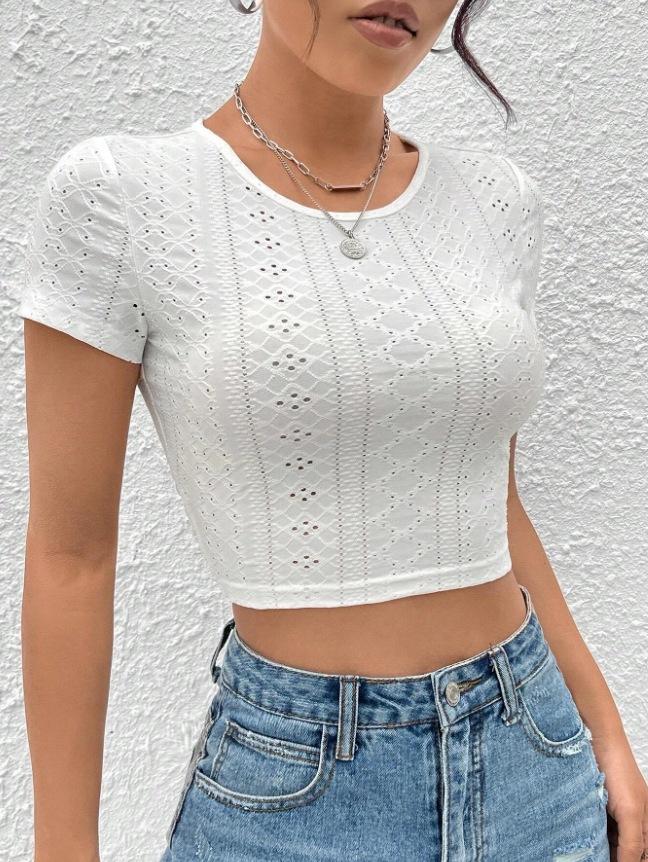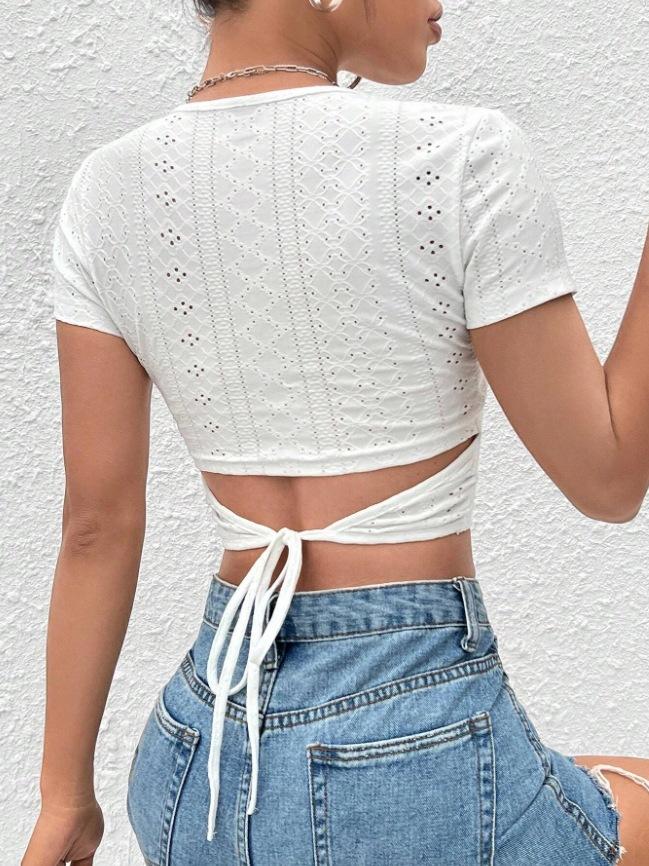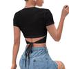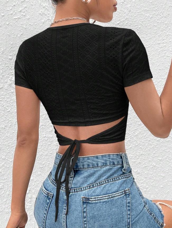 2024 Ropa de mujer europea y americana verano nuevo transfronterizo sexy espalda con cordones corto ombligo ajustado manga corta camiseta superior