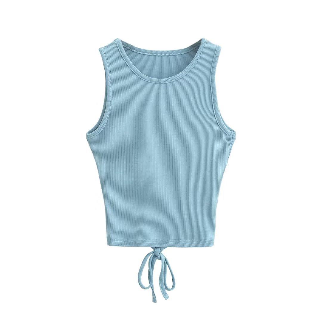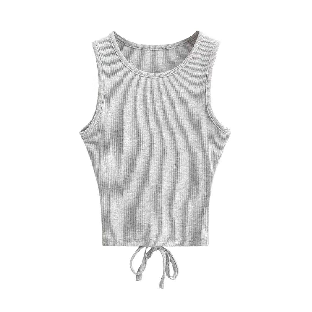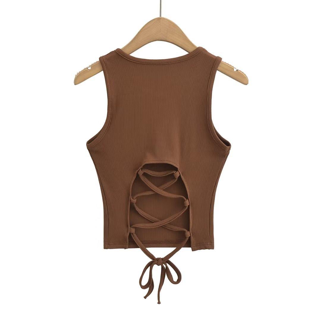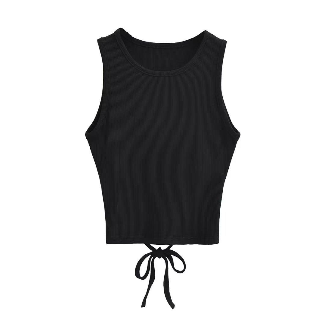 Camiseta sin mangas con cuello redondo y cordones cruzados en la espalda para mujer europea y americana, nueva de verano C76510